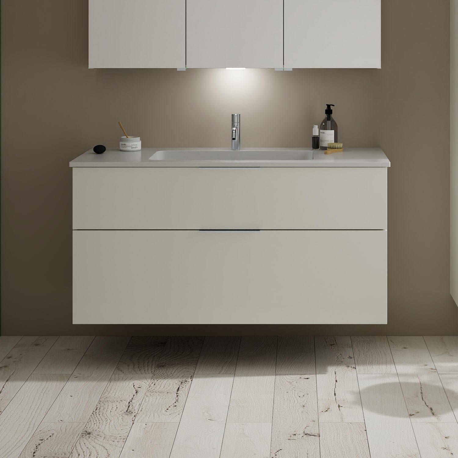 burgbad Eqio Waschtischkombination mit Mineralguss-Waschtisch, 122 cm, mit Griff G0146