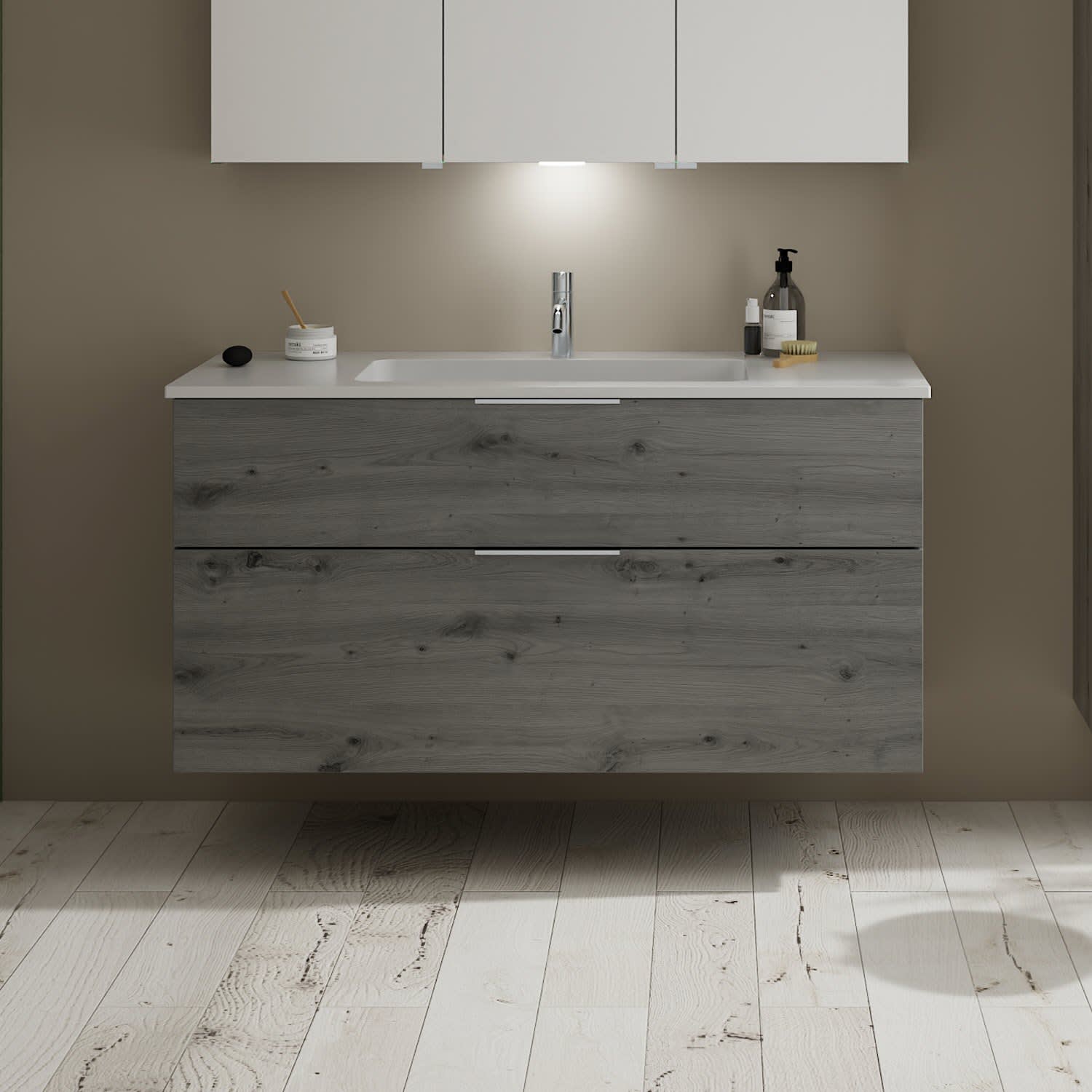 burgbad Eqio Waschtischkombination mit Mineralguss-Waschtisch, 122 cm, mit Griff G0146