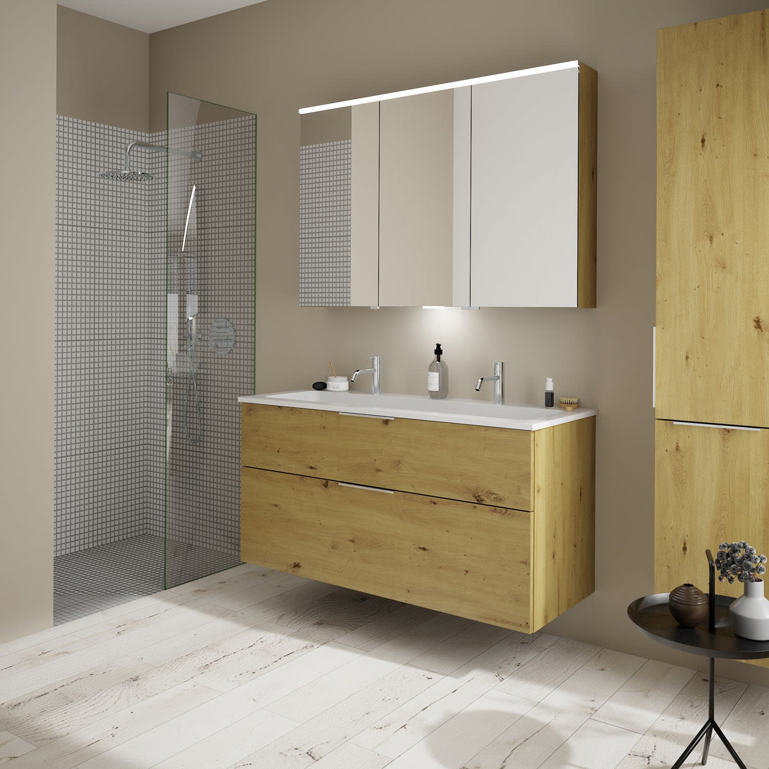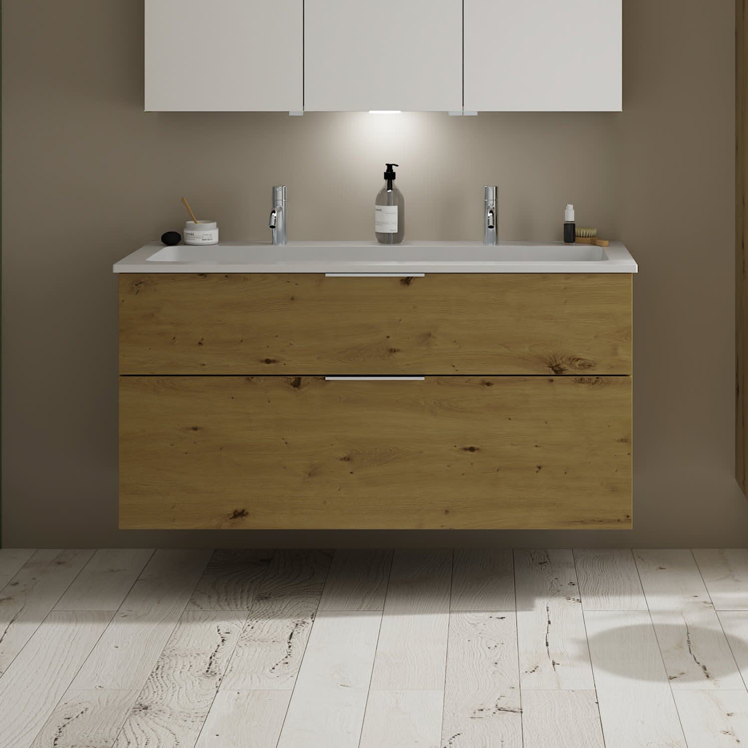 burgbad Eqio Waschtischkombination mit Mineralguss-Waschtisch, 122 cm, mit Griff G0146