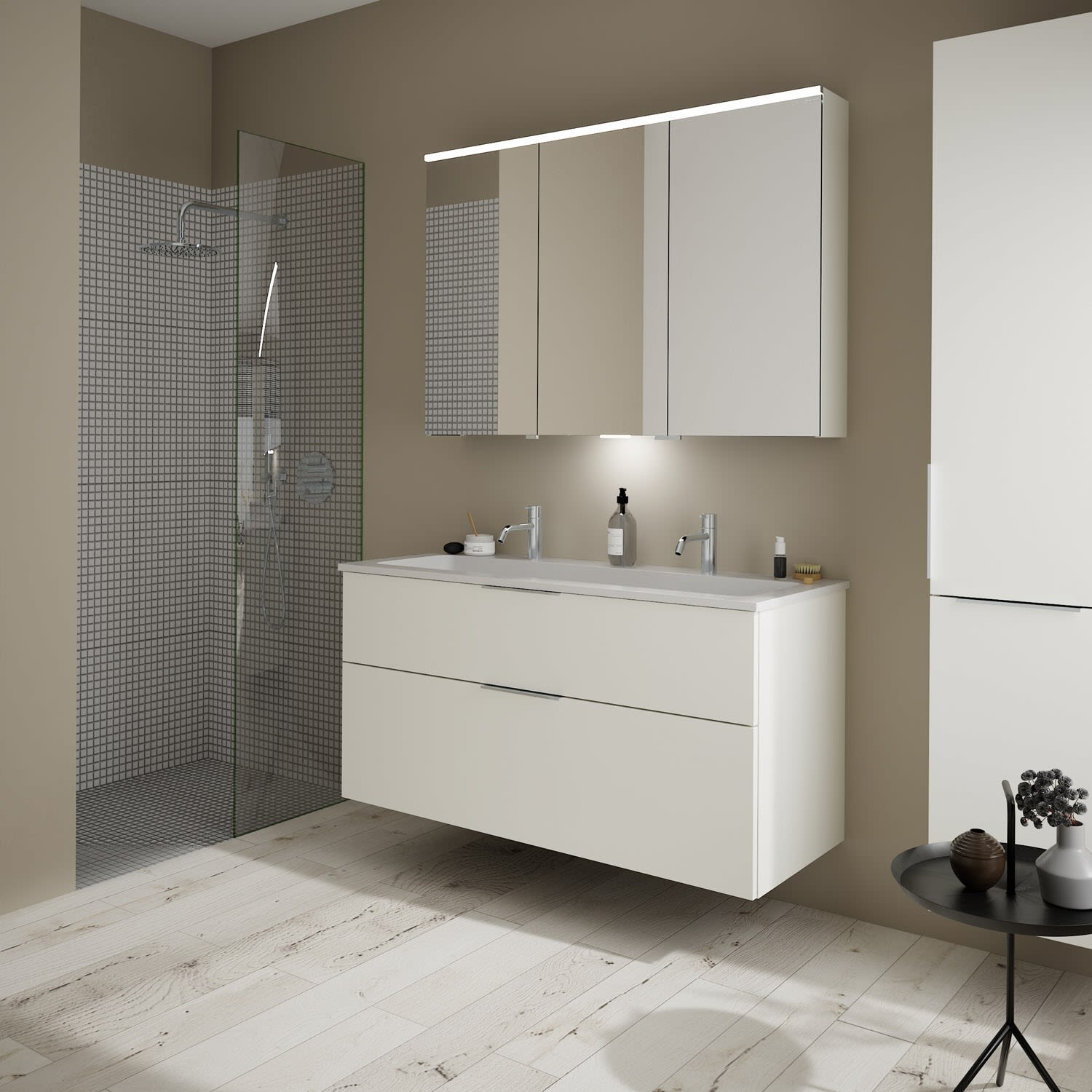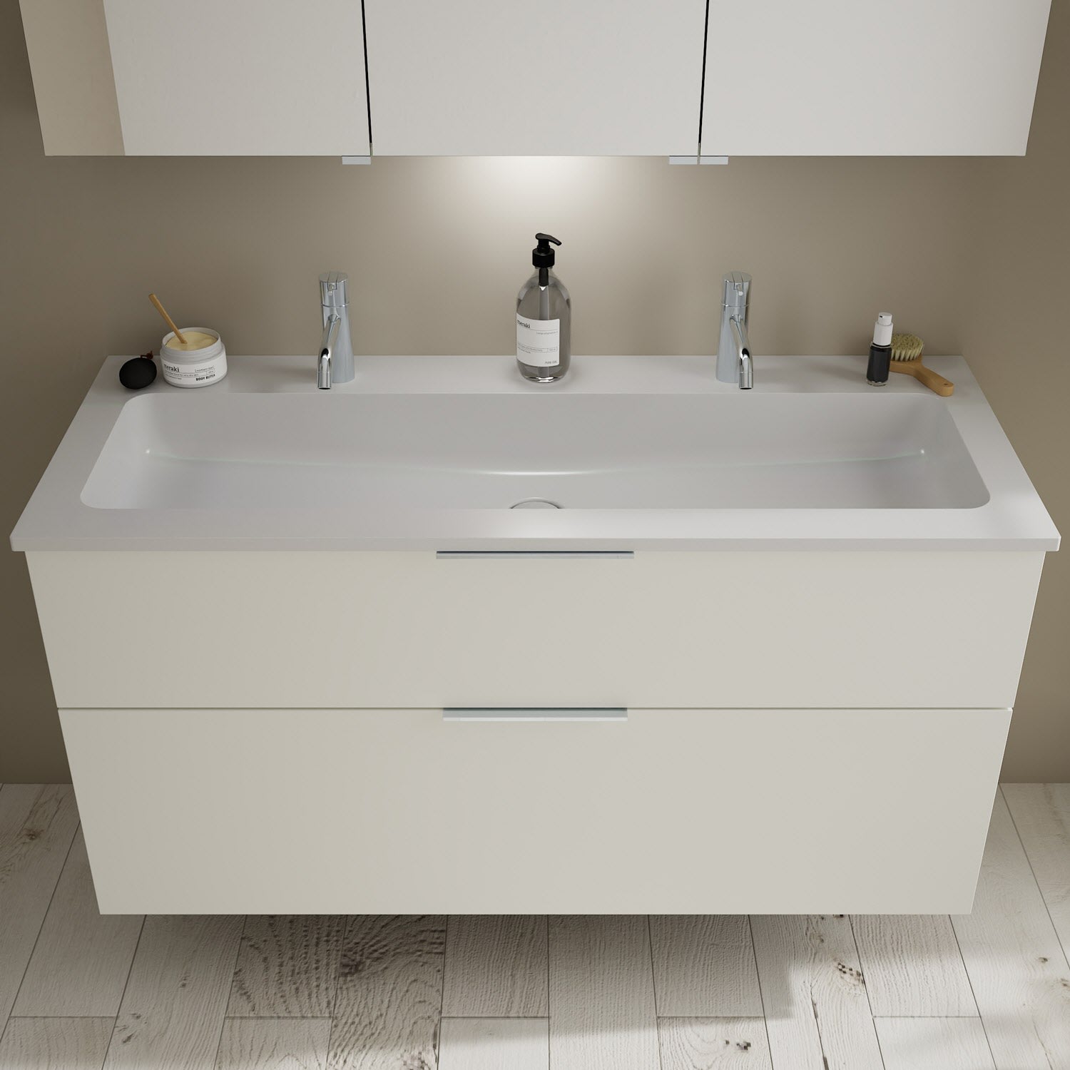 burgbad Eqio Waschtischkombination mit Mineralguss-Waschtisch, 122 cm, mit Griff G0146