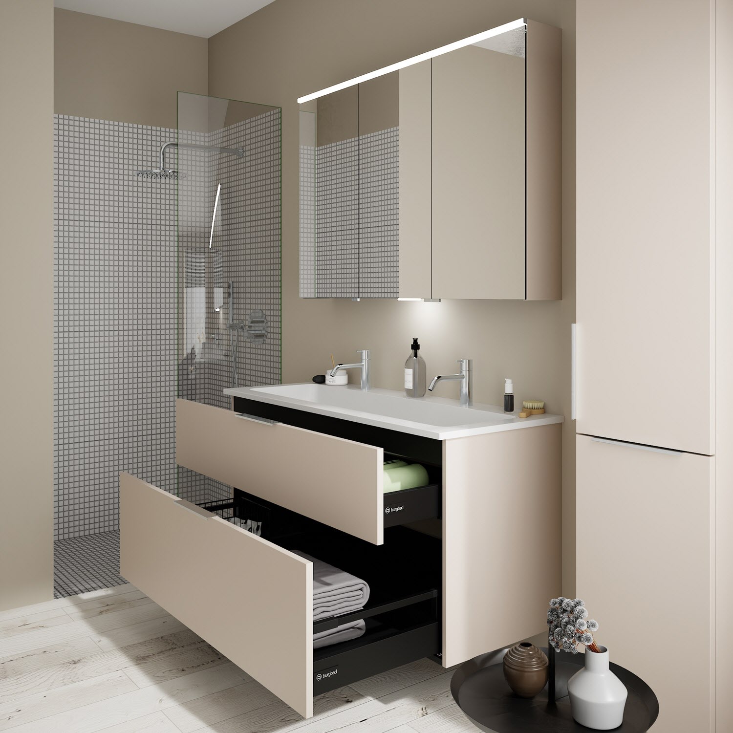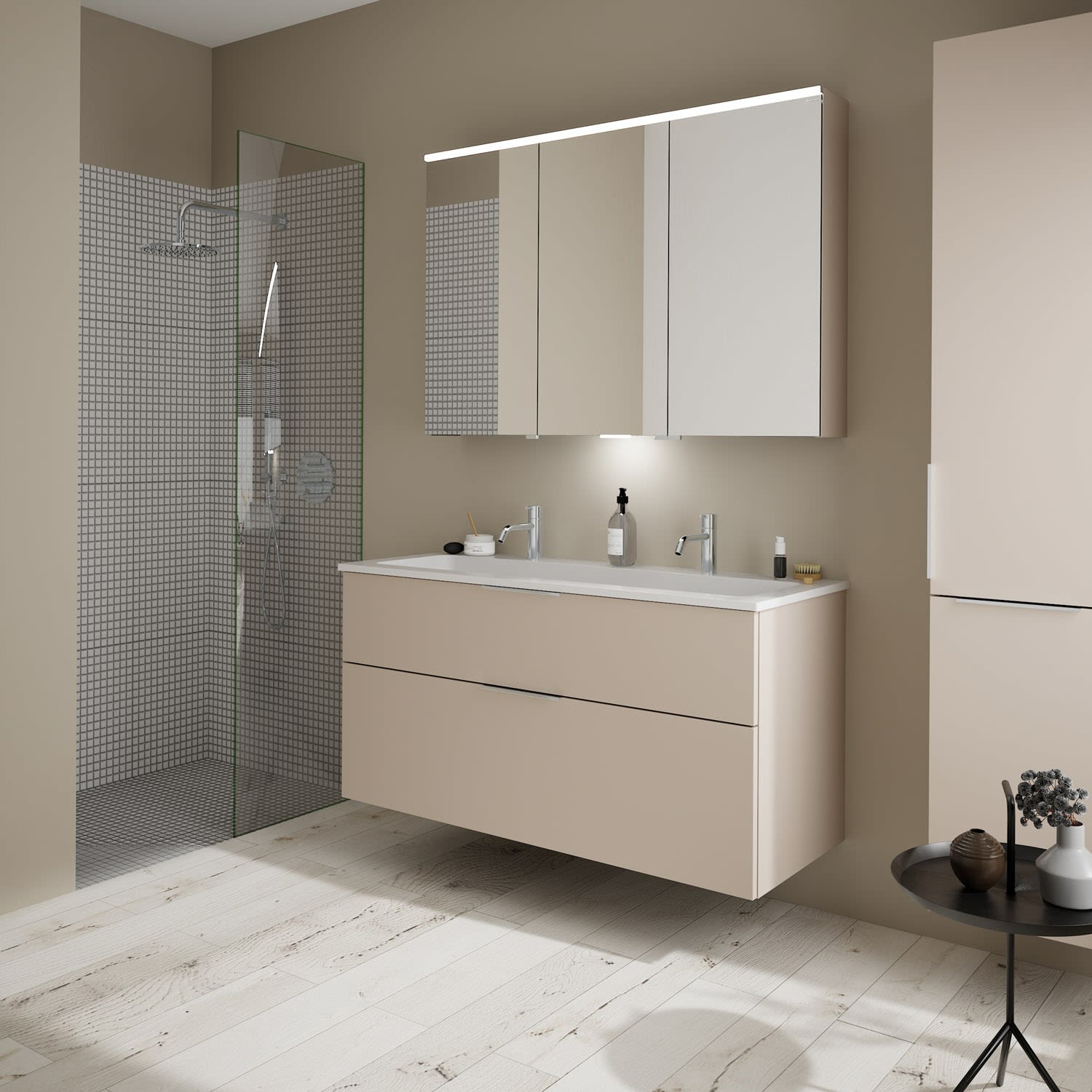 burgbad Eqio Waschtischkombination mit Mineralguss-Waschtisch, 122 cm, mit Griff G0146
