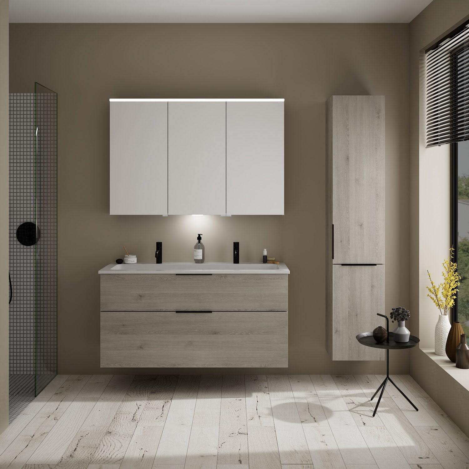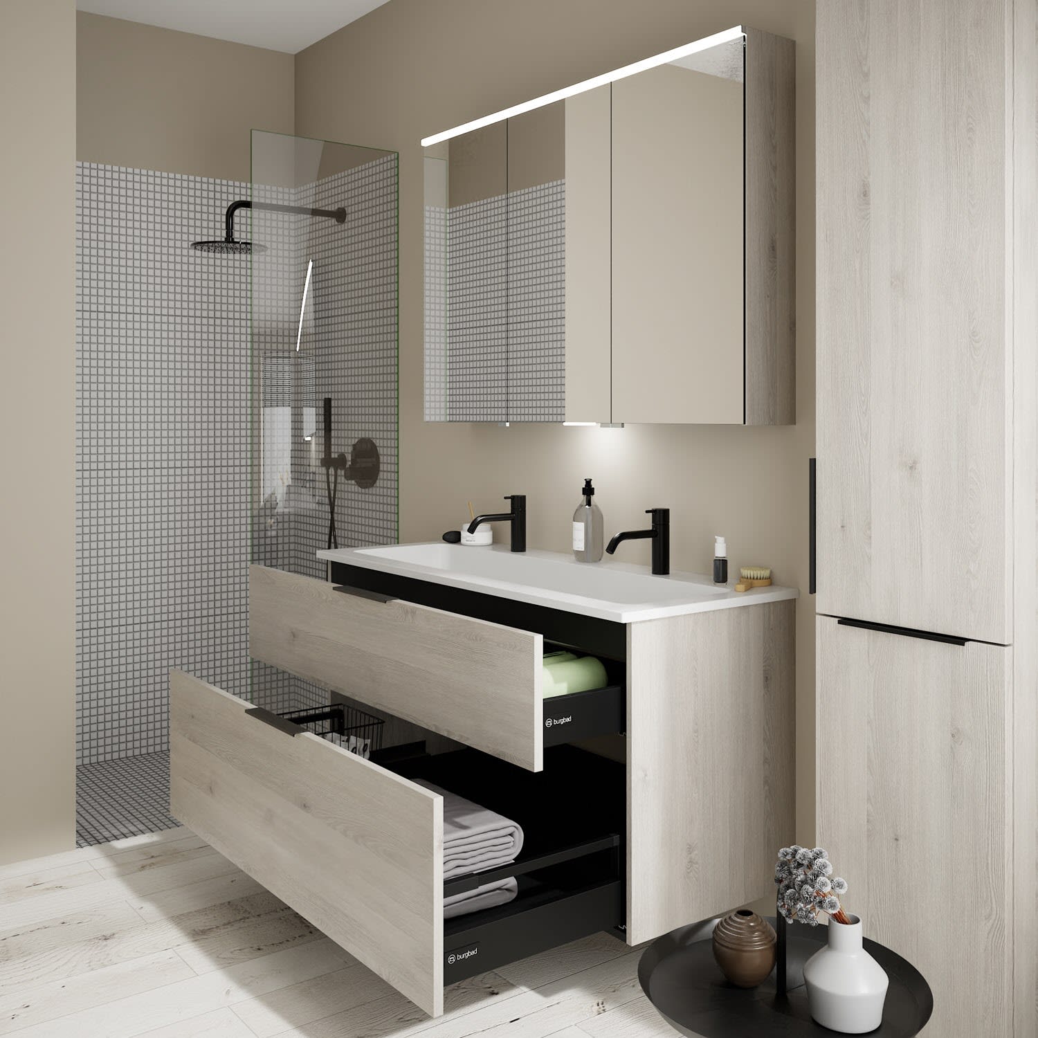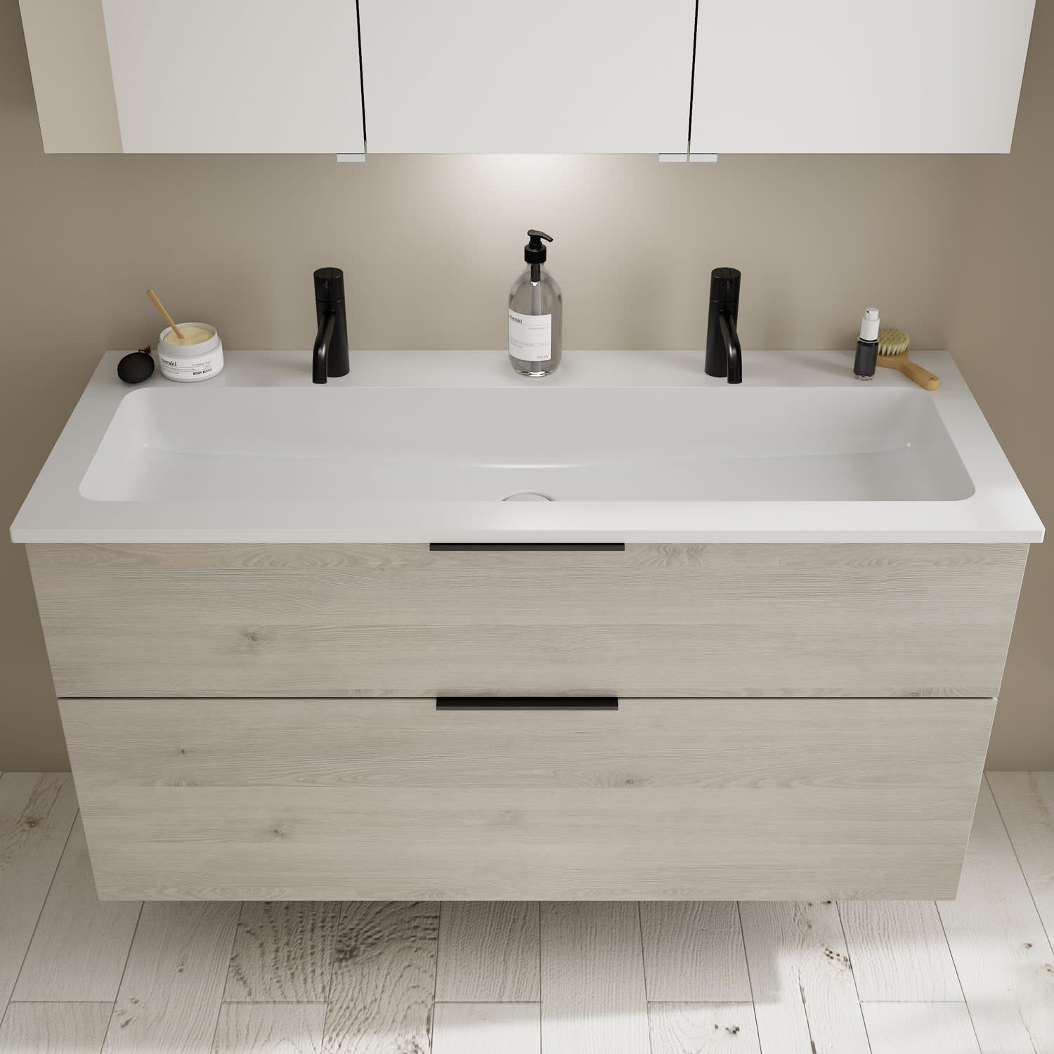 burgbad Eqio Waschtischkombination mit Mineralguss-Waschtisch, 122 cm, mit Griff G0200