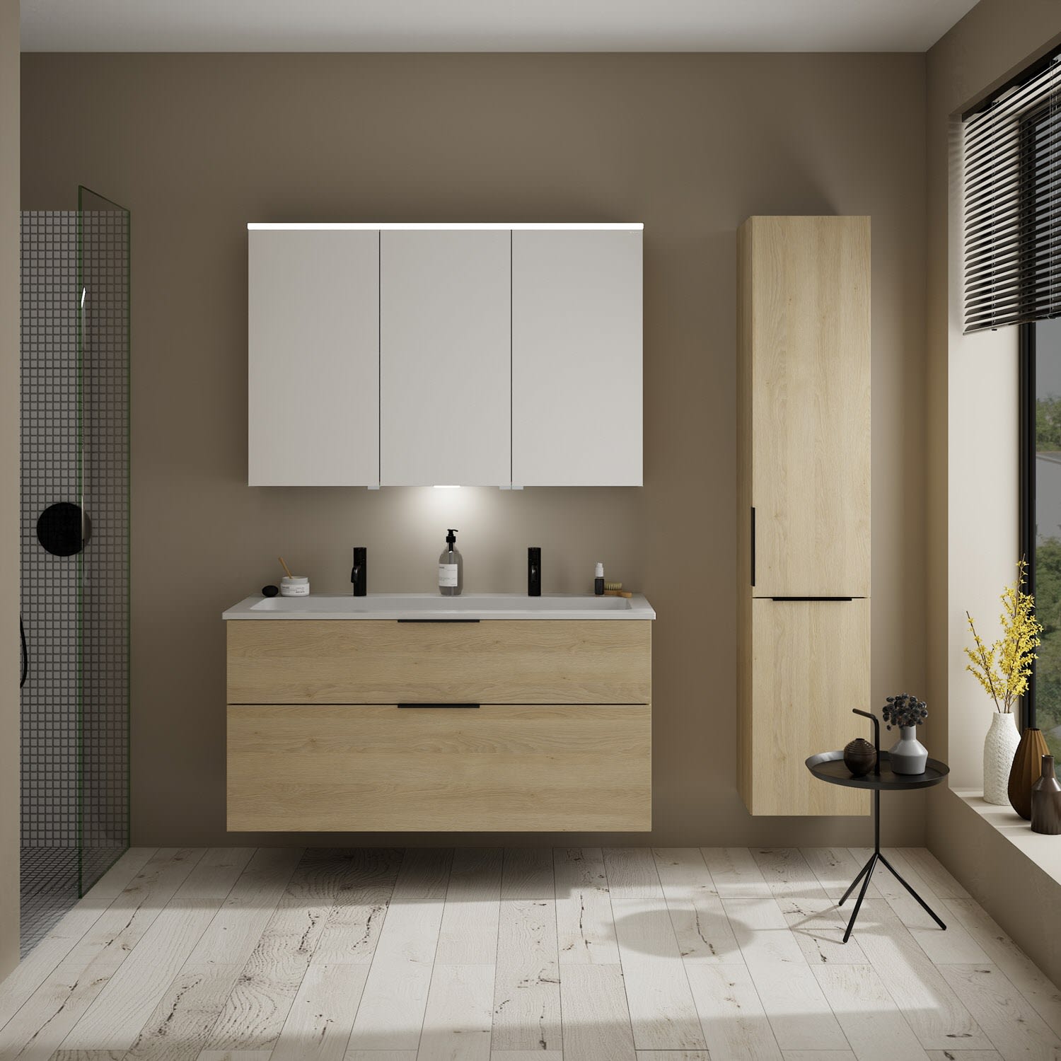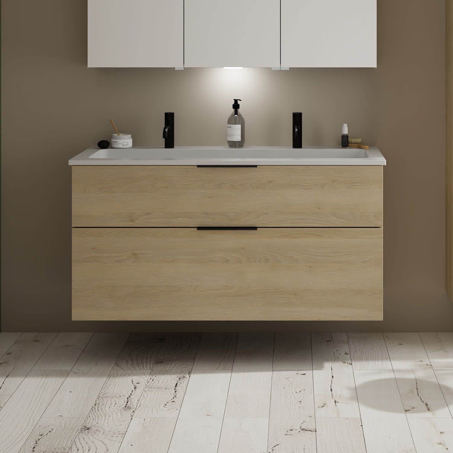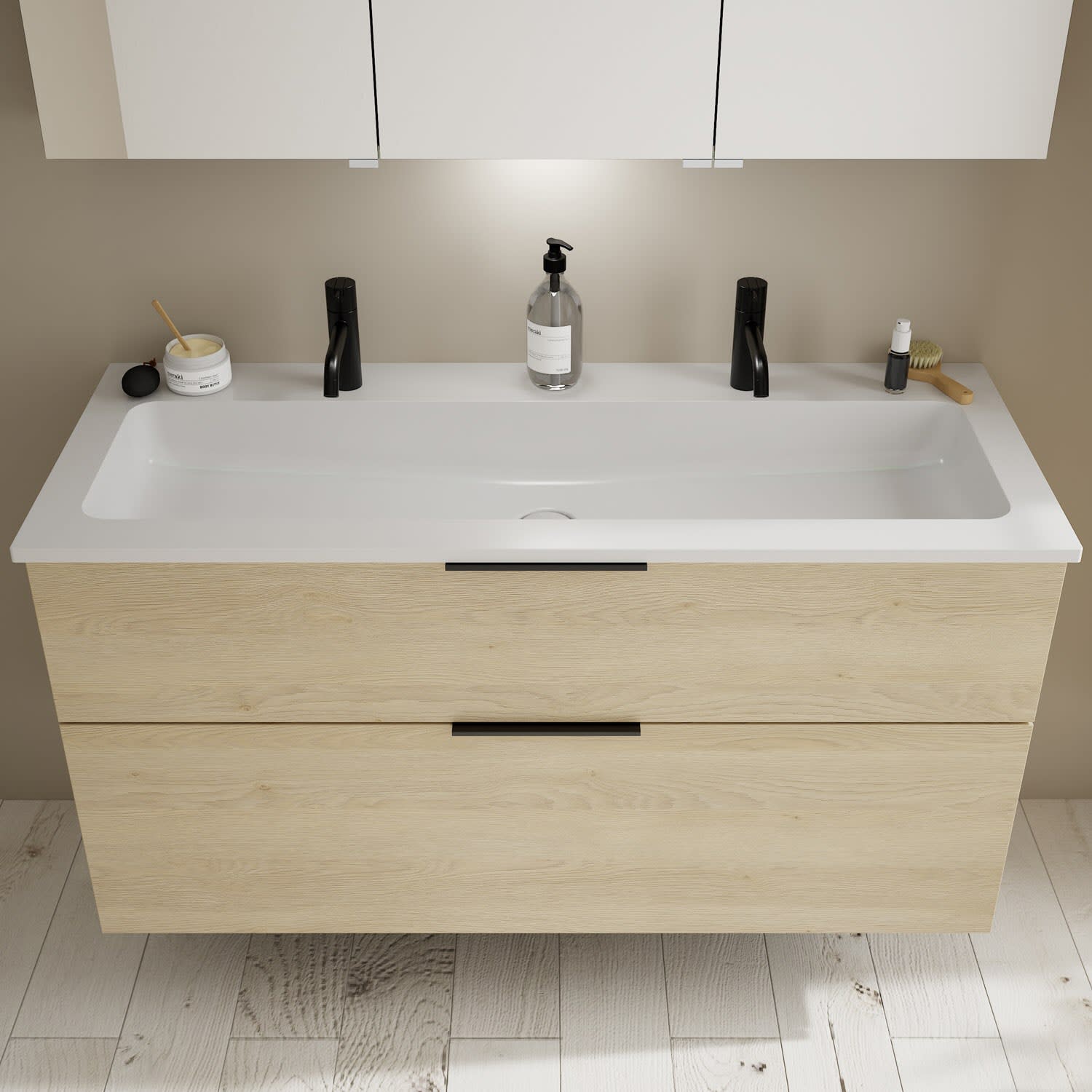burgbad Eqio Waschtischkombination mit Mineralguss-Waschtisch, 122 cm, mit Griff G0200