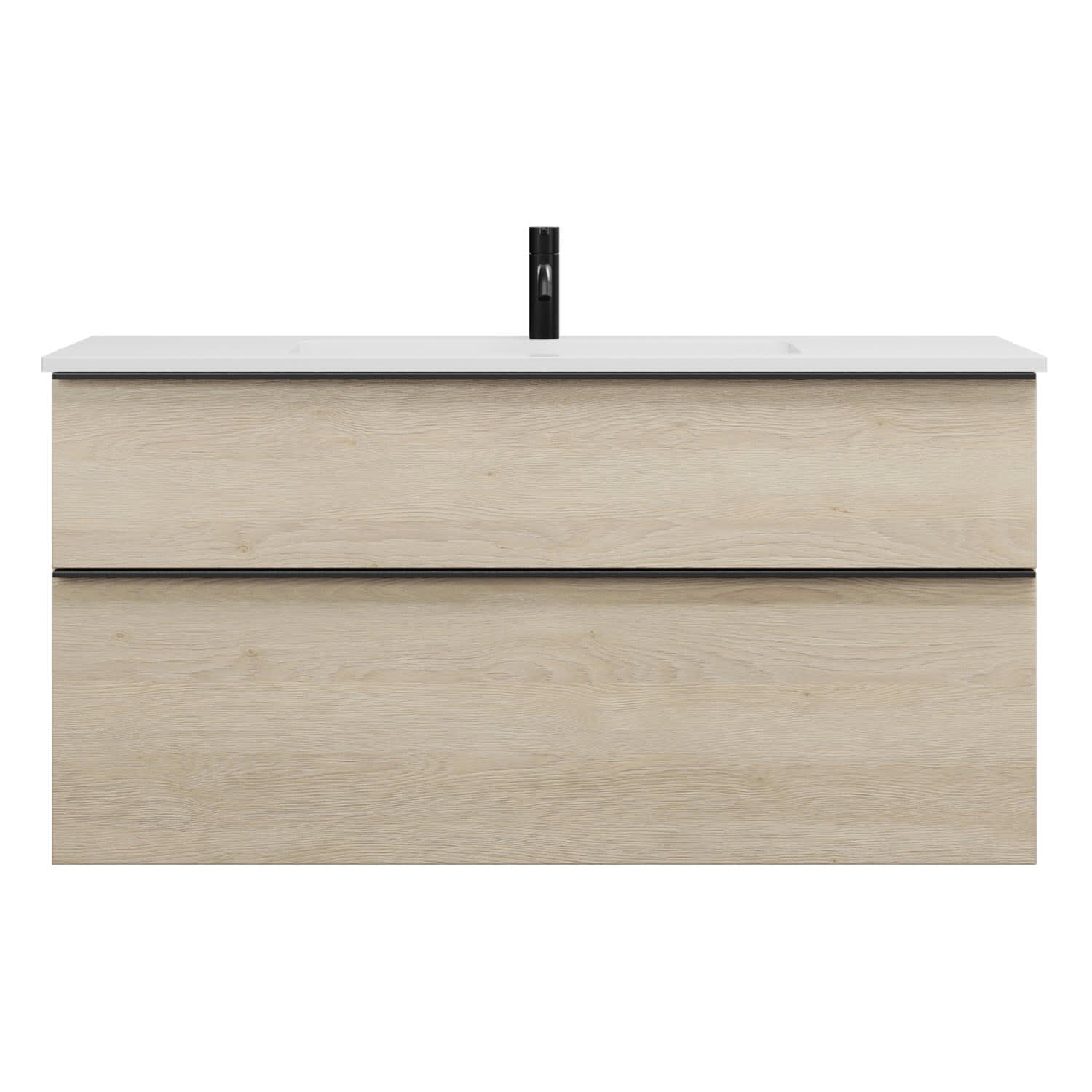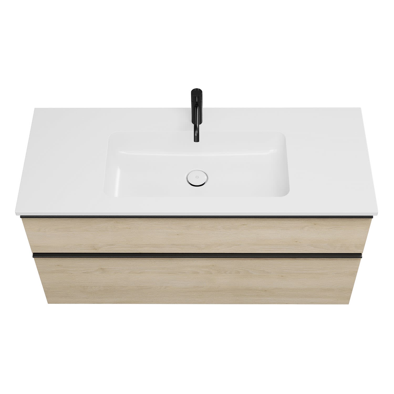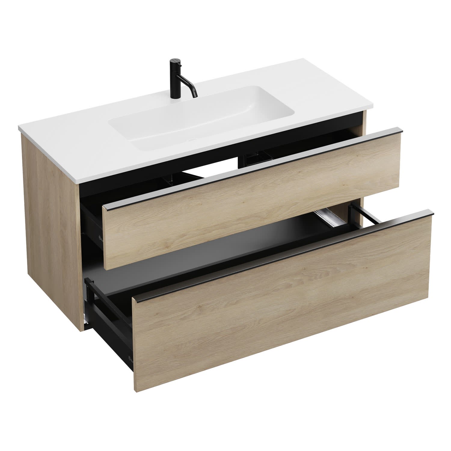 - 1 Schublade oben, 35 cm tief, mit Siphonausschnitt und Inneneinteilung