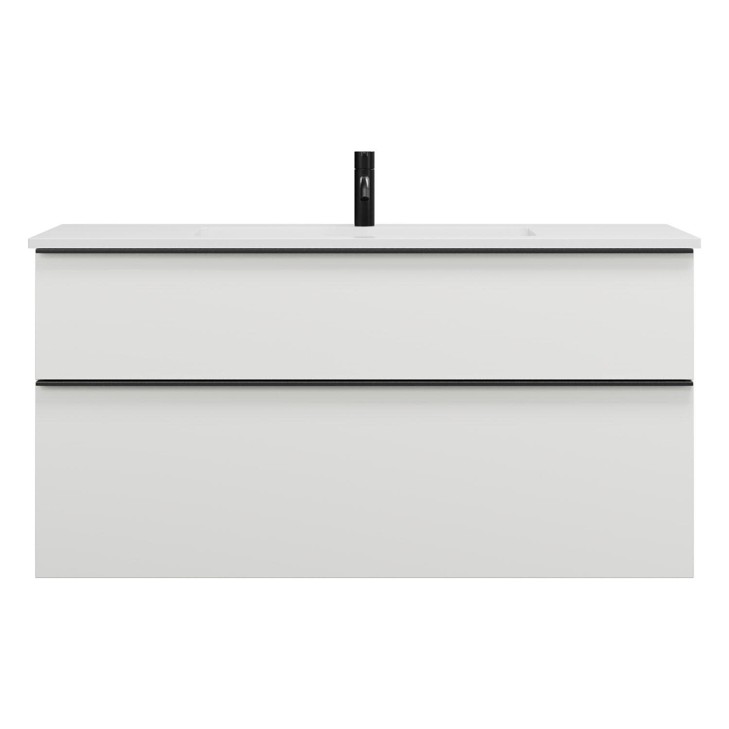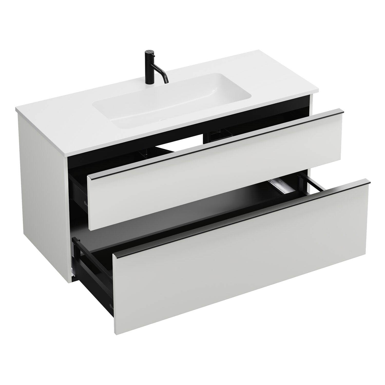 - 1 Schublade oben, 35 cm tief, mit Siphonausschnitt und Inneneinteilung