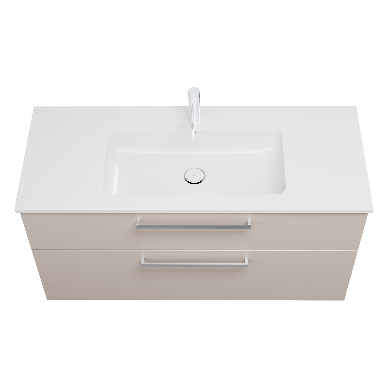 - 1 Schublade oben, 35 cm tief, mit Siphonausschnitt und Inneneinteilung