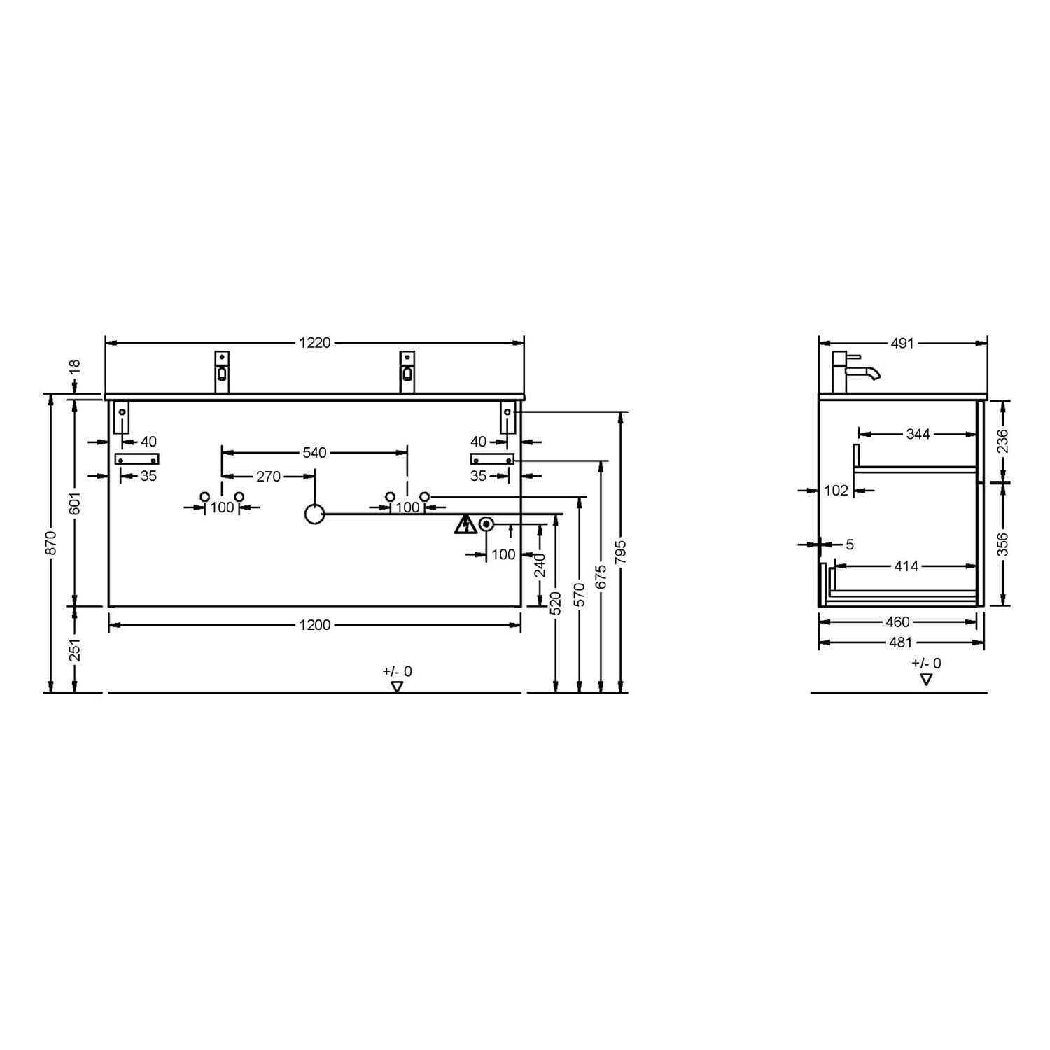 Steinkamp Life 2.0 Waschtischunterschrank mit Pelipal Doppelwaschtisch 121 cm