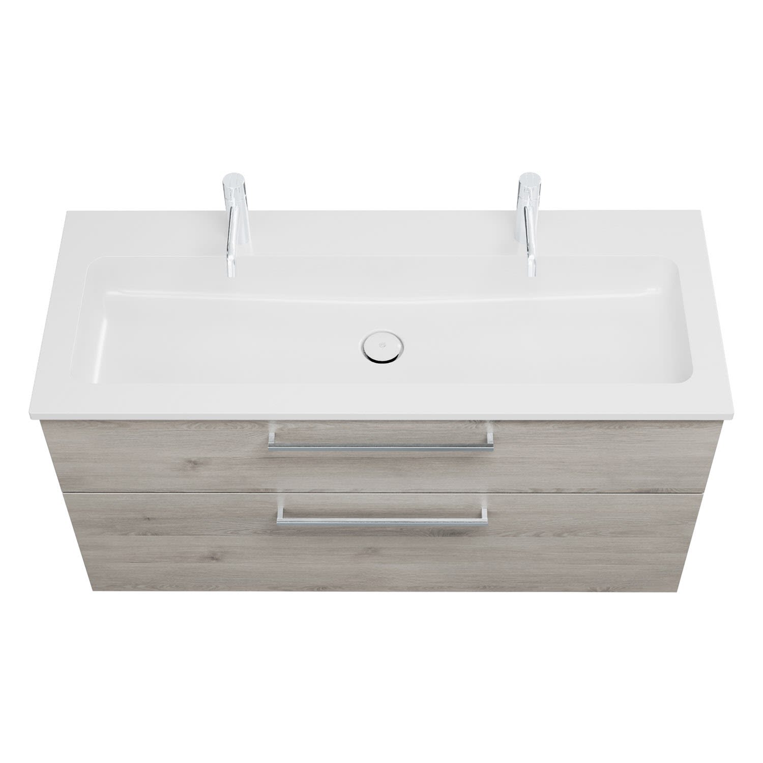 burgbad Eqio Waschtischkombination mit Mineralguss-Waschtisch, 122 cm, mit Stangengriff P95