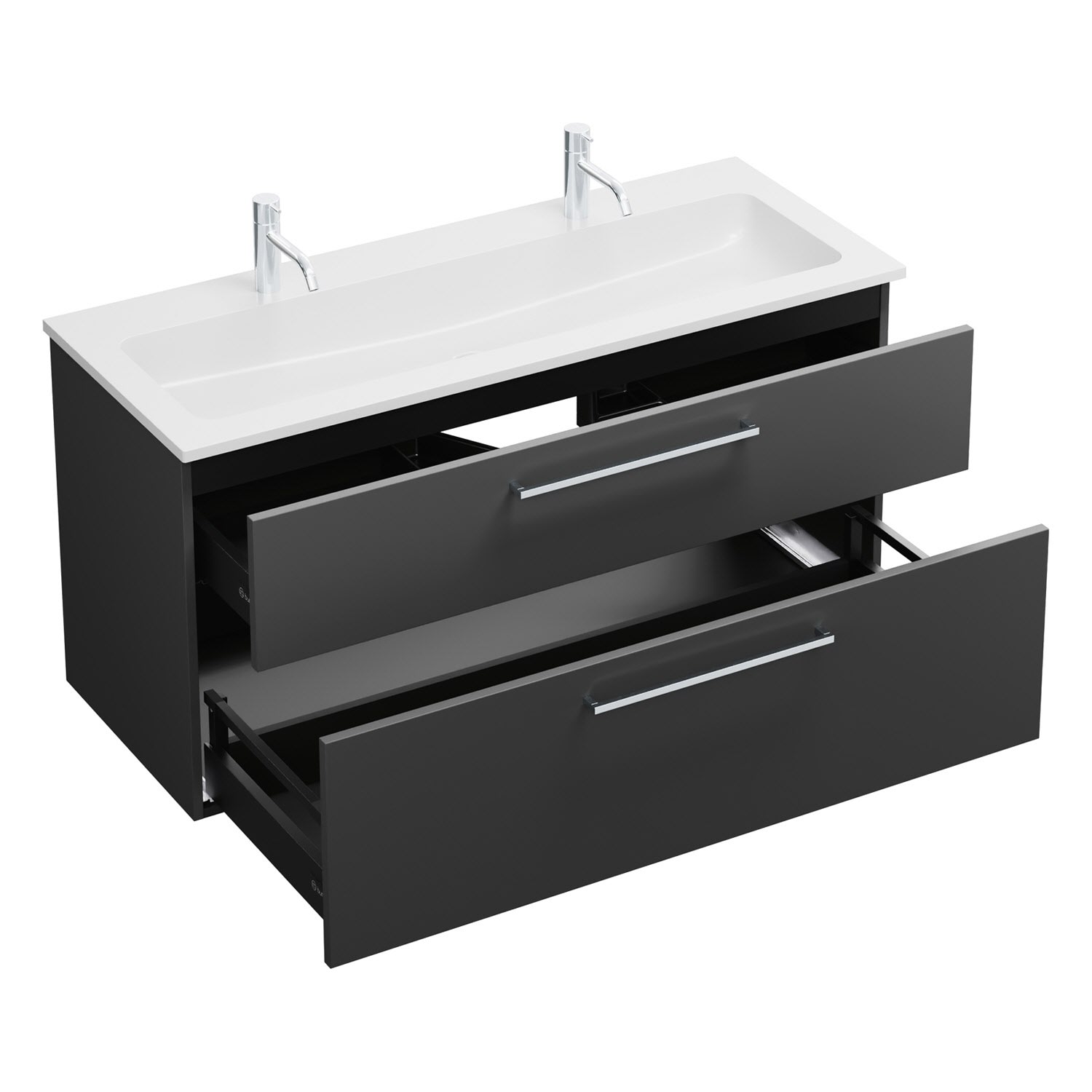 burgbad Eqio Waschtischkombination mit Mineralguss-Waschtisch, 122 cm, mit Stangengriff P95