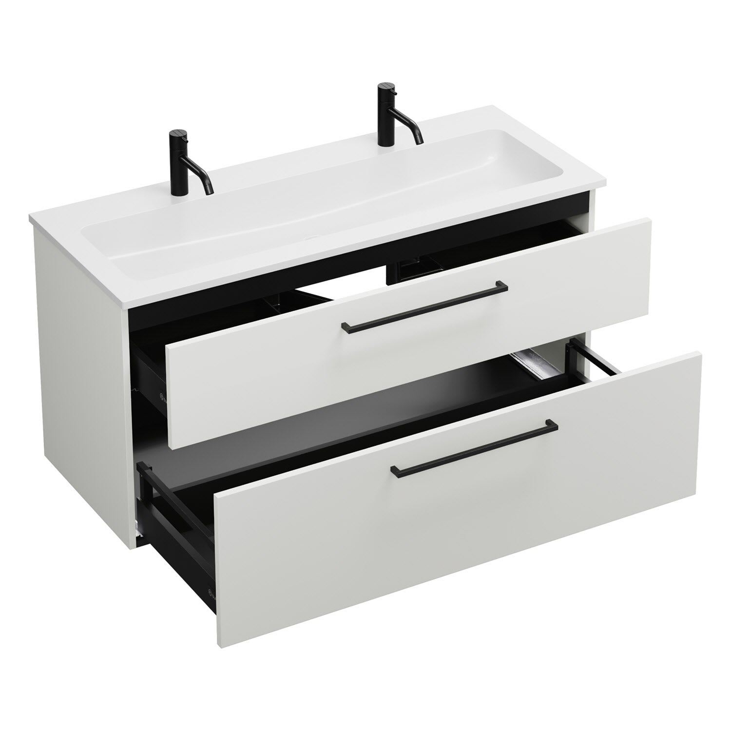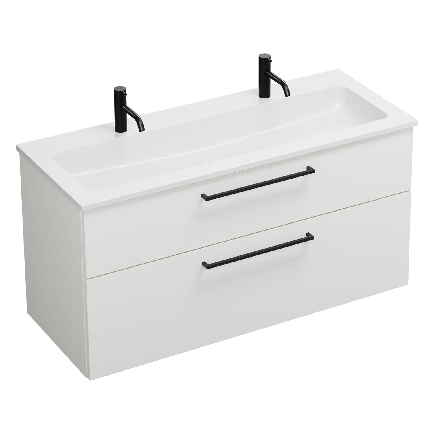 burgbad Eqio Waschtischkombination mit Mineralguss-Waschtisch, 122 cm, mit Stangengriff G0234