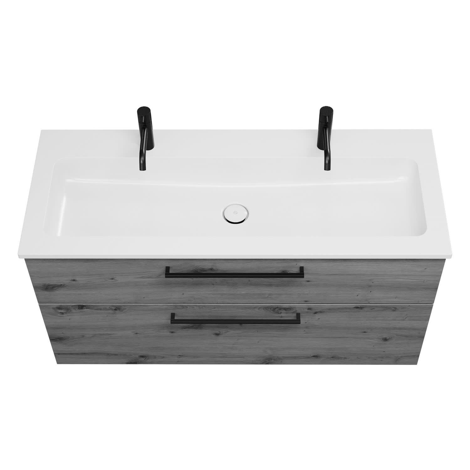 burgbad Eqio Waschtischkombination mit Mineralguss-Waschtisch, 122 cm, mit Stangengriff G0234