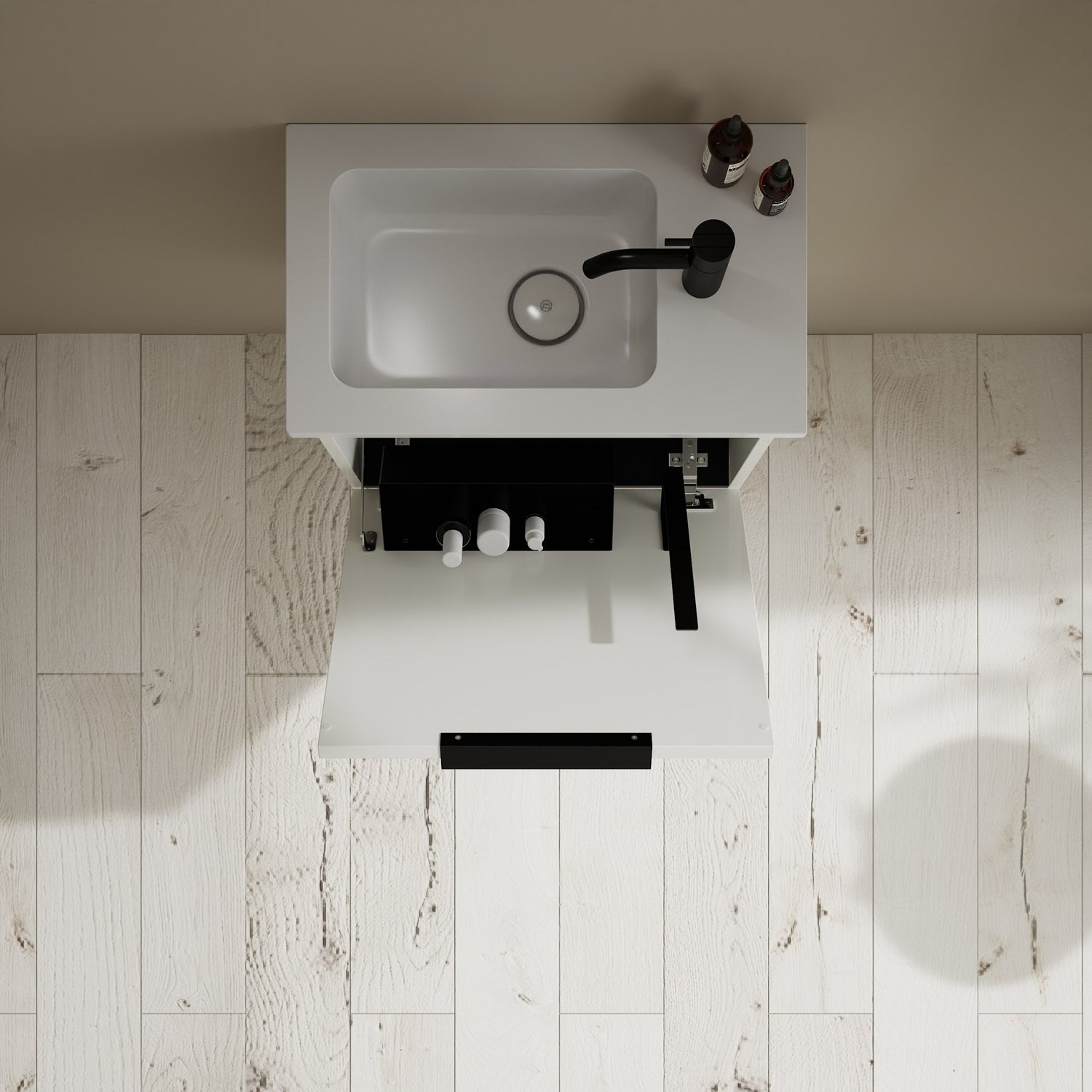 Waschtischunterschrank, Waschtisch, cleanFlow mit Ablaufabdeckung für Permanentablauf, Befestigungsmaterial außer Stockschrauben