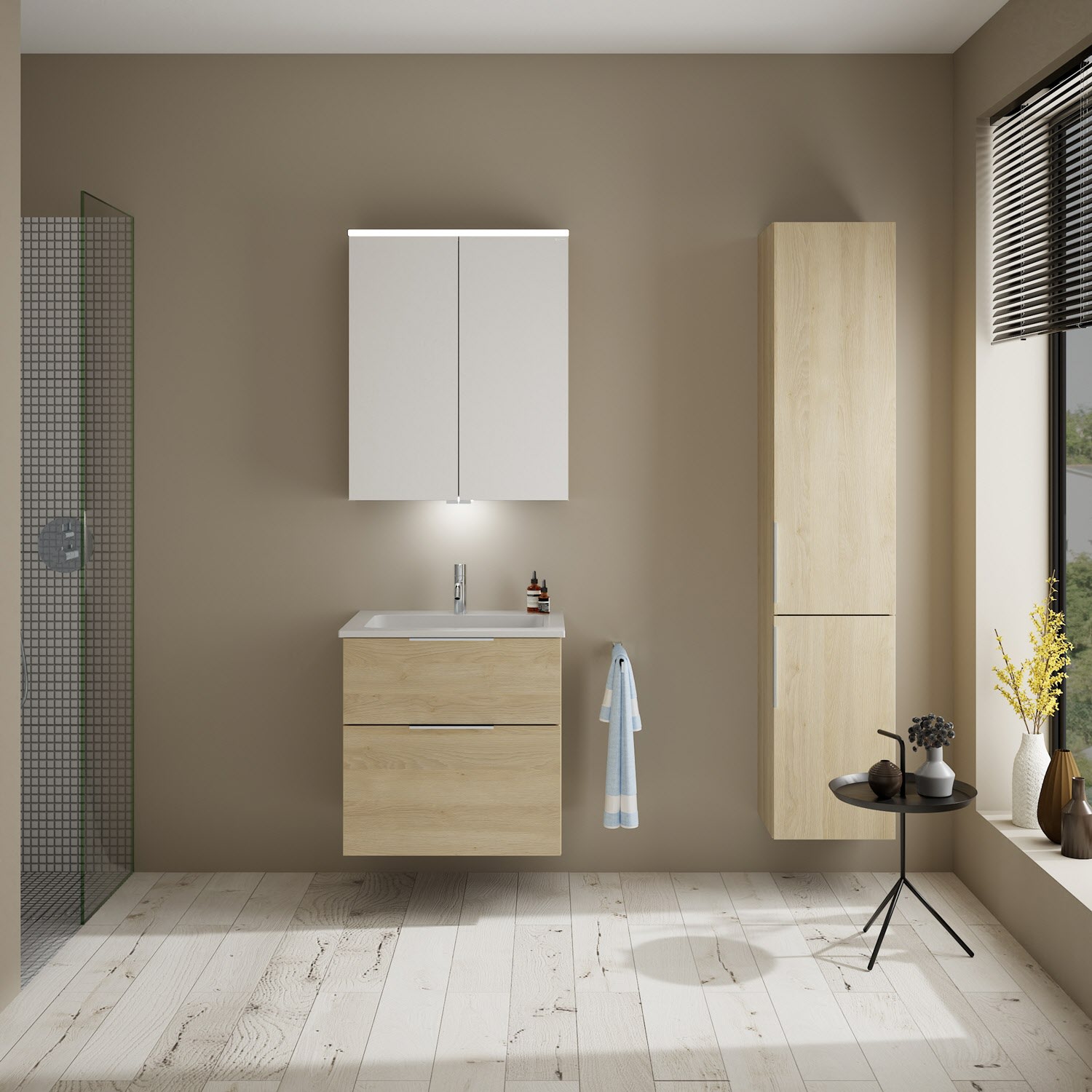 burgbad Eqio Waschtischkombination mit Mineralguss-Waschtisch, 62 cm, mit Griff G0146