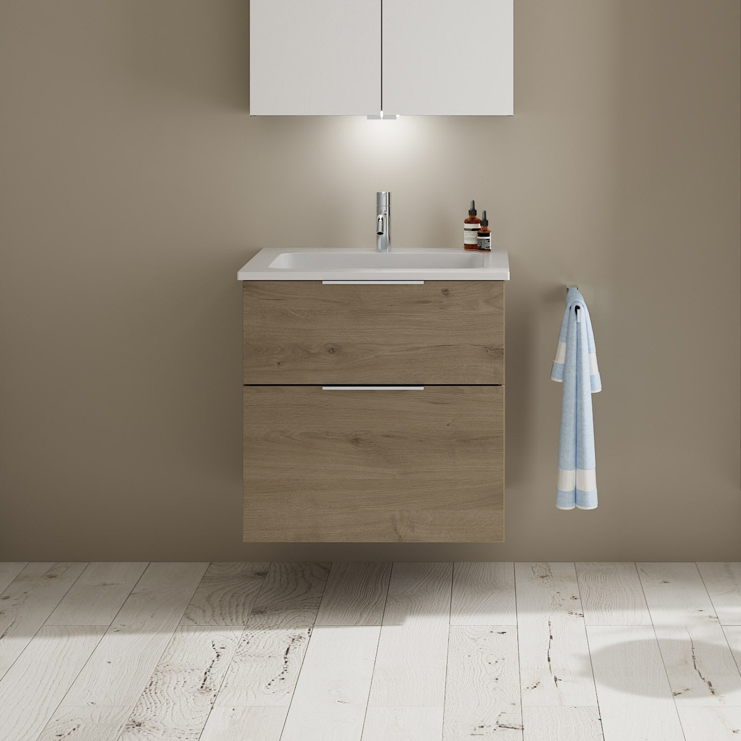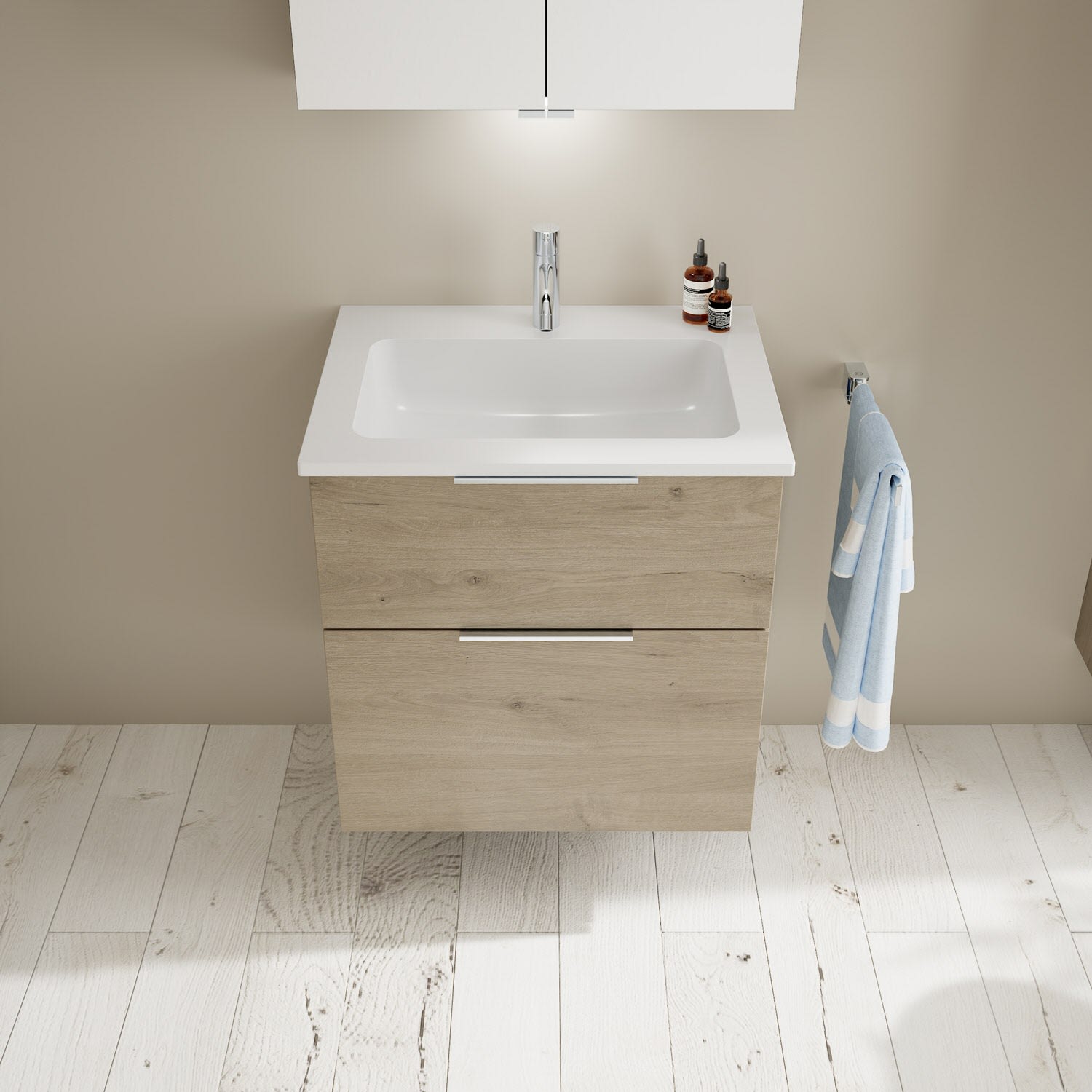 burgbad Eqio Waschtischkombination mit Mineralguss-Waschtisch, 62 cm, mit Griff G0146
