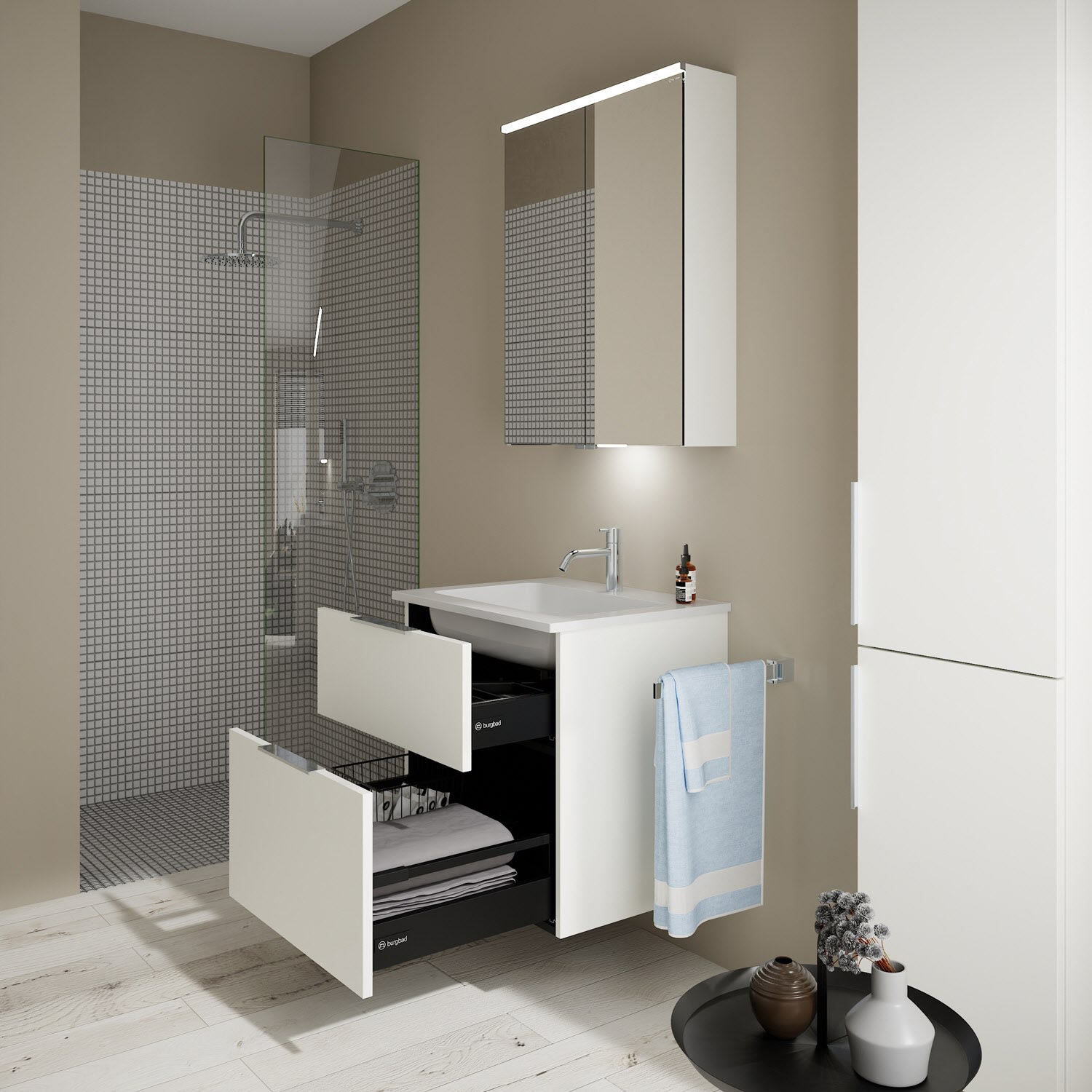 burgbad Eqio Waschtischkombination mit Mineralguss-Waschtisch, 62 cm, mit Griff G0146
