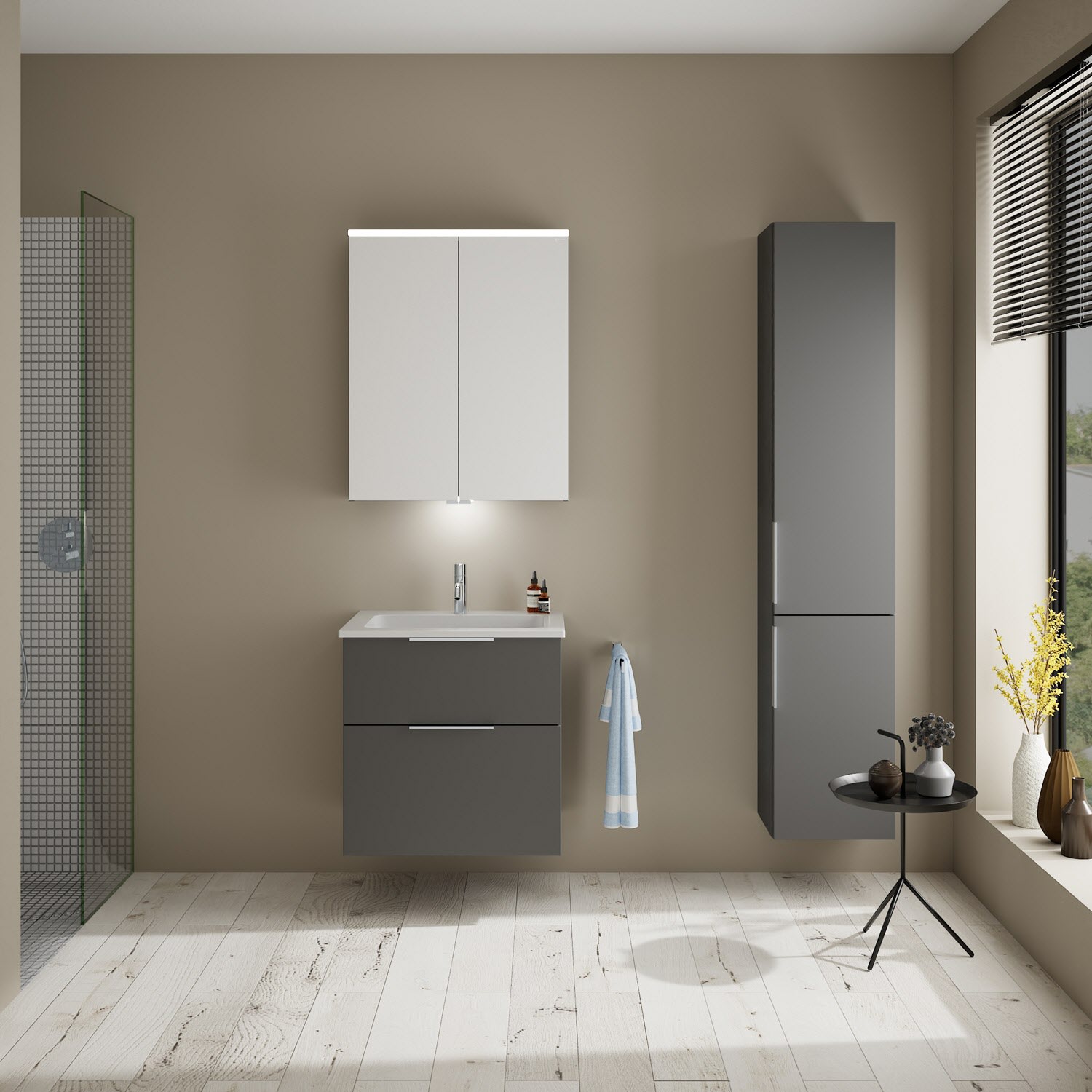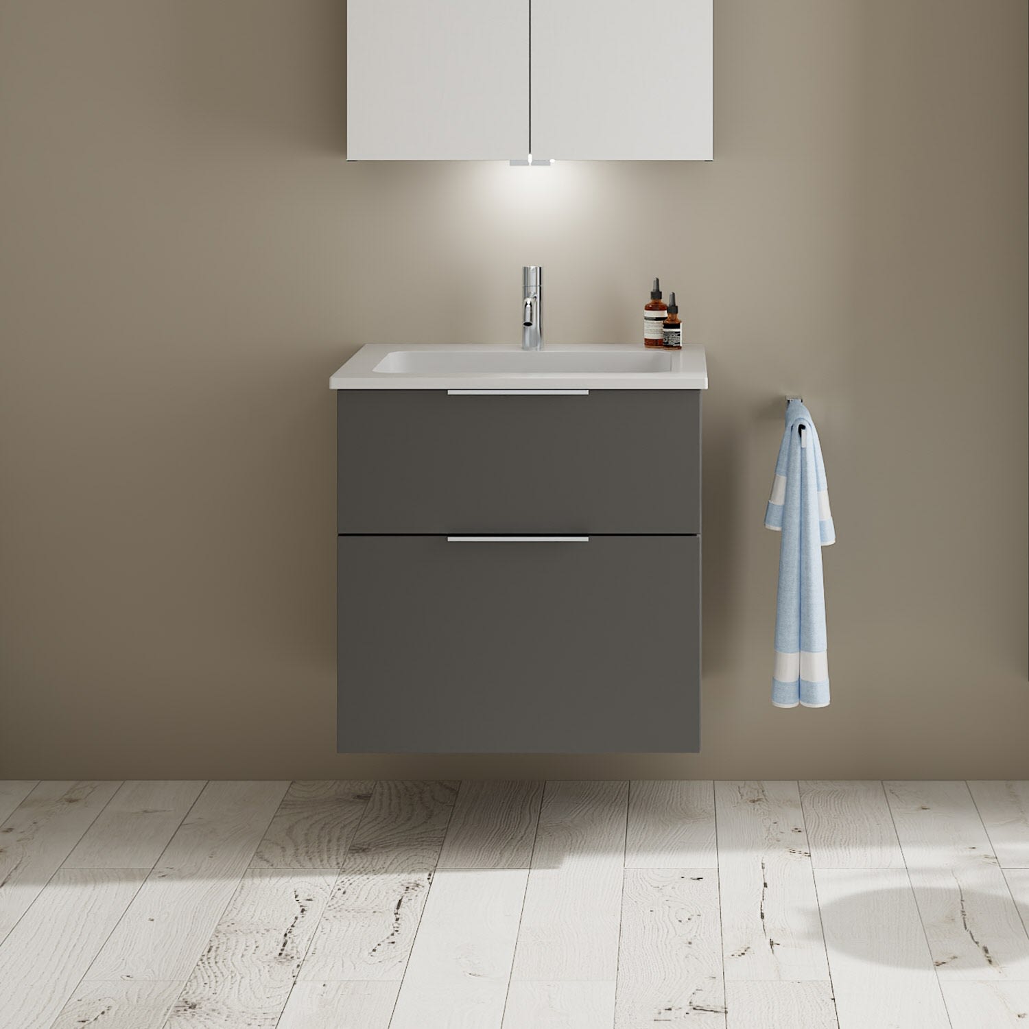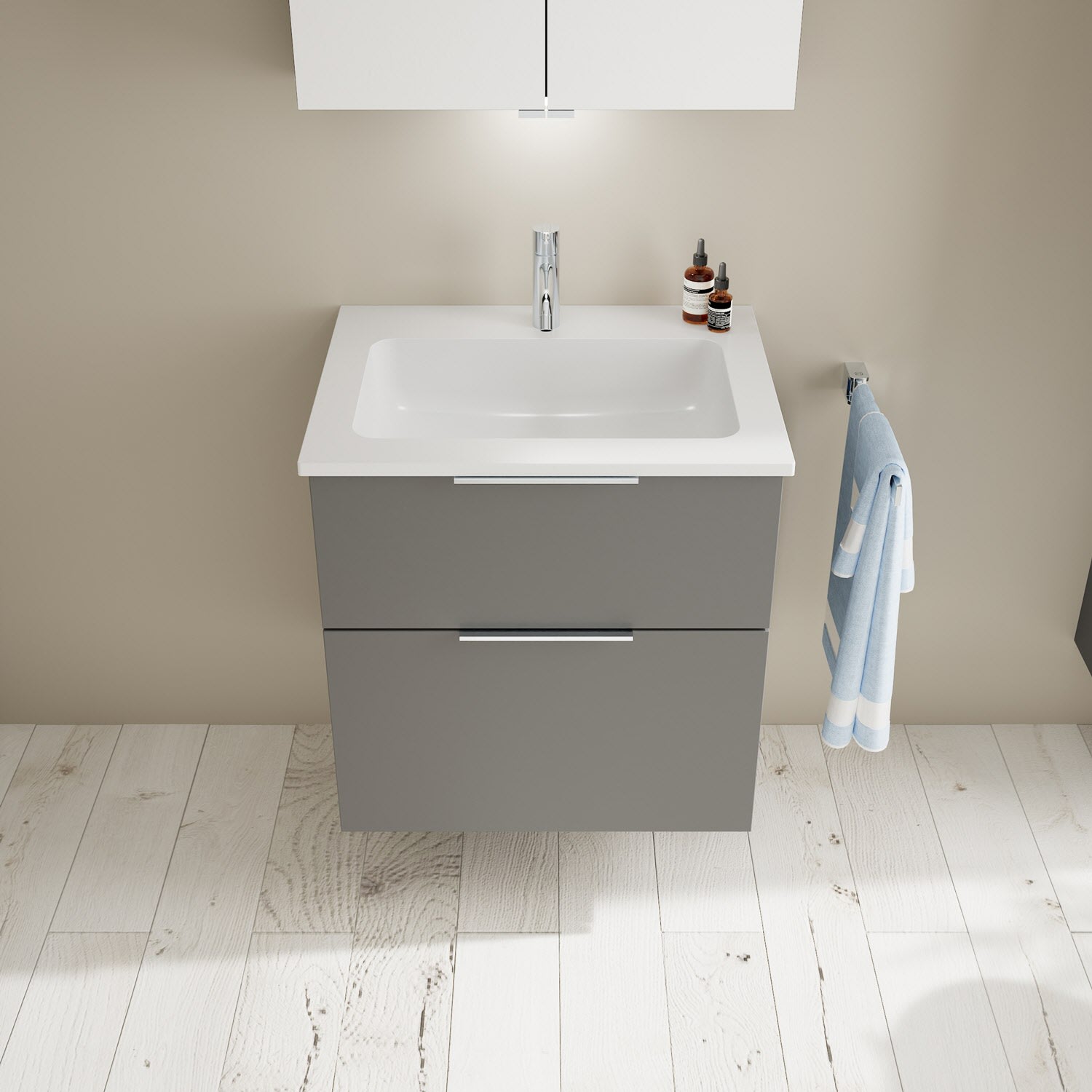 burgbad Eqio Waschtischkombination mit Mineralguss-Waschtisch, 62 cm, mit Griff G0146