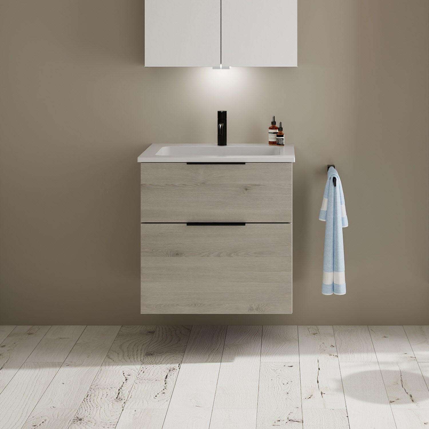 burgbad Eqio Waschtischkombination mit Mineralguss-Waschtisch, 62 cm, mit Griff G0200