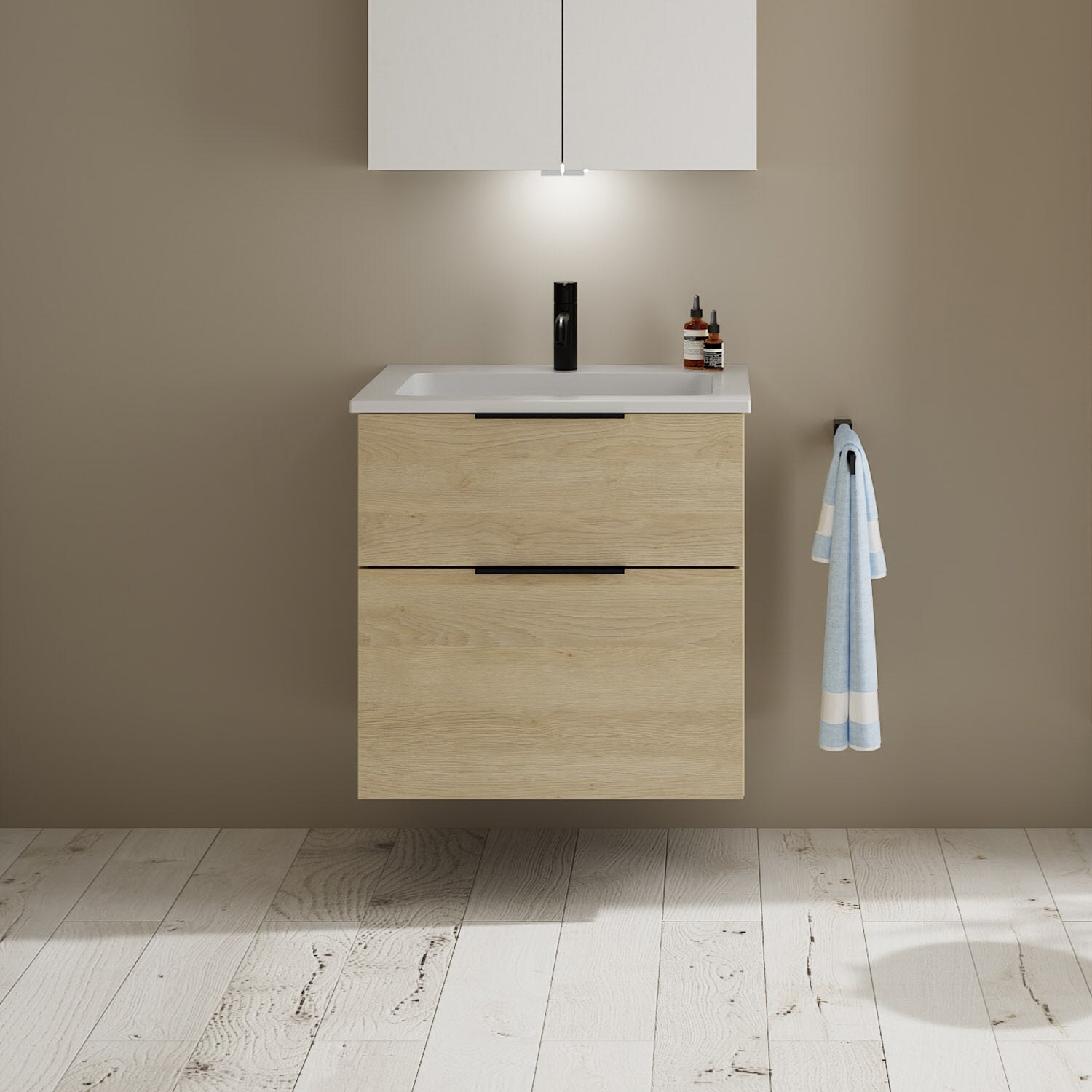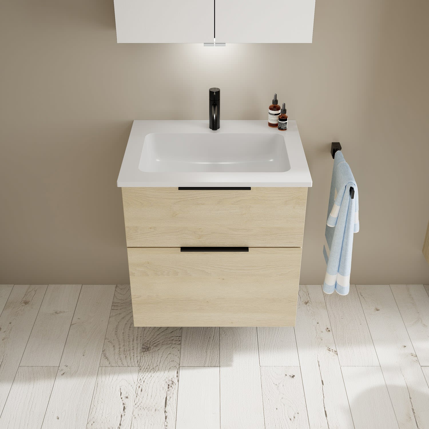 burgbad Eqio Waschtischkombination mit Mineralguss-Waschtisch, 62 cm, mit Griff G0200