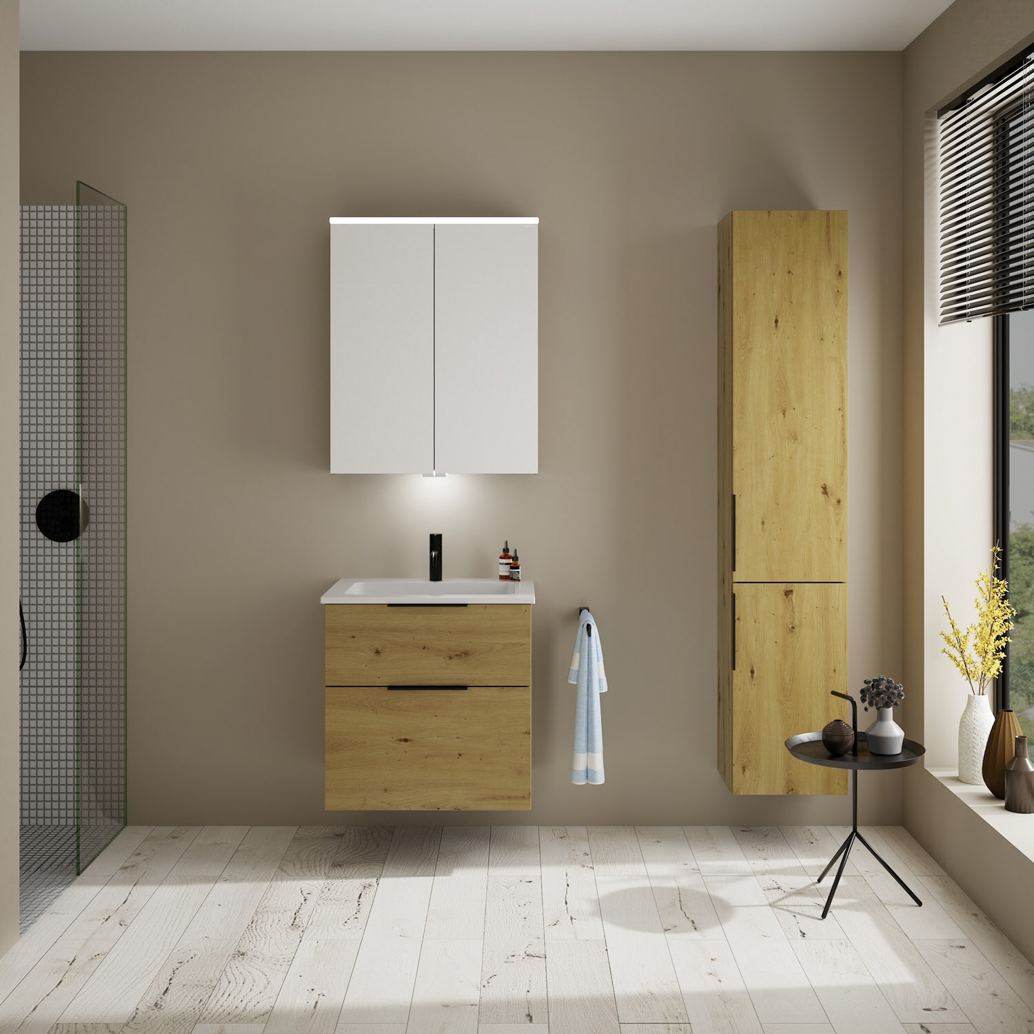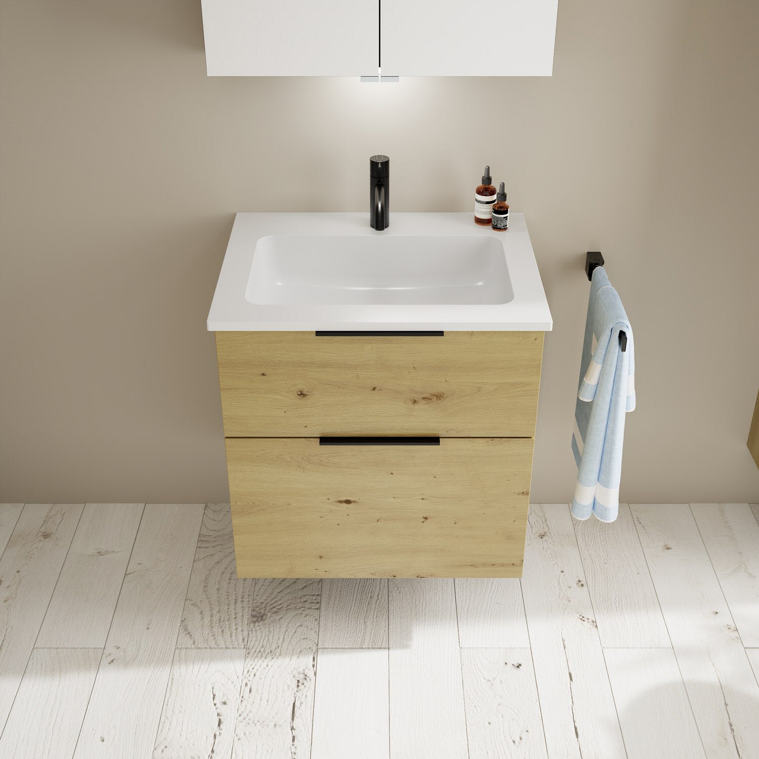 burgbad Eqio Waschtischkombination mit Mineralguss-Waschtisch, 62 cm, mit Griff G0200