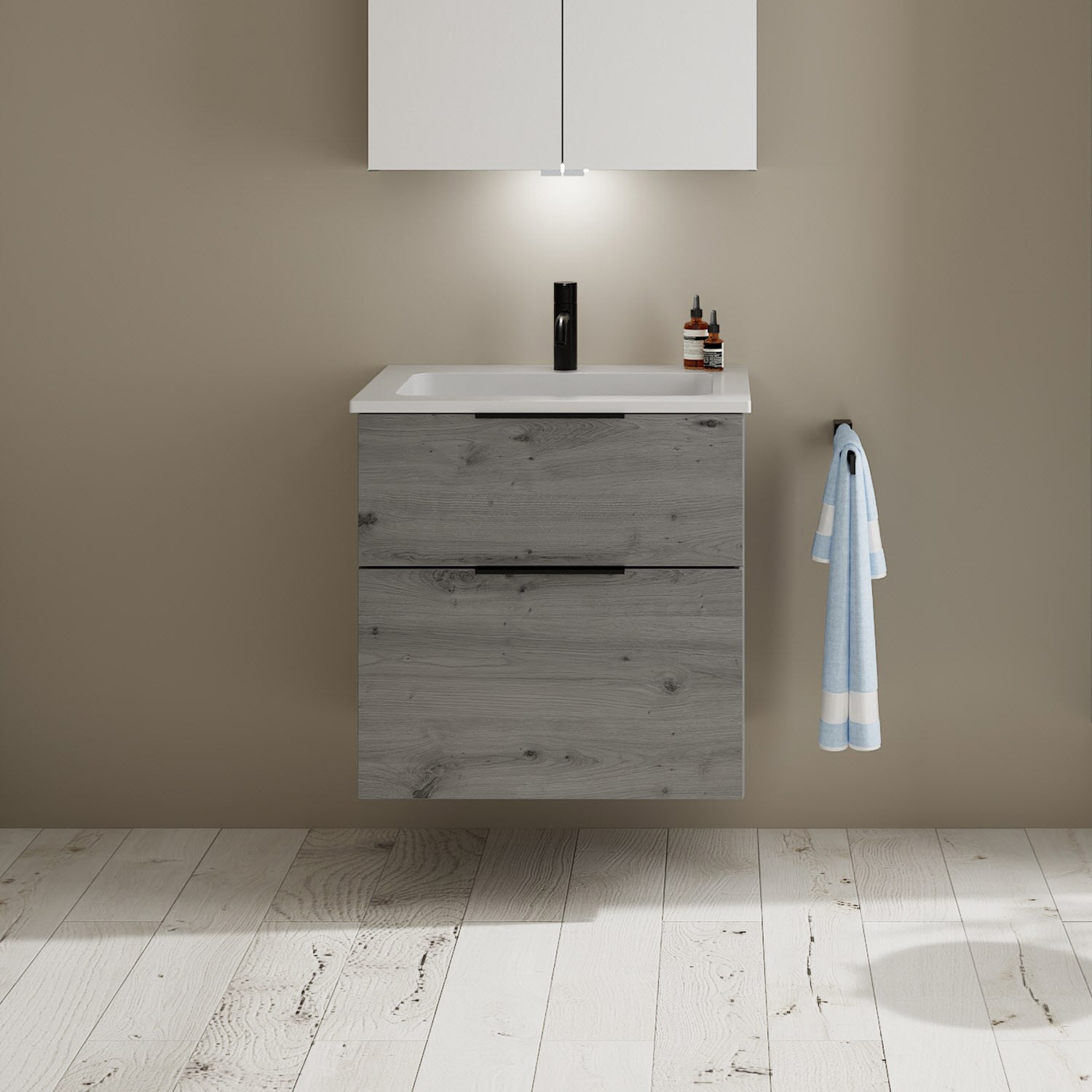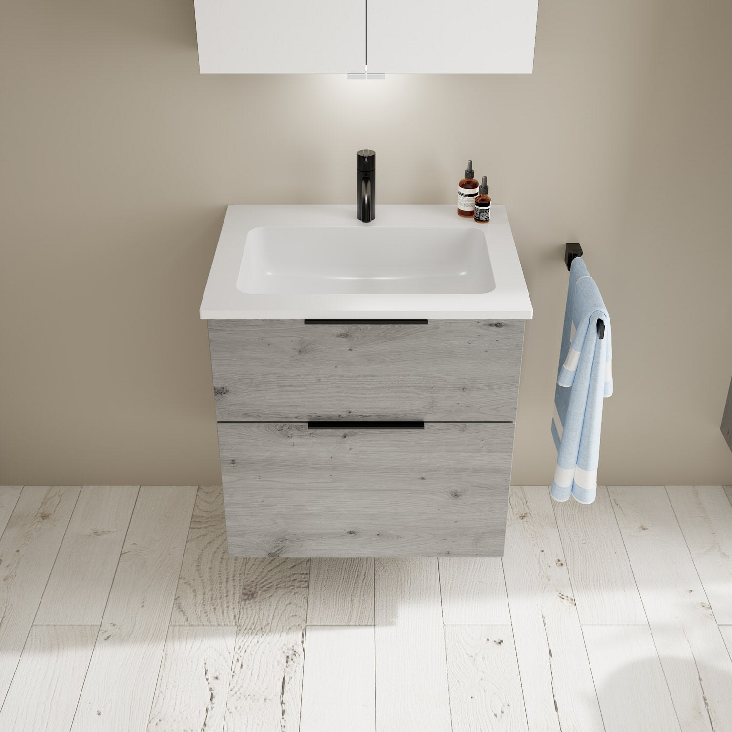 burgbad Eqio Waschtischkombination mit Mineralguss-Waschtisch, 62 cm, mit Griff G0200