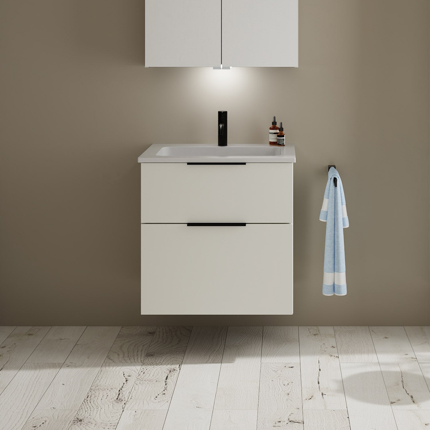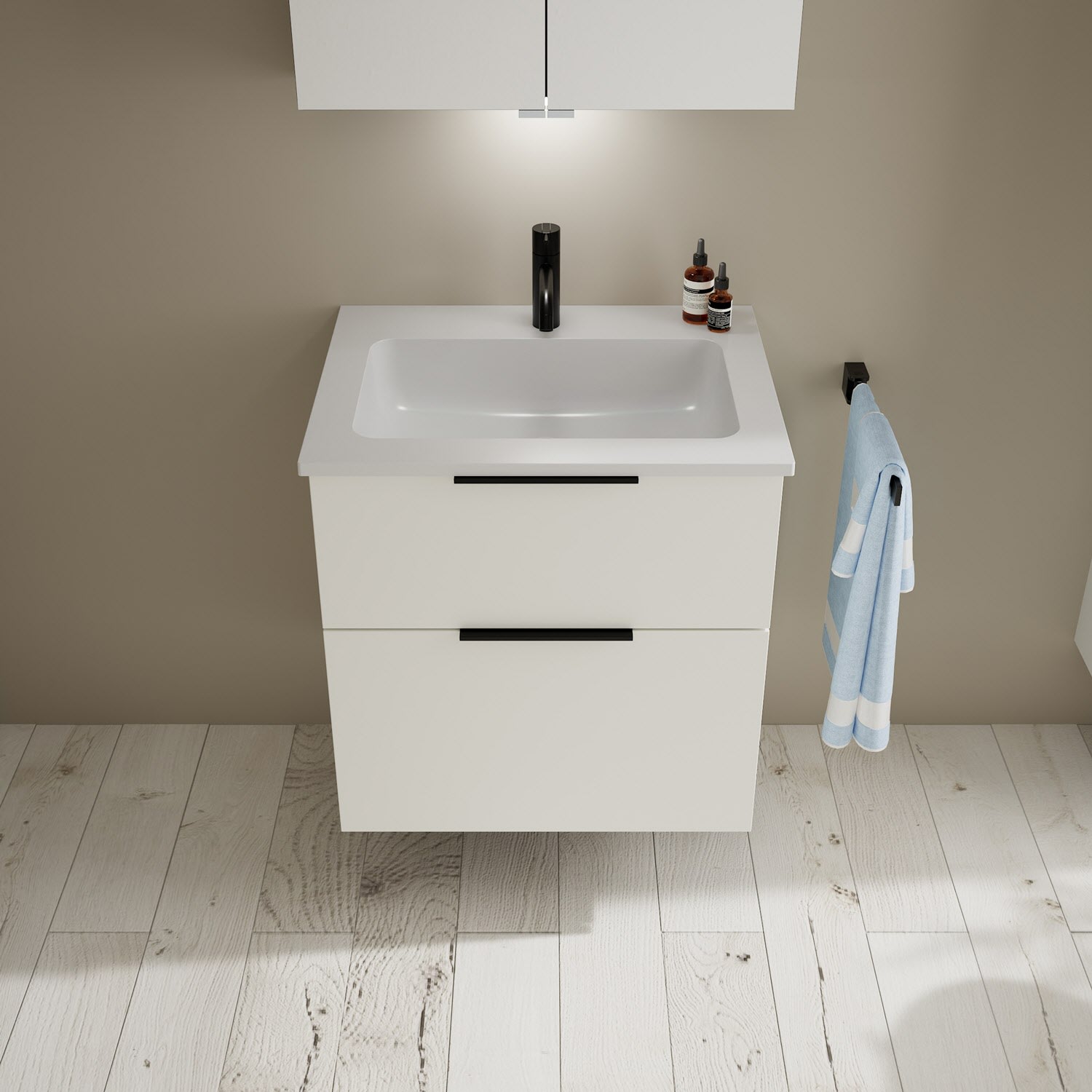 burgbad Eqio Waschtischkombination mit Mineralguss-Waschtisch, 62 cm, mit Griff G0200
