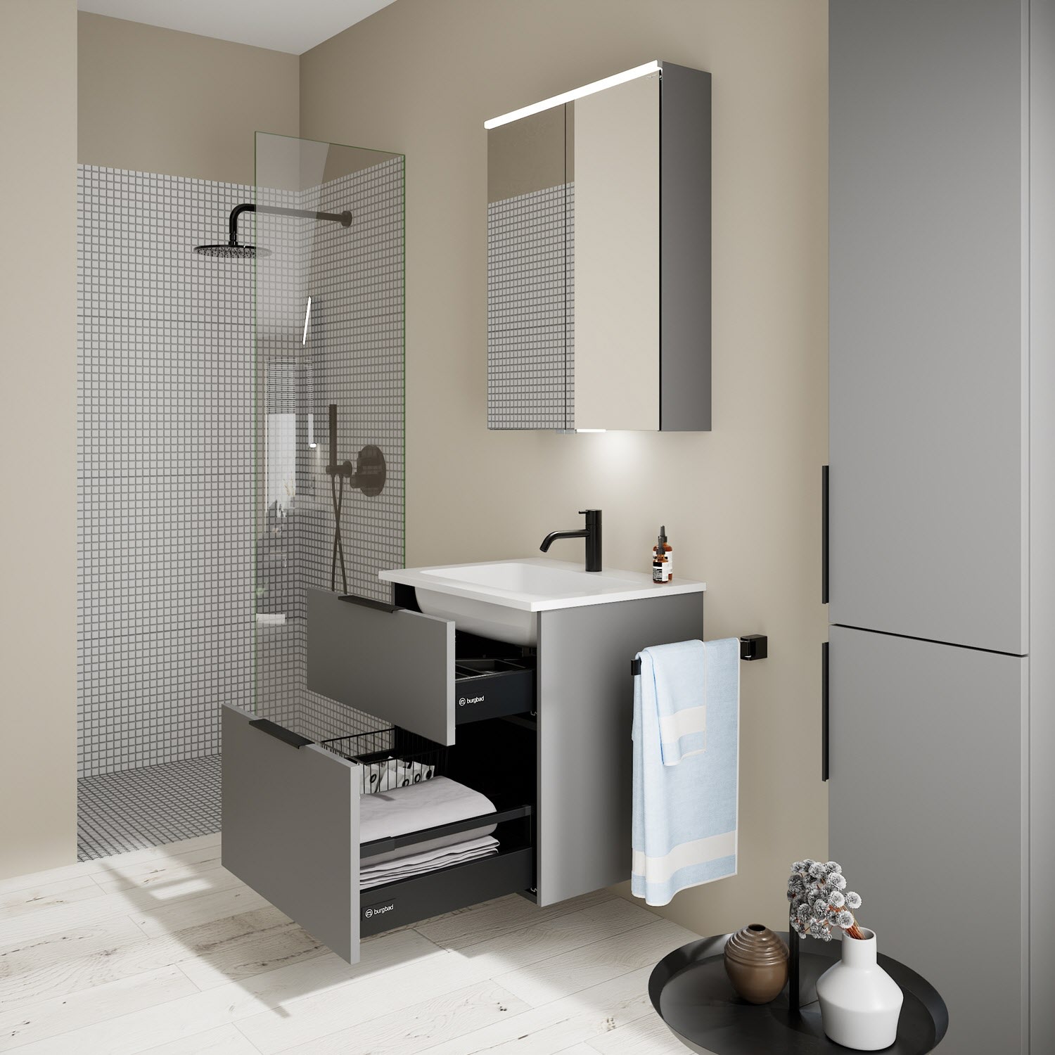 burgbad Eqio Waschtischkombination mit Mineralguss-Waschtisch, 62 cm, mit Griff G0200