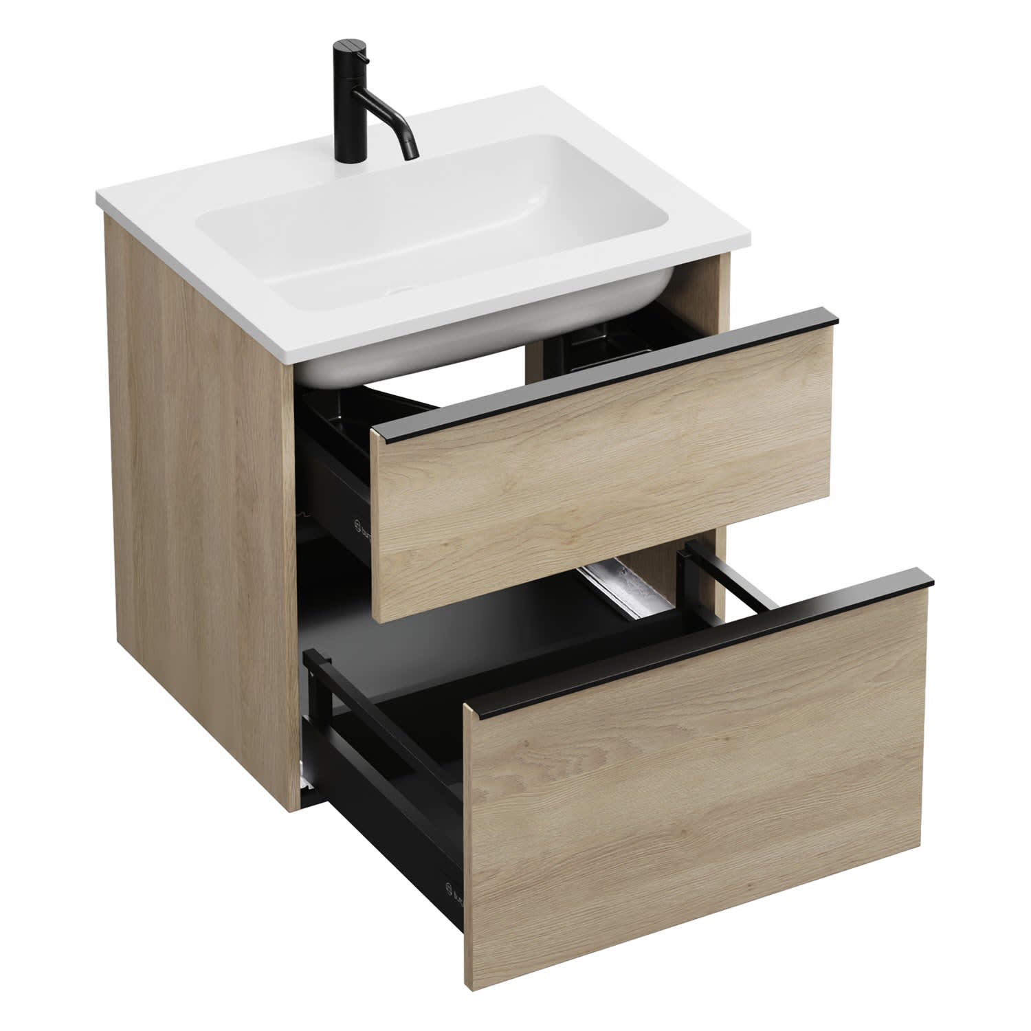 burgbad Eqio Waschtischkombination mit Mineralguss-Waschtisch, 62 cm, mit Griffleiste G0252