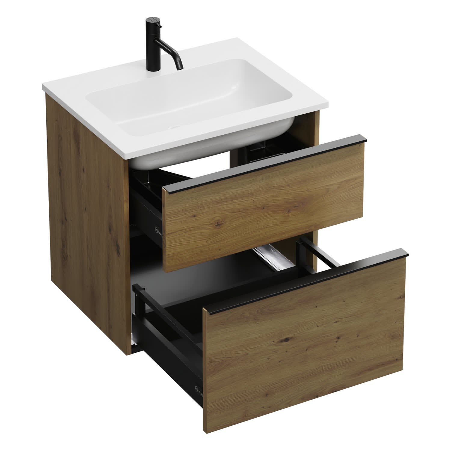 burgbad Eqio Waschtischkombination mit Mineralguss-Waschtisch, 62 cm, mit Griffleiste G0252