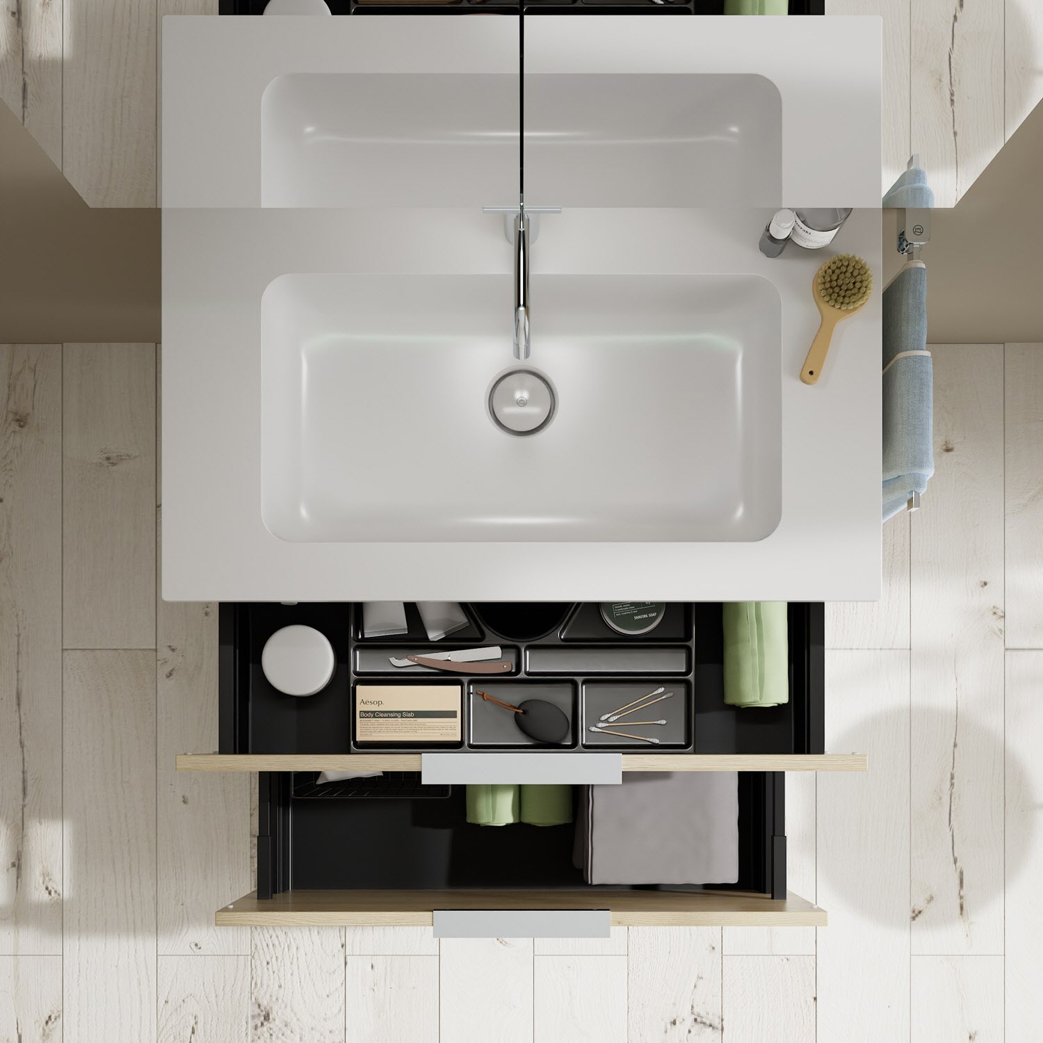 burgbad Eqio Waschtischkombination mit Mineralguss-Waschtisch, 82 cm, mit Griff G0146