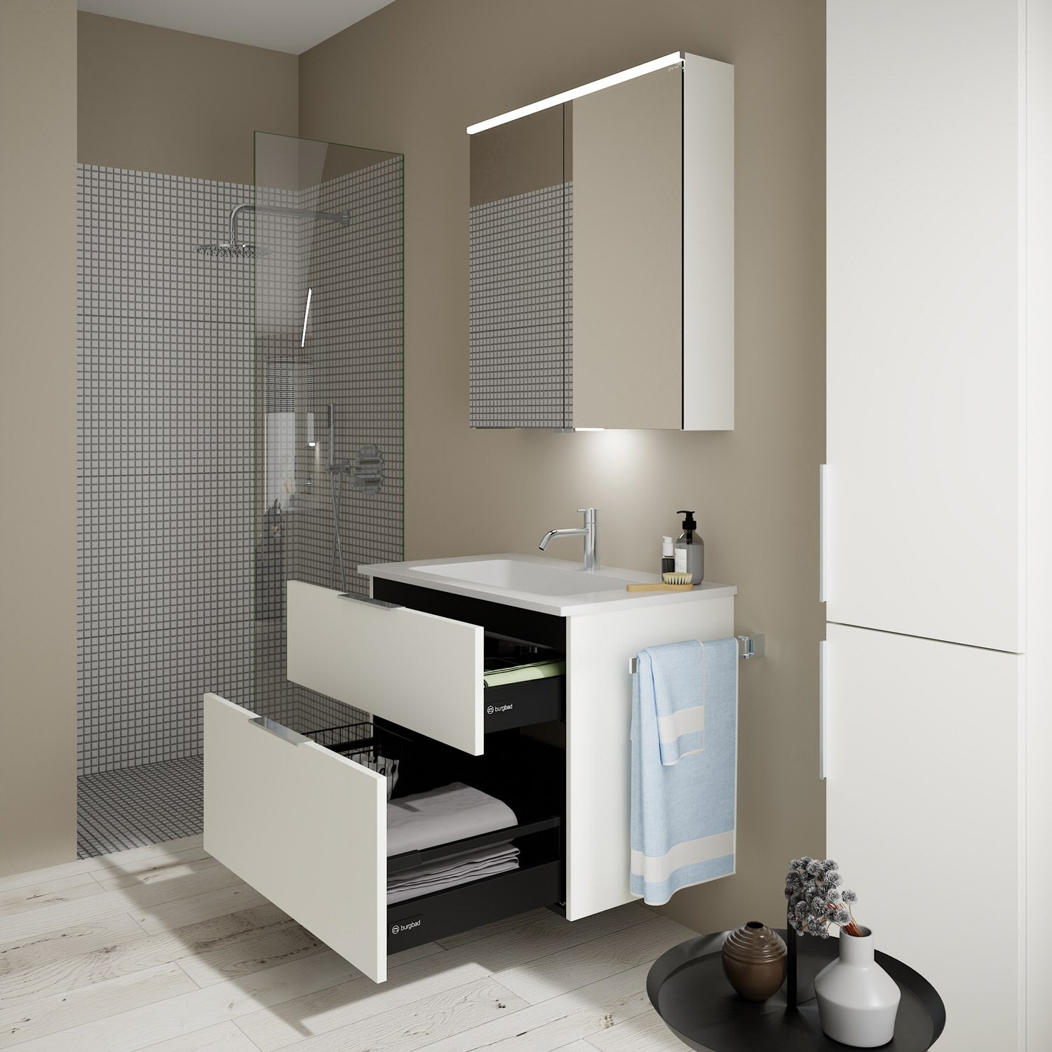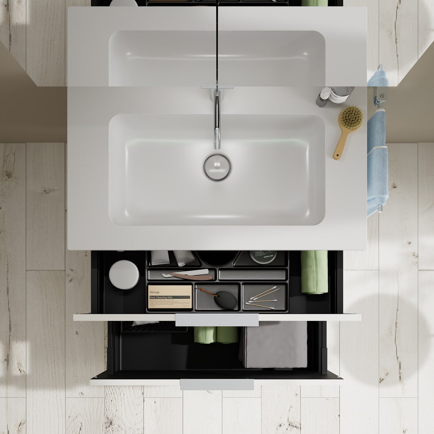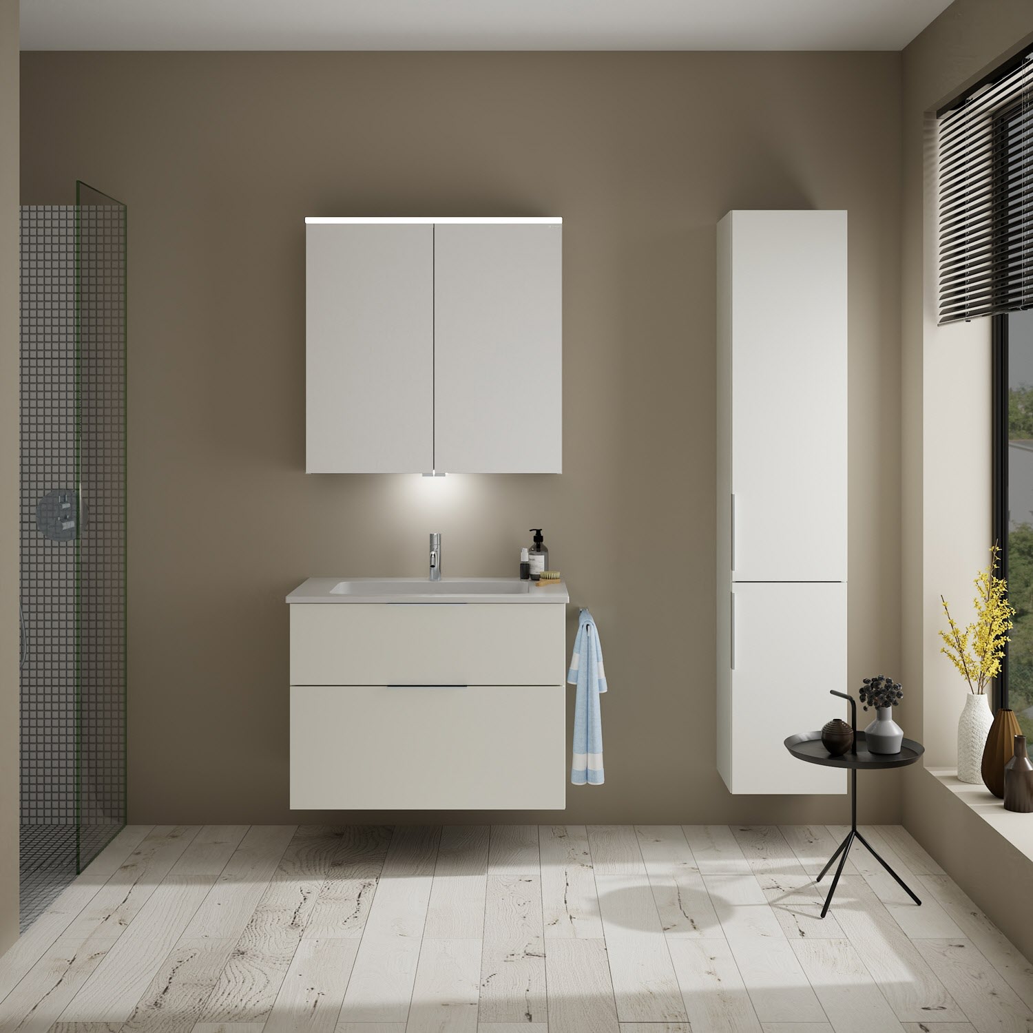 burgbad Eqio Waschtischkombination mit Mineralguss-Waschtisch, 82 cm, mit Griff G0146
