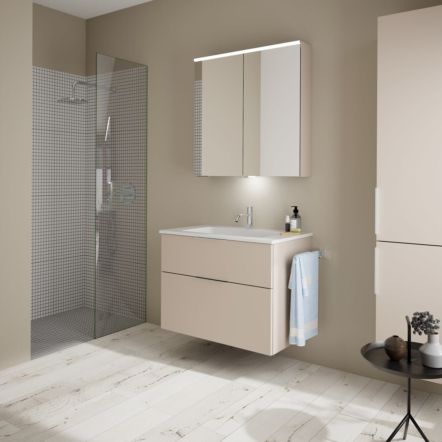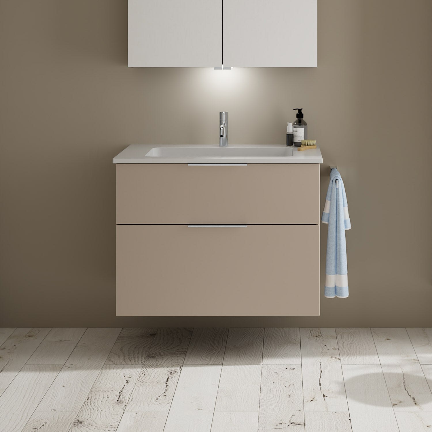 burgbad Eqio Waschtischkombination mit Mineralguss-Waschtisch, 82 cm, mit Griff G0146
