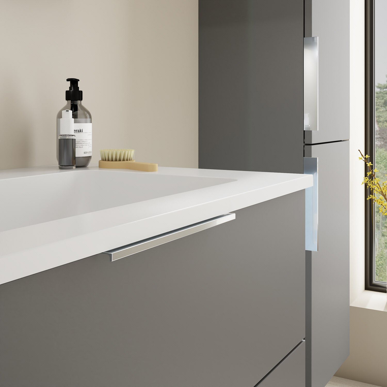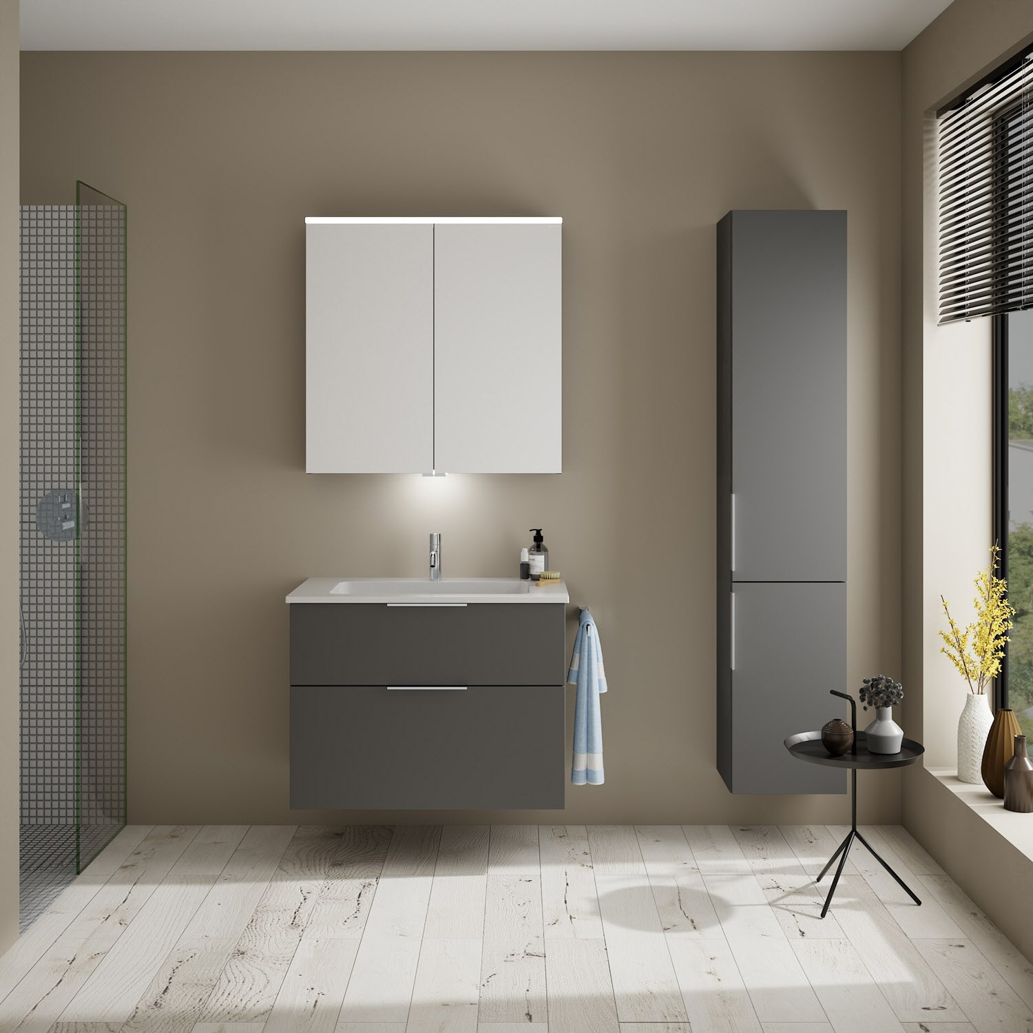 burgbad Eqio Waschtischkombination mit Mineralguss-Waschtisch, 82 cm, mit Griff G0146