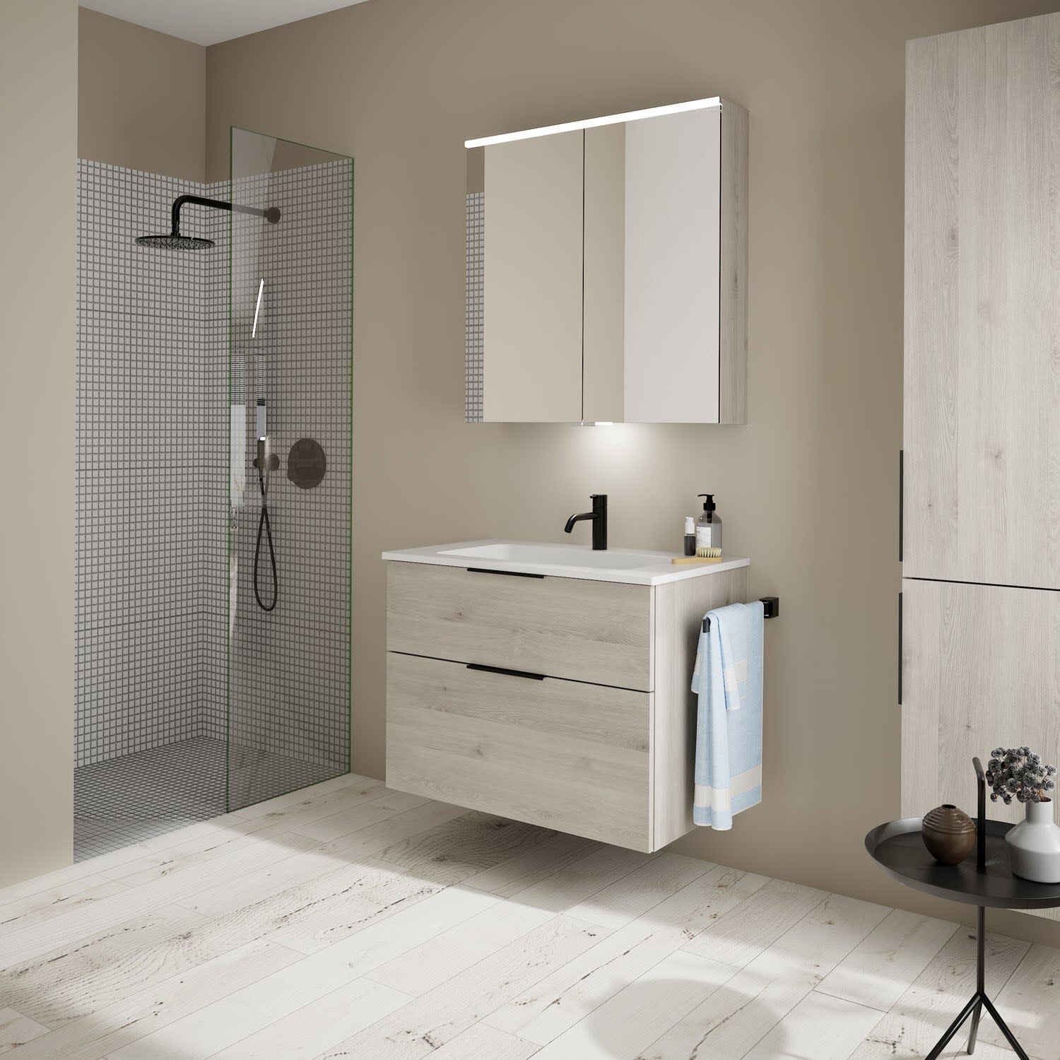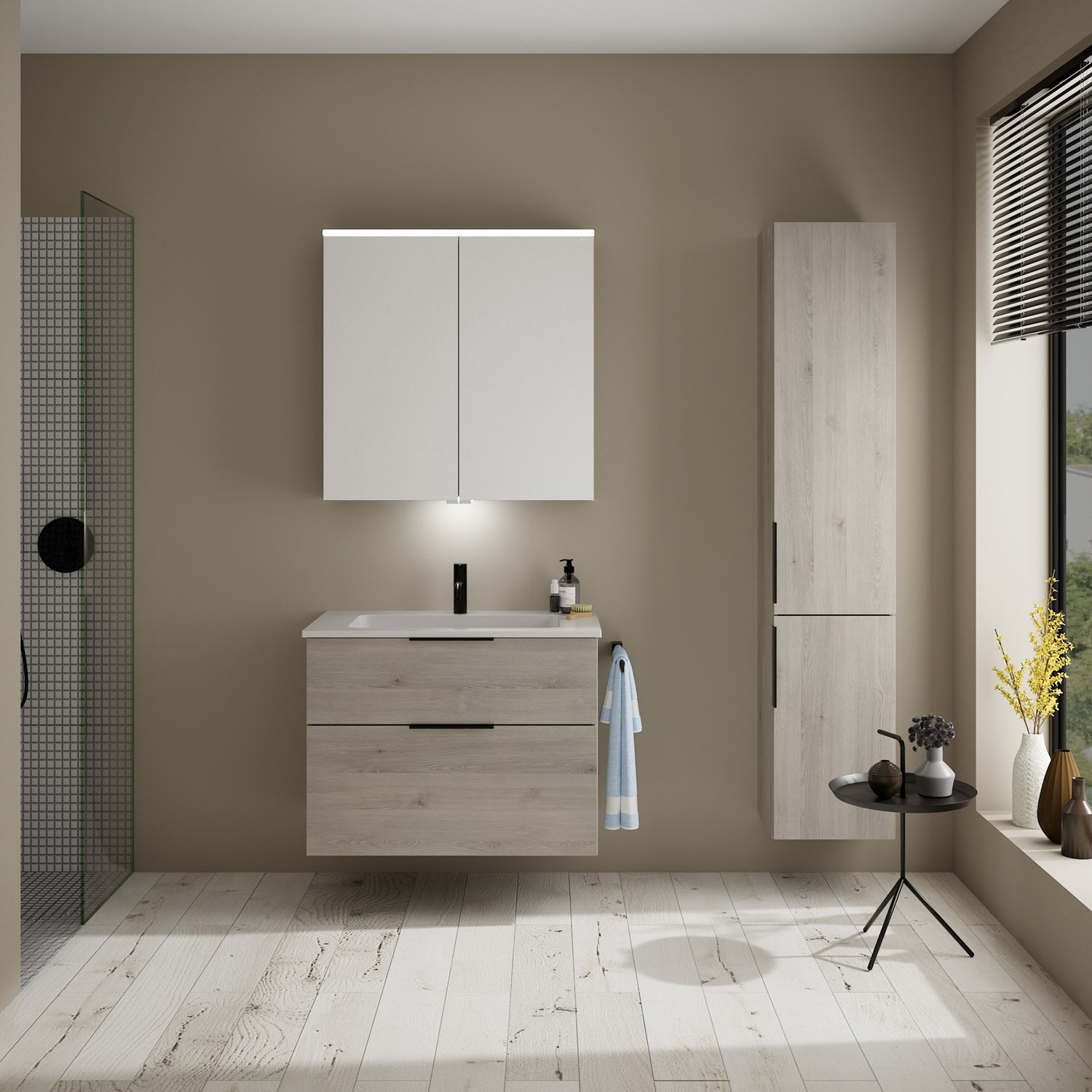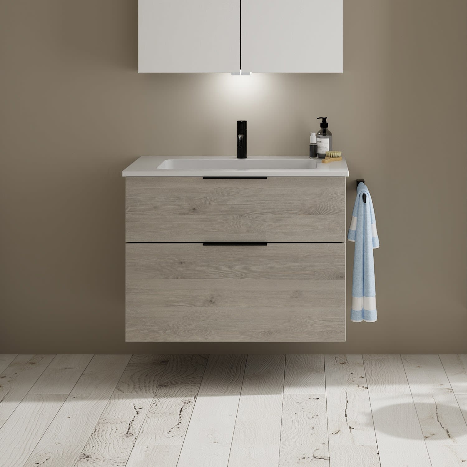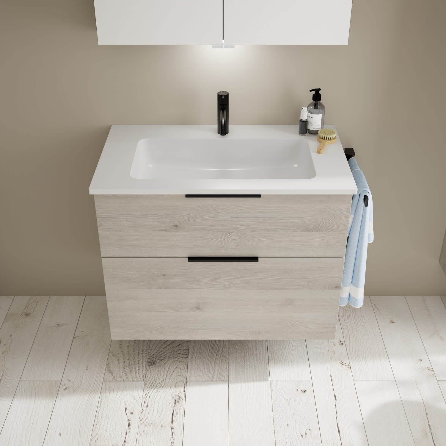 burgbad Eqio Waschtischkombination mit Mineralguss-Waschtisch, 82 cm, mit Griff G0200