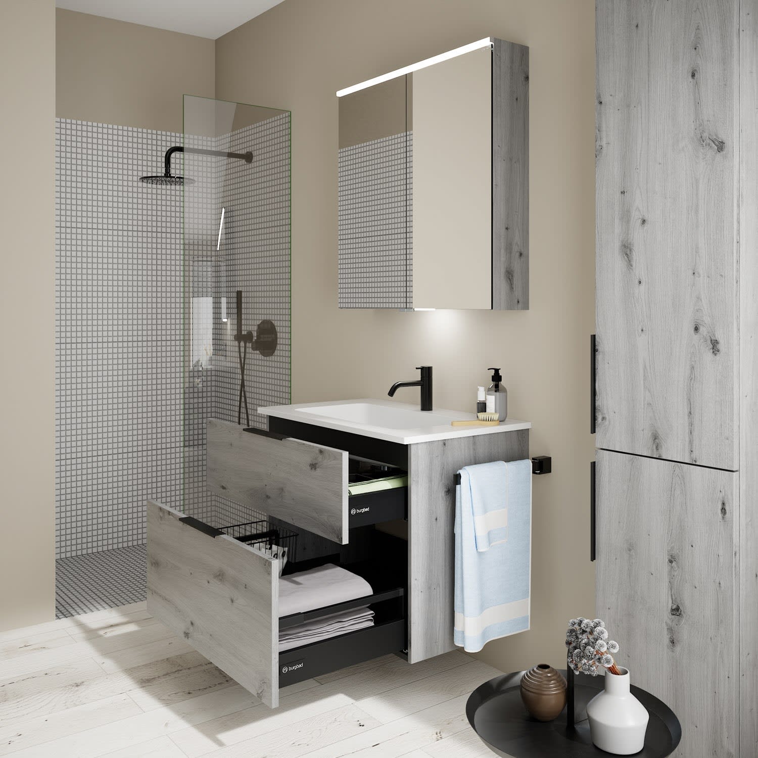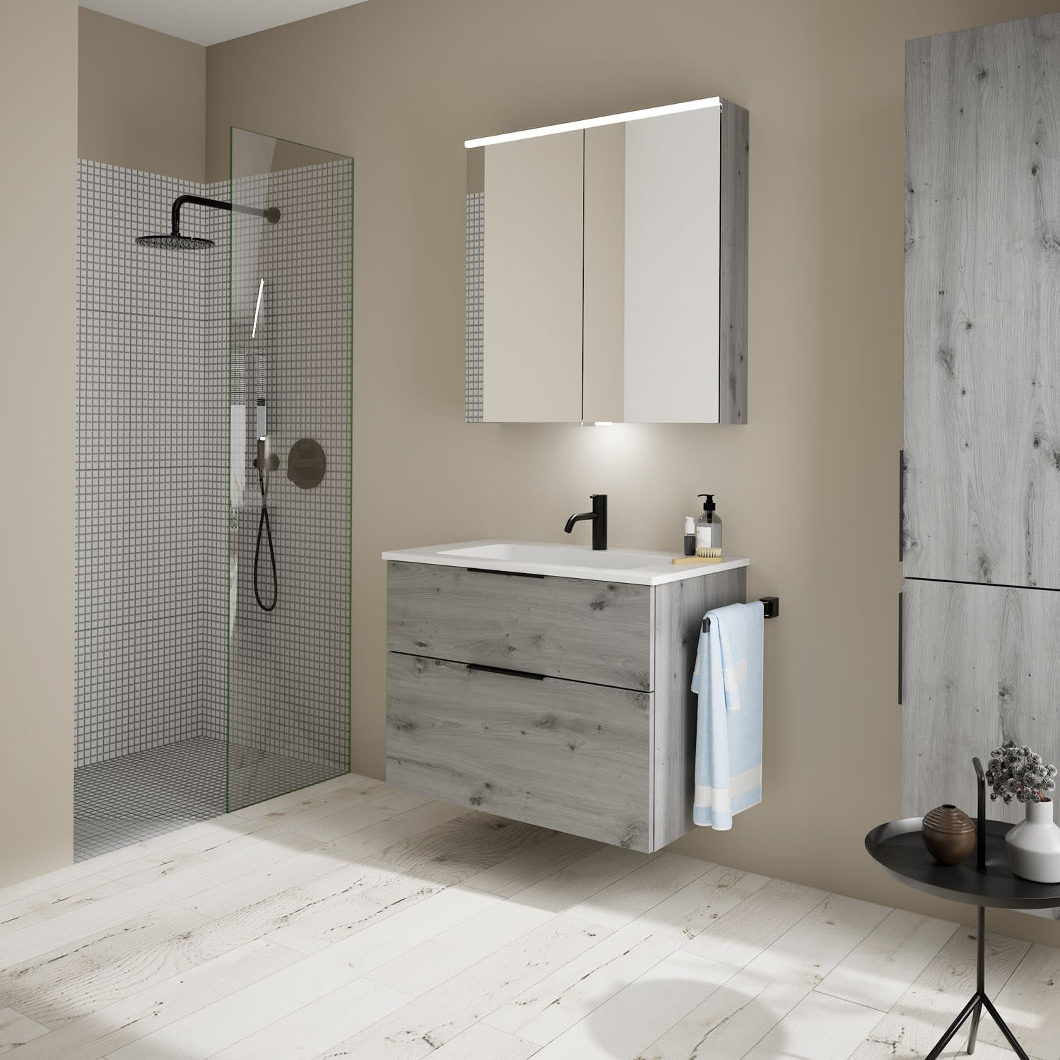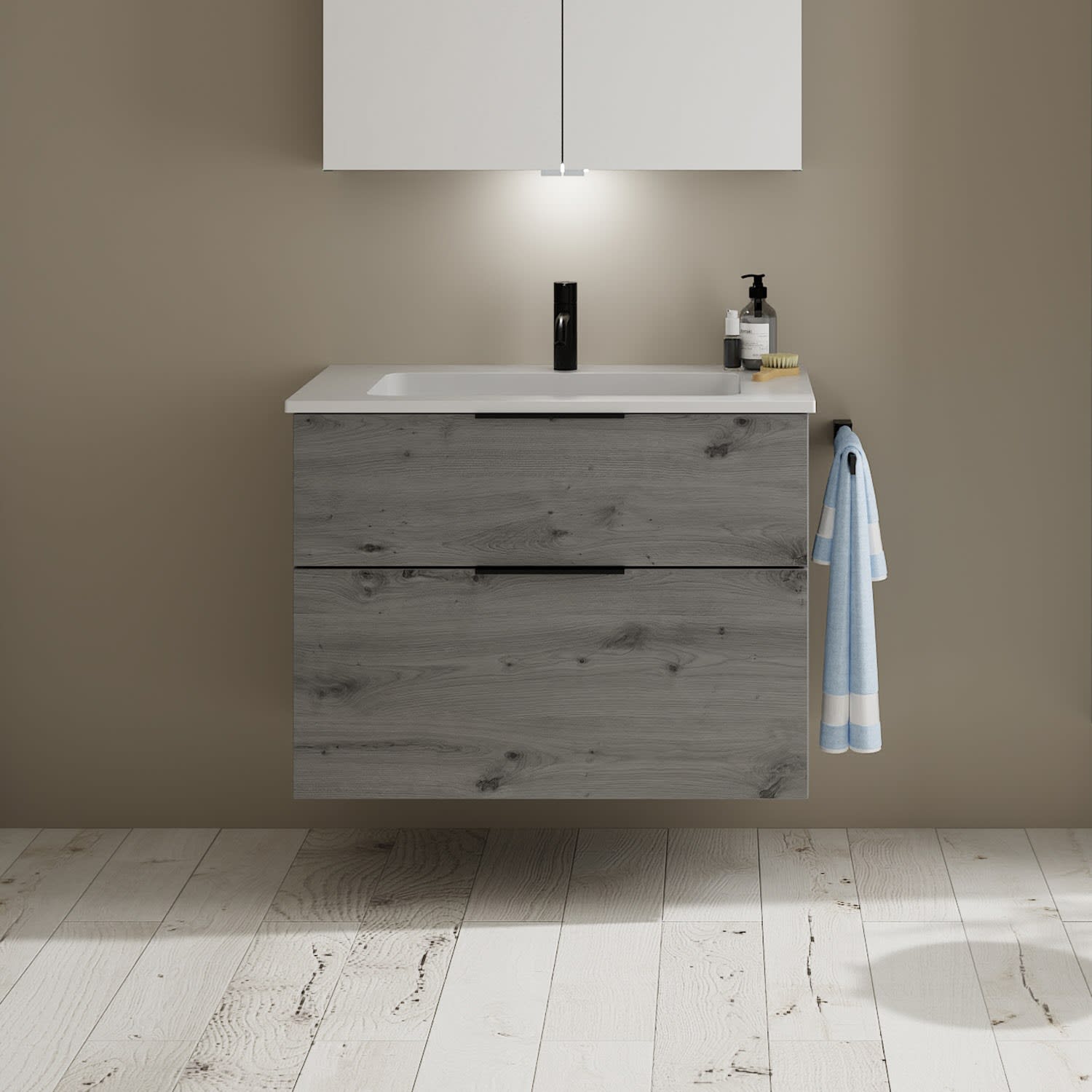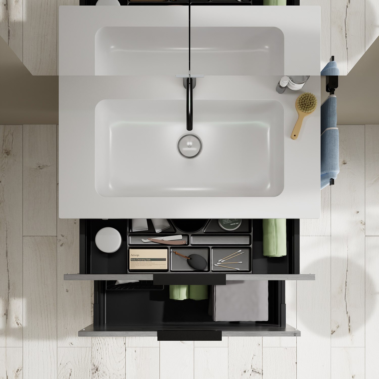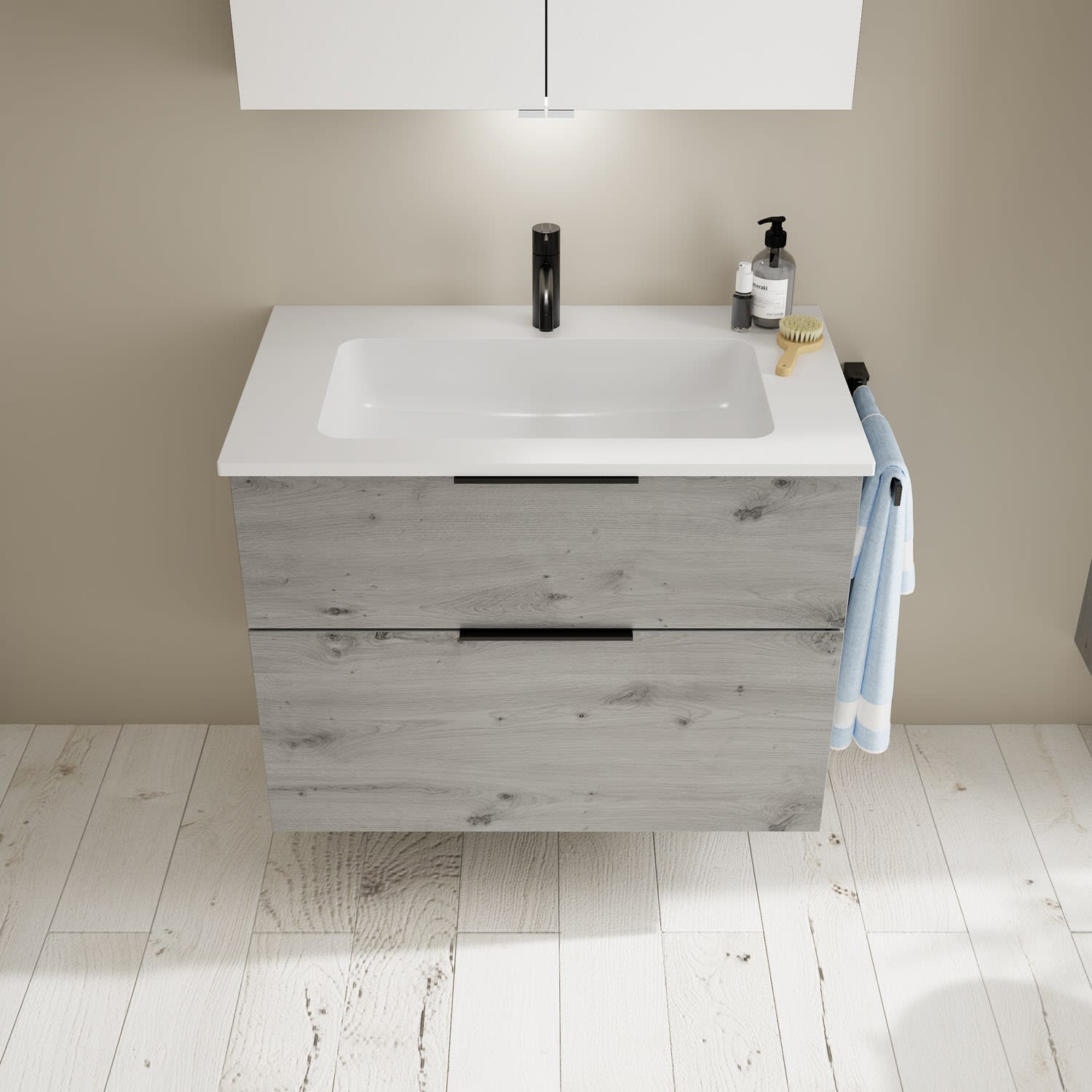 burgbad Eqio Waschtischkombination mit Mineralguss-Waschtisch, 82 cm, mit Griff G0200