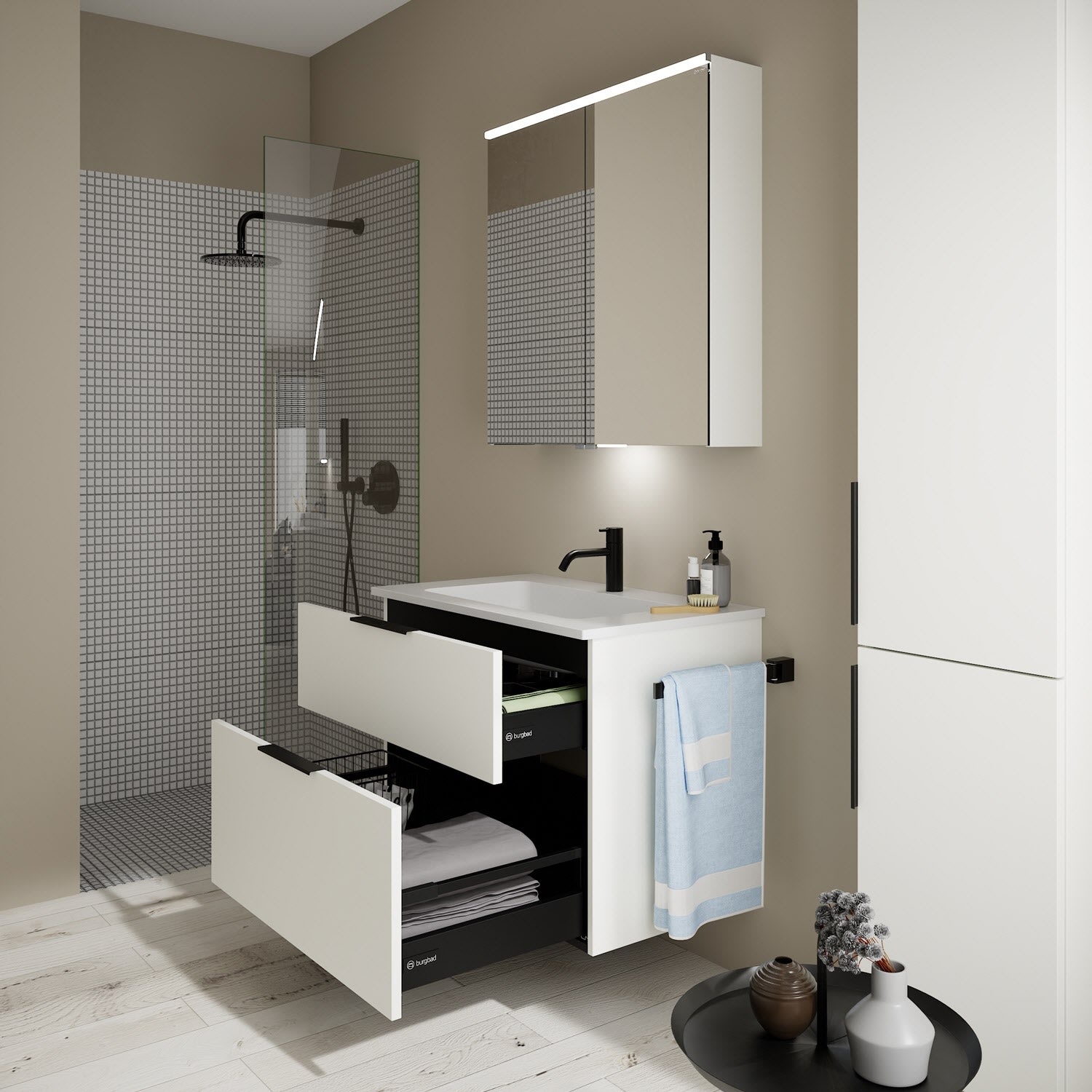 burgbad Eqio Waschtischkombination mit Mineralguss-Waschtisch, 82 cm, mit Griff G0200