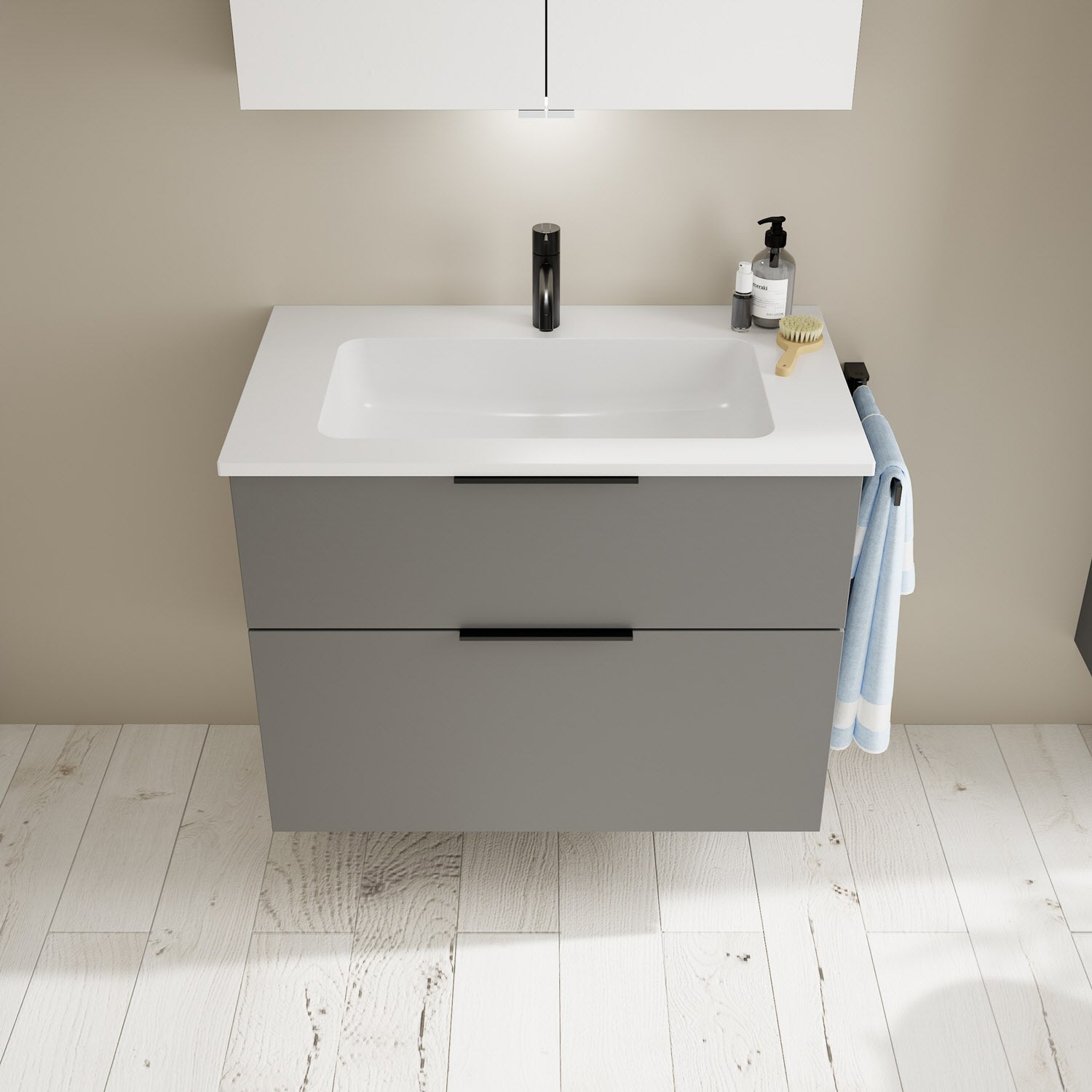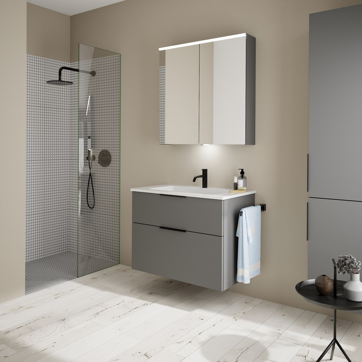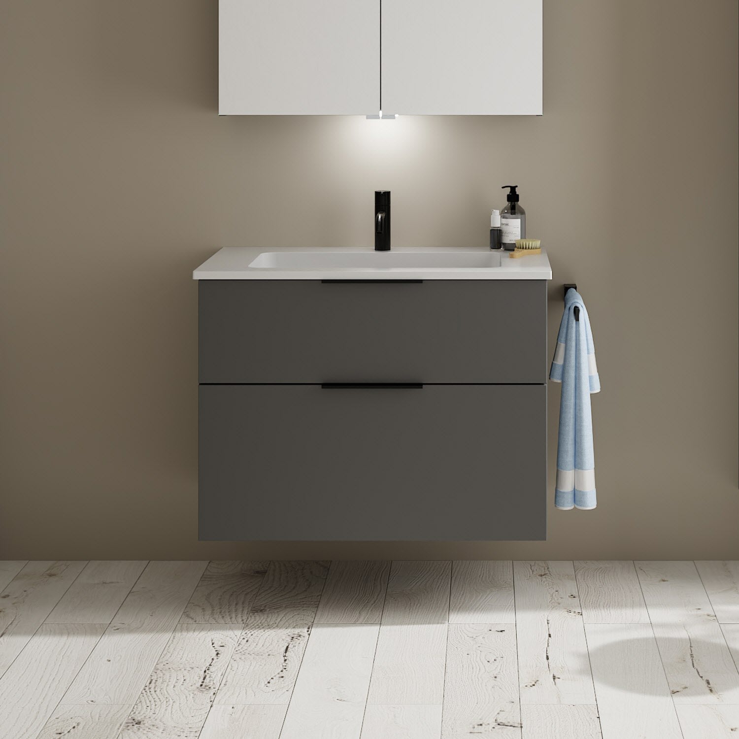 burgbad Eqio Waschtischkombination mit Mineralguss-Waschtisch, 82 cm, mit Griff G0200