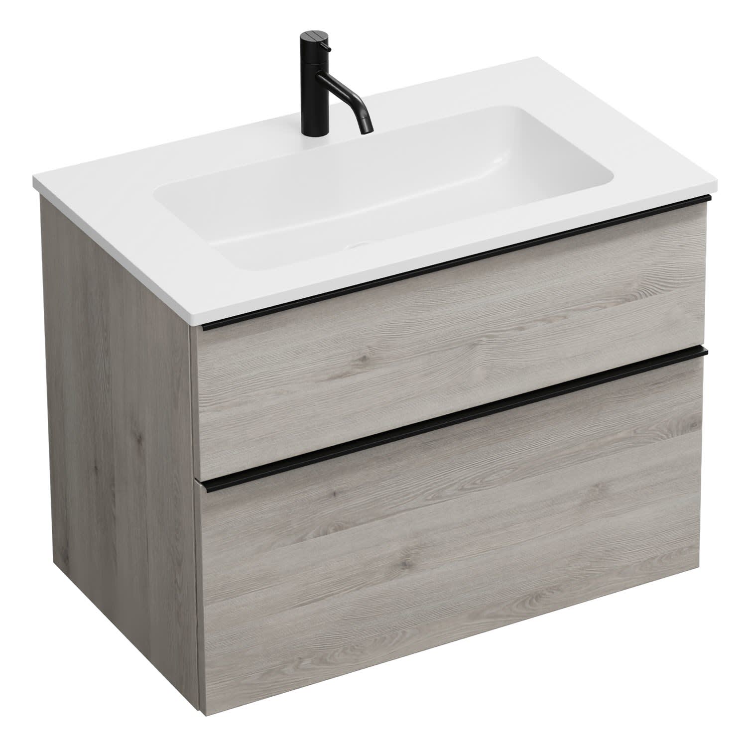 burgbad Eqio Waschtischkombination mit Mineralguss-Waschtisch, 82 cm, mit Griffleiste G0252