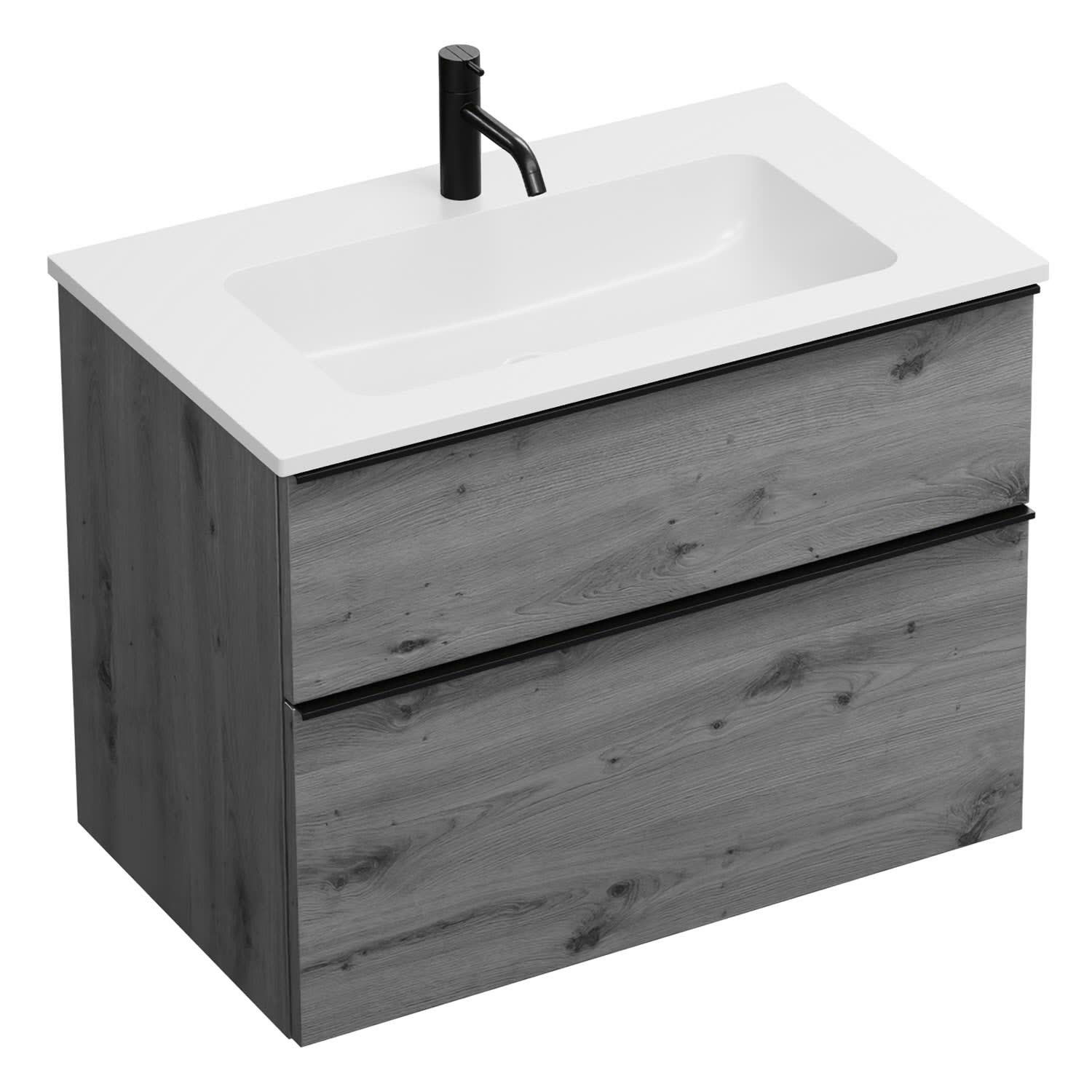 burgbad Eqio Waschtischkombination mit Mineralguss-Waschtisch, 82 cm, mit Griffleiste G0252