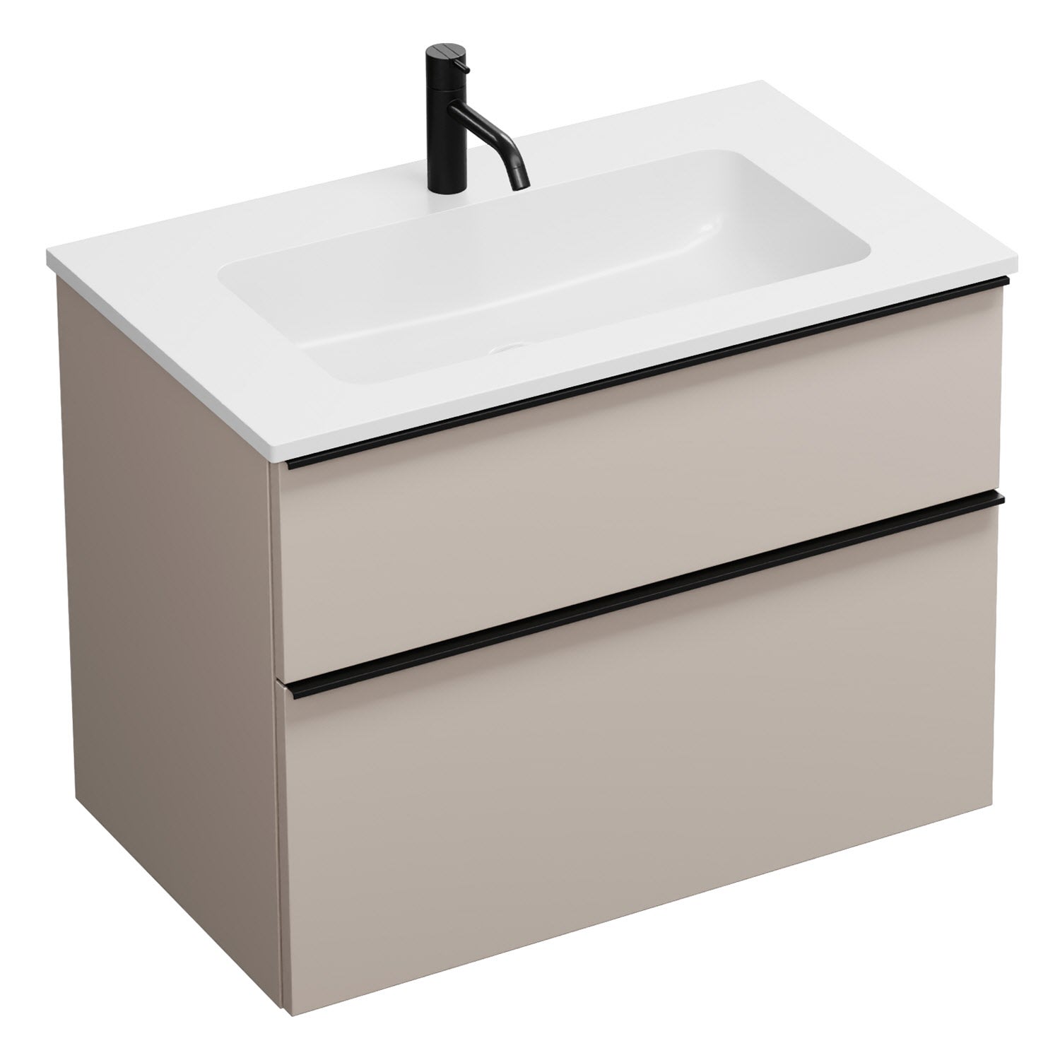 burgbad Eqio Waschtischkombination mit Mineralguss-Waschtisch, 82 cm, mit Griffleiste G0252