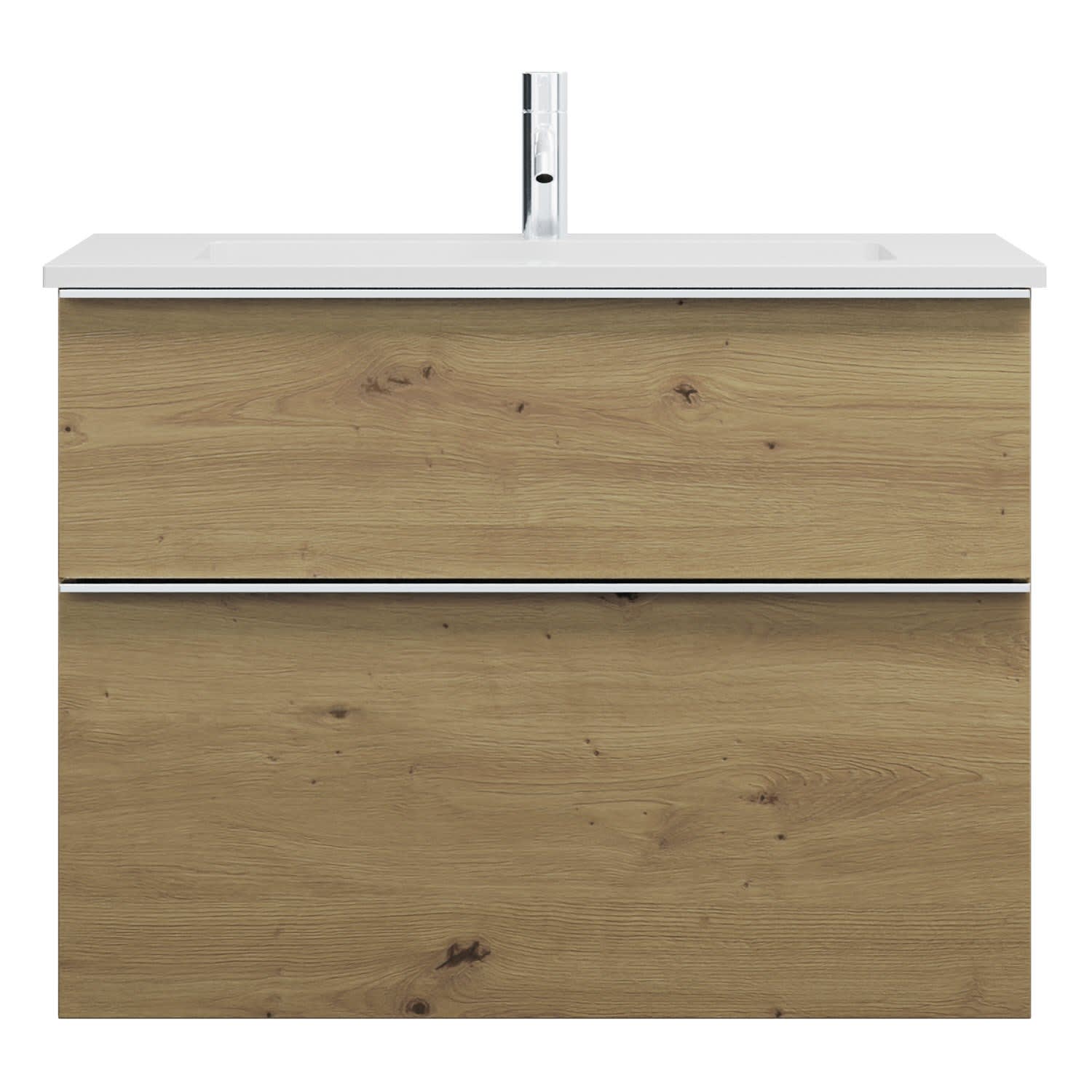 burgbad Eqio Waschtischkombination mit Mineralguss-Waschtisch, 82 cm, mit Griffleiste G0251