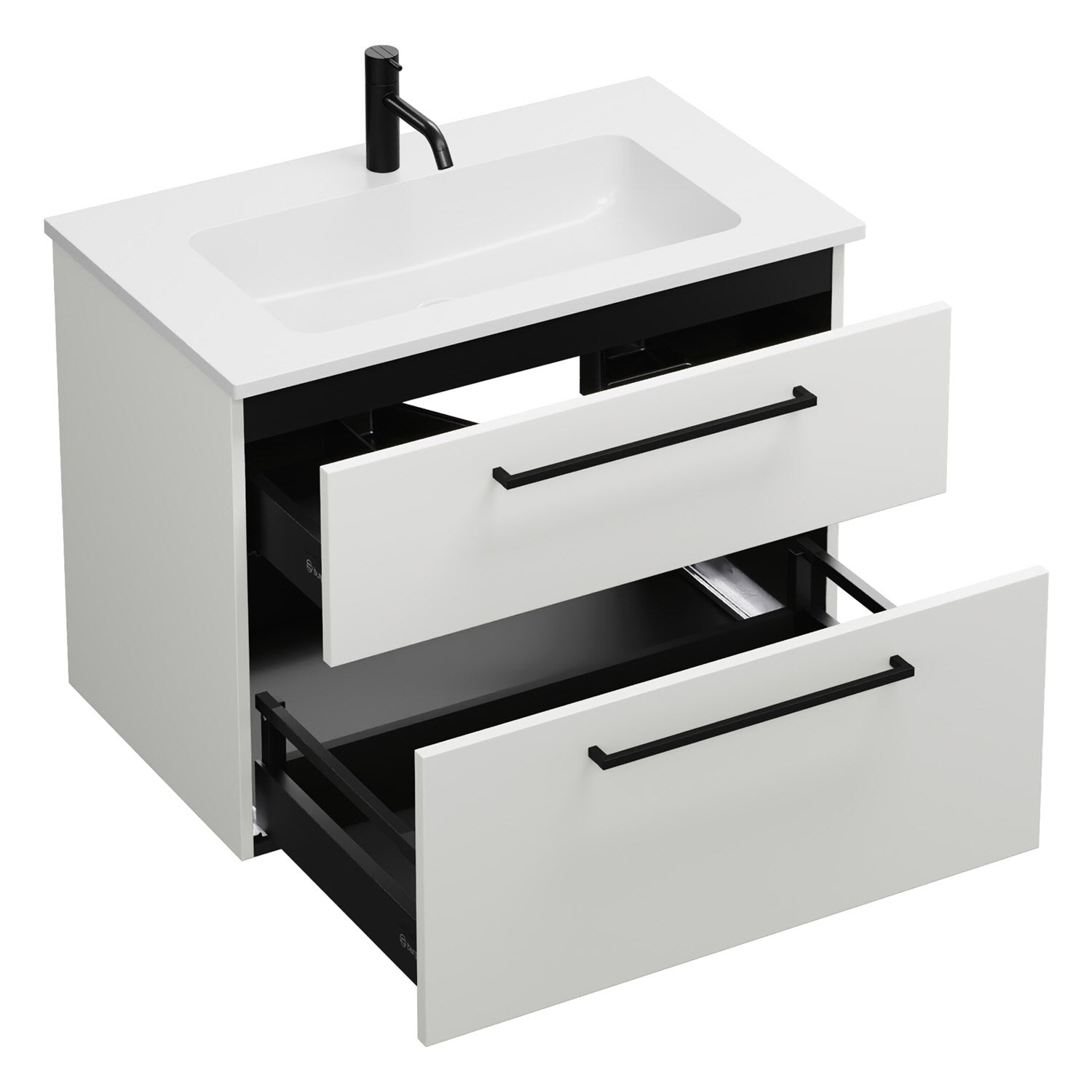 burgbad Eqio Waschtischkombination mit Mineralguss-Waschtisch, 82 cm, mit Stangengriff G0234
