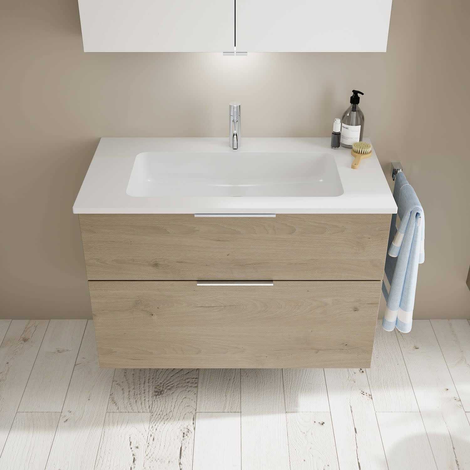burgbad Eqio Waschtischkombination mit Mineralguss-Waschtisch, 92 cm, mit Griff G0146