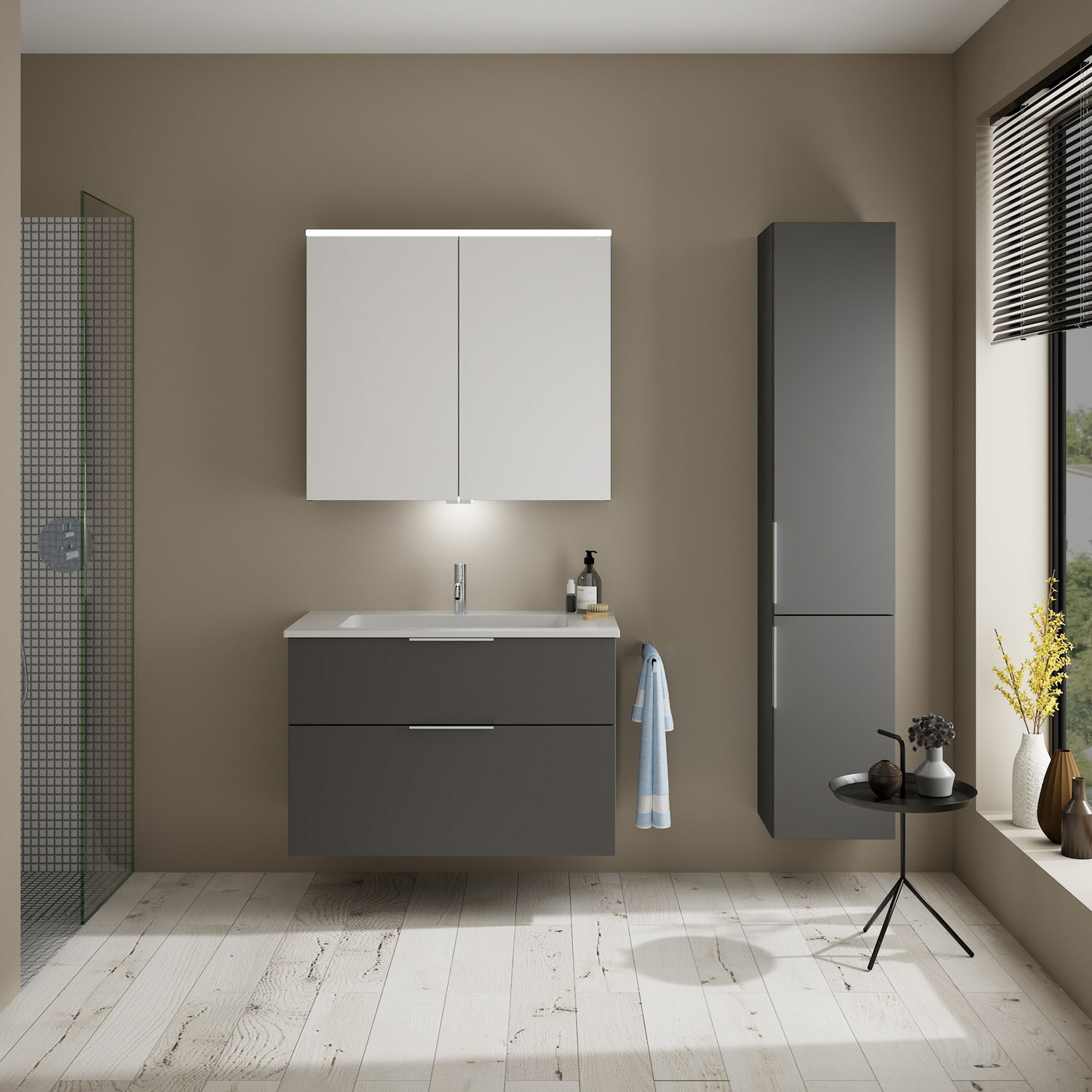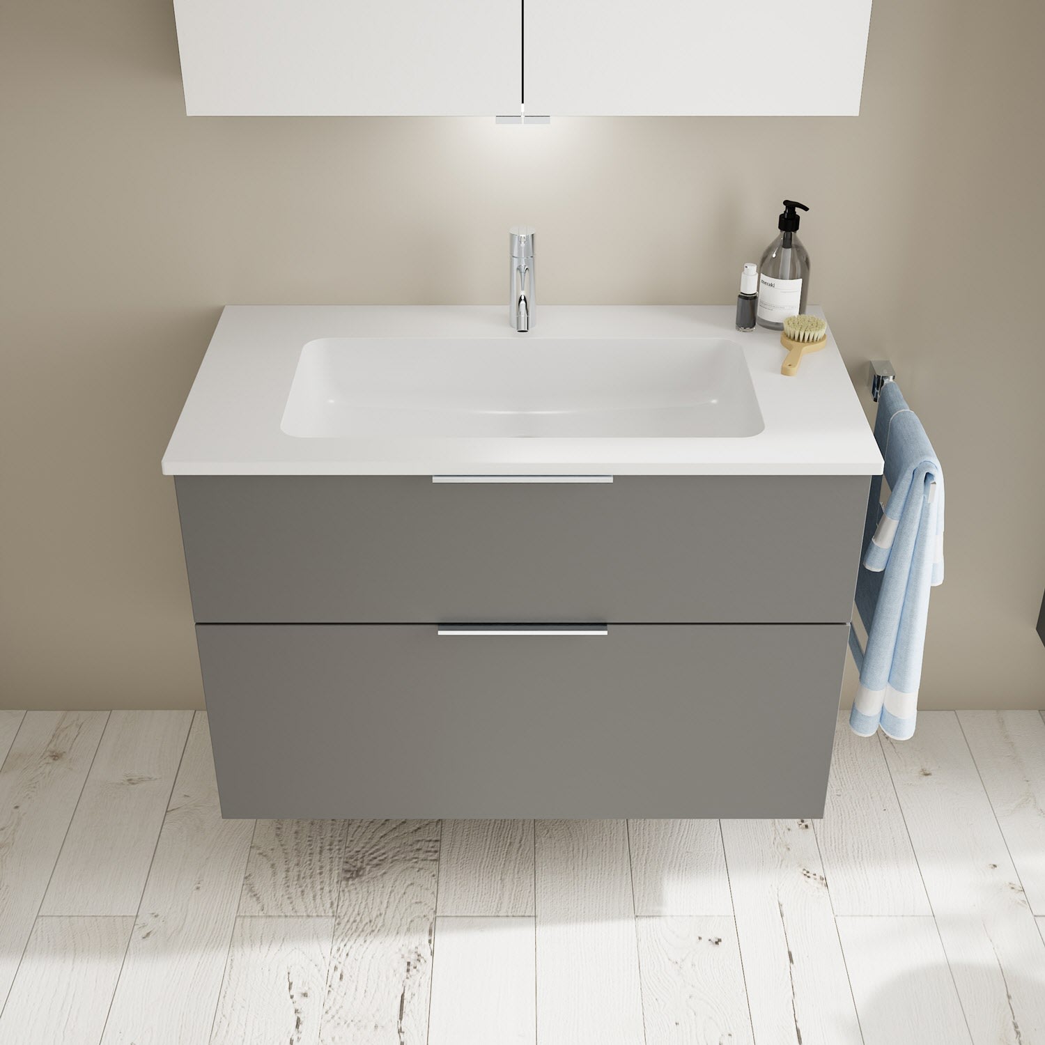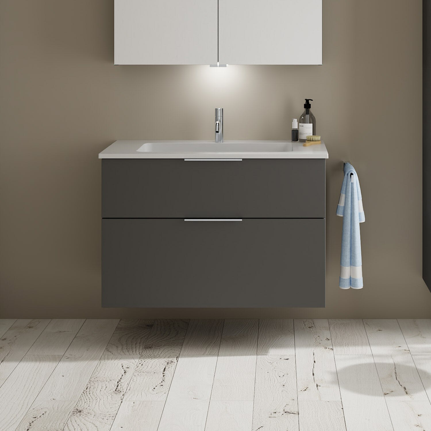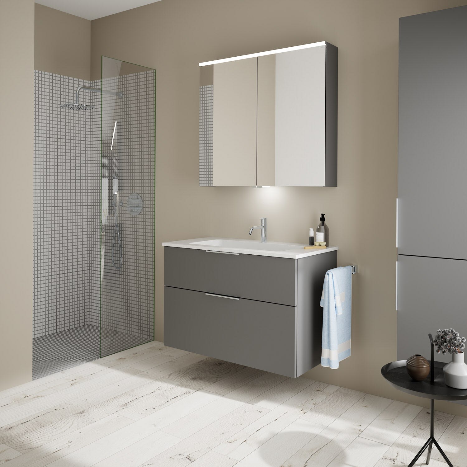 burgbad Eqio Waschtischkombination mit Mineralguss-Waschtisch, 92 cm, mit Griff G0146