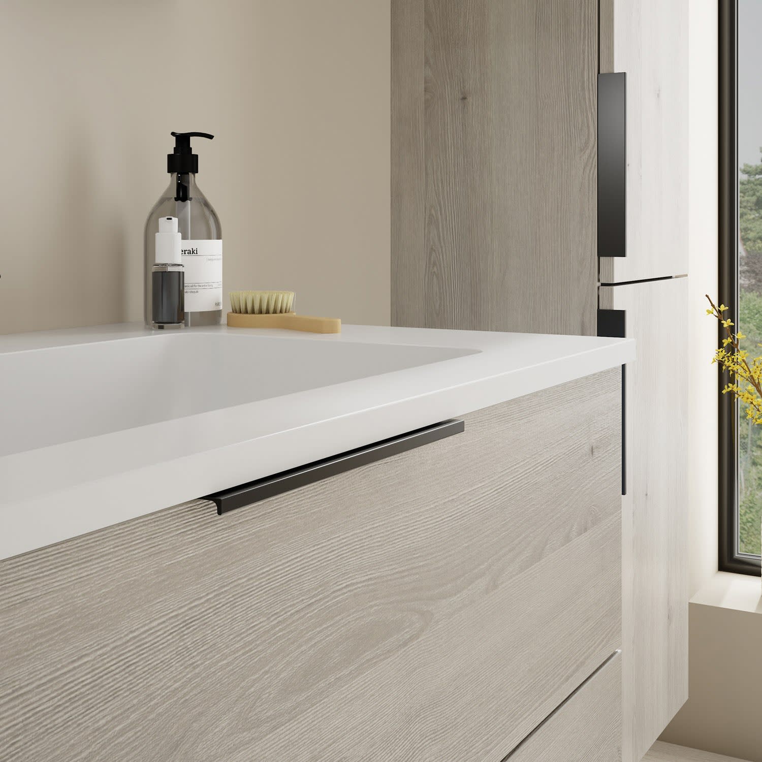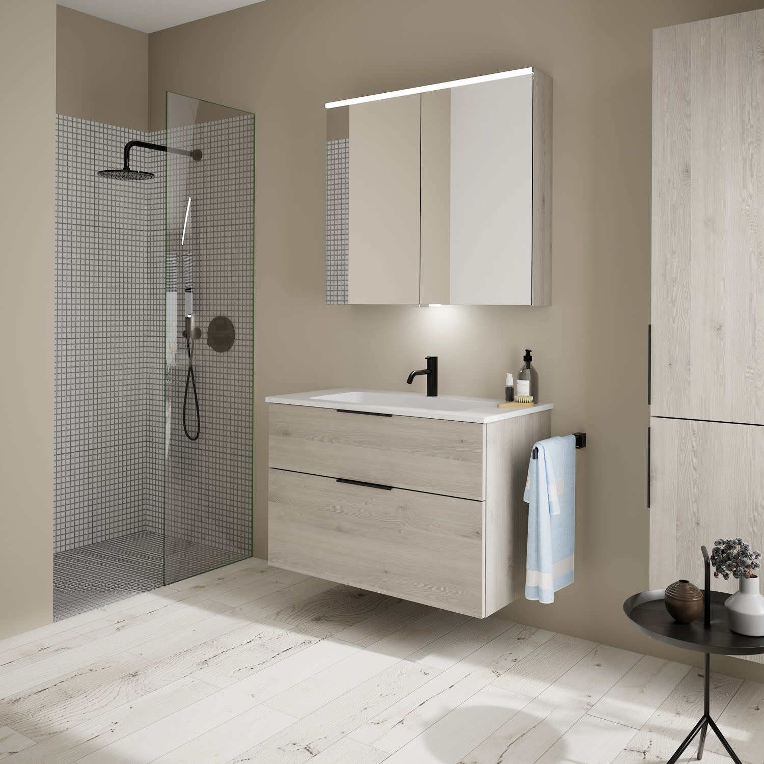 burgbad Eqio Waschtischkombination mit Mineralguss-Waschtisch, 92 cm, mit Griff G0200