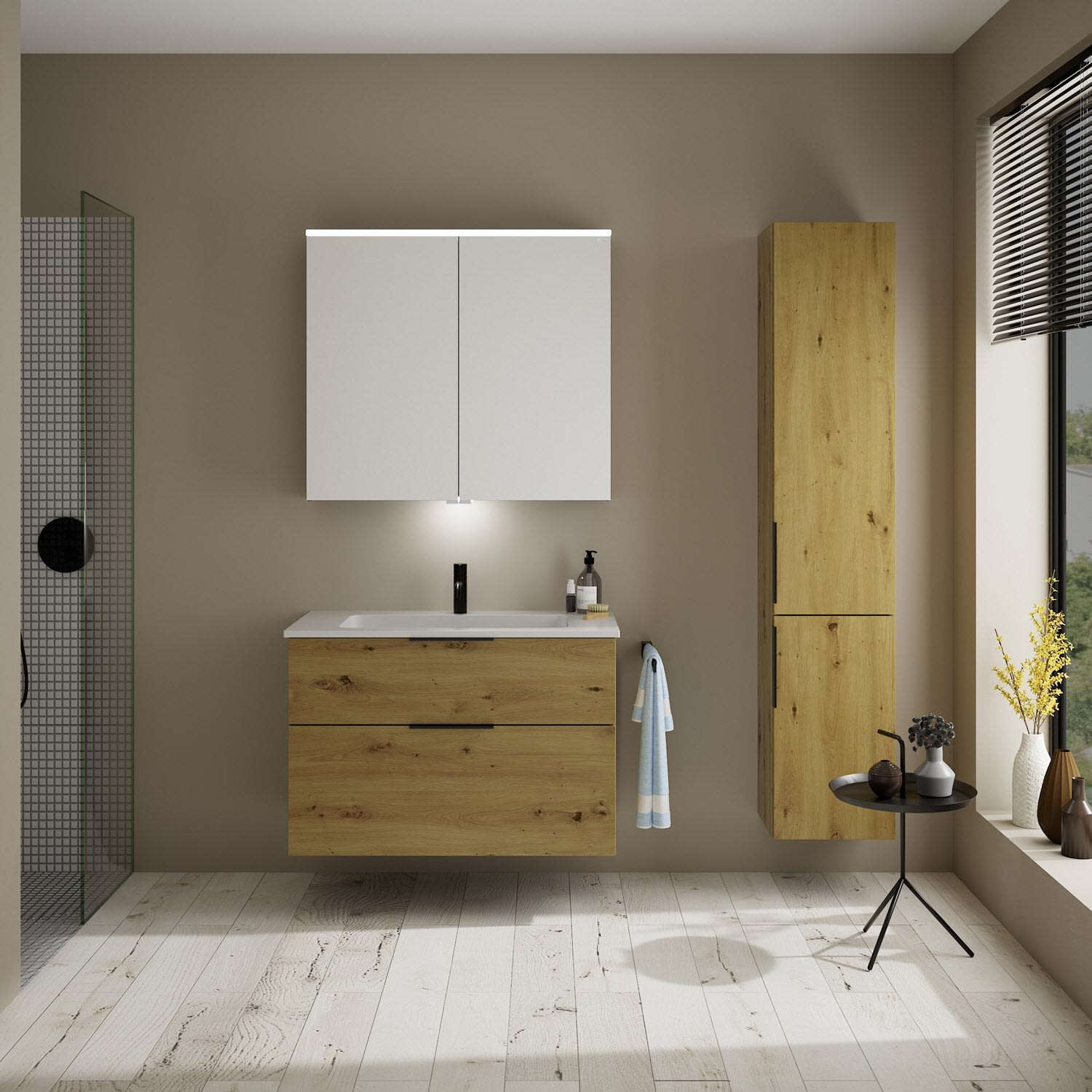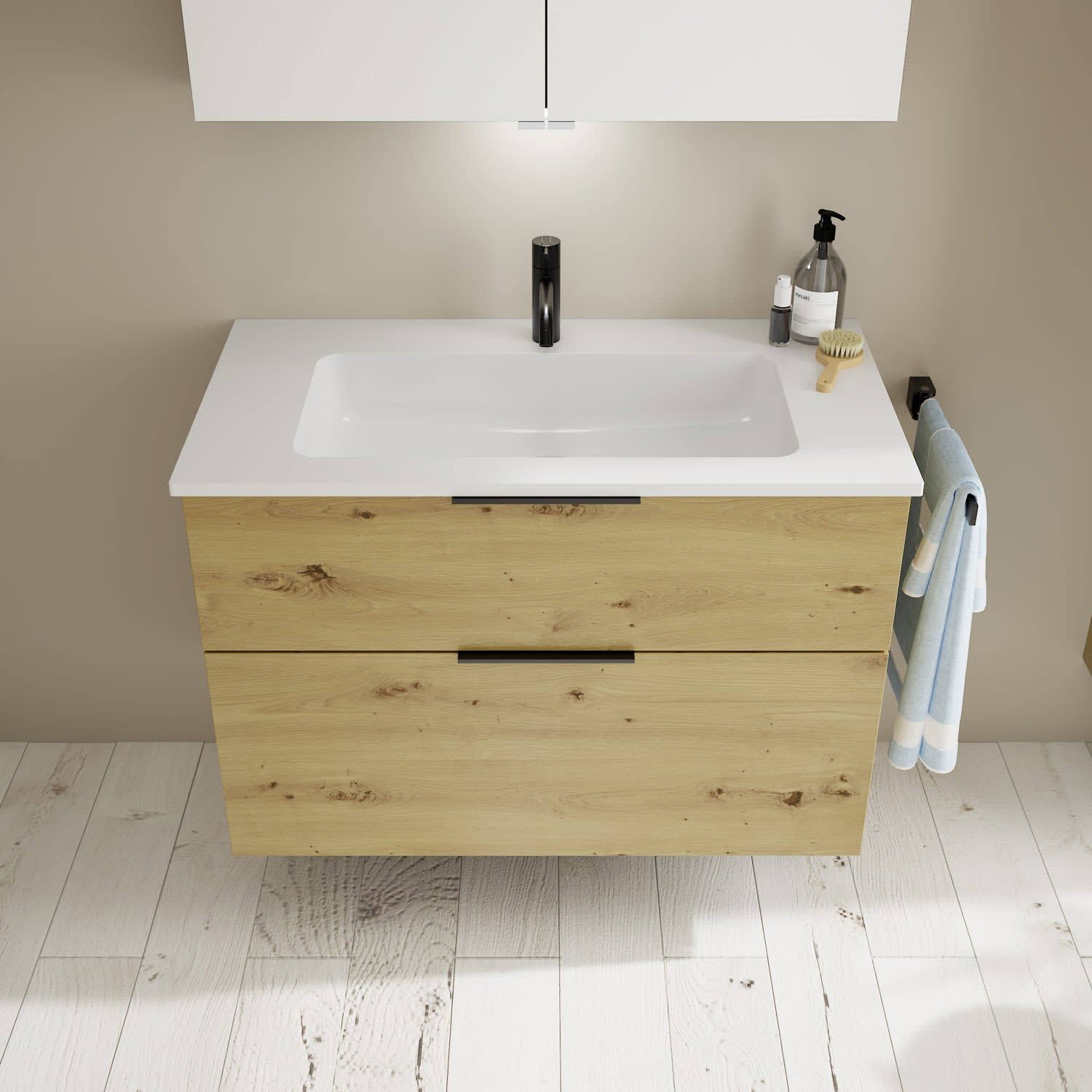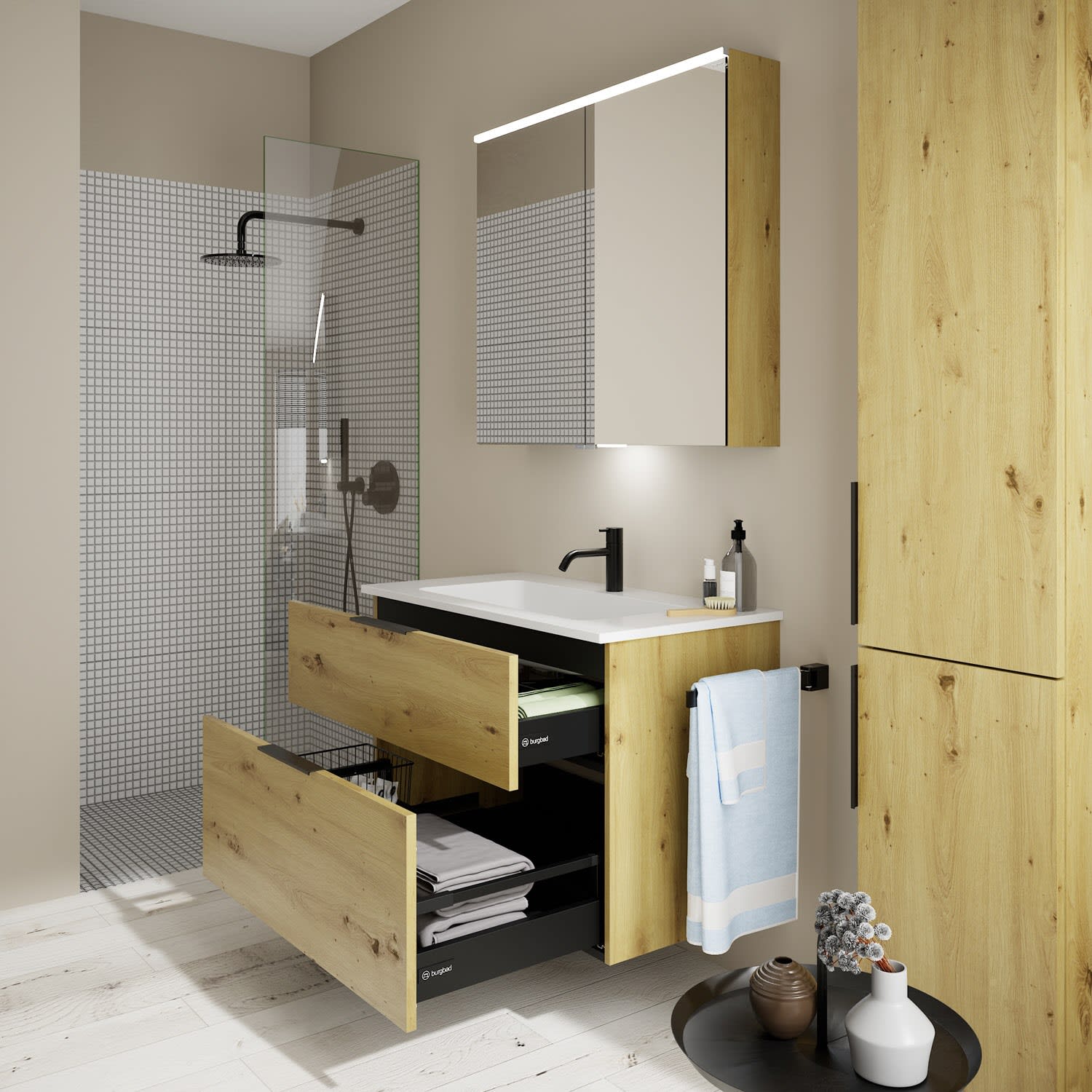 burgbad Eqio Waschtischkombination mit Mineralguss-Waschtisch, 92 cm, mit Griff G0200