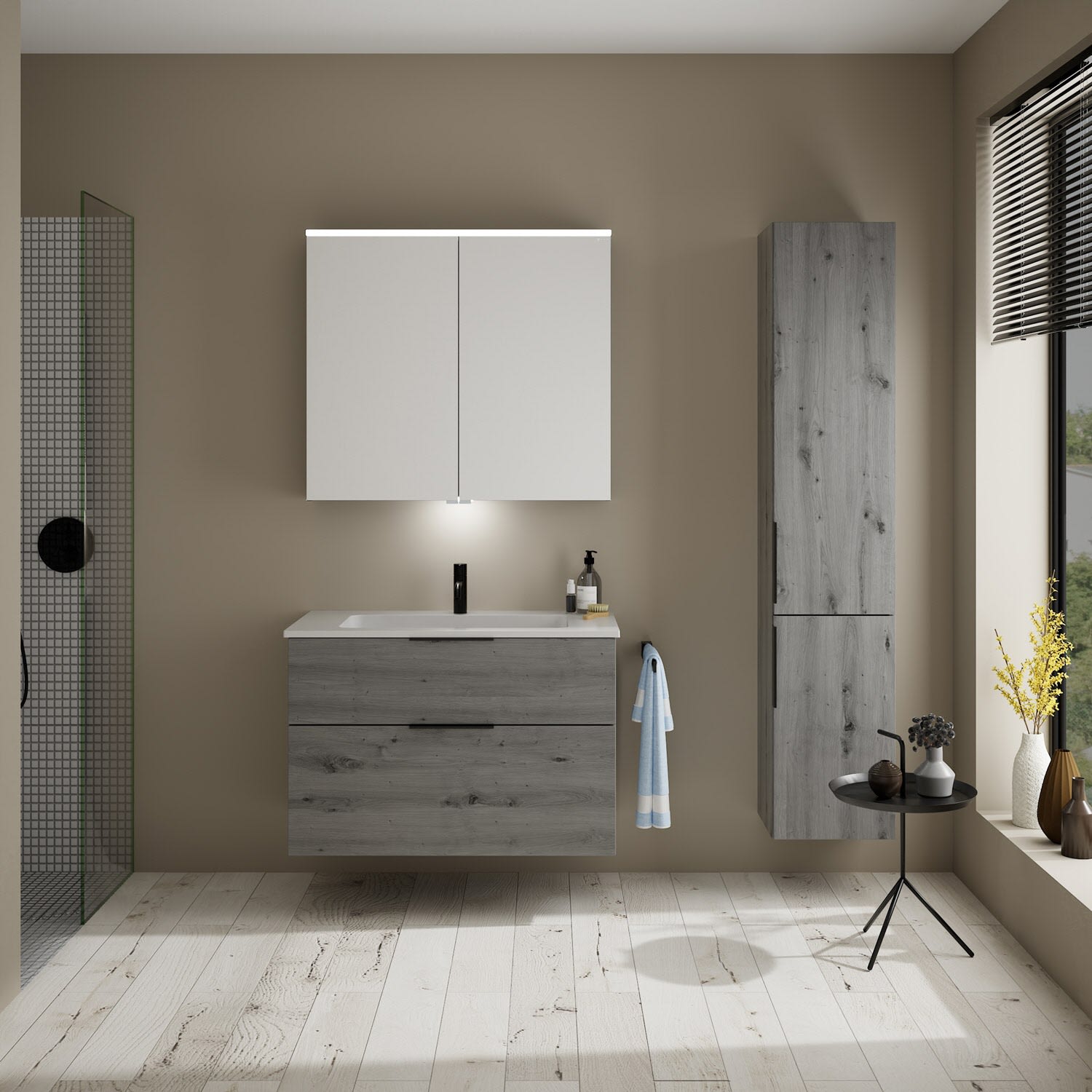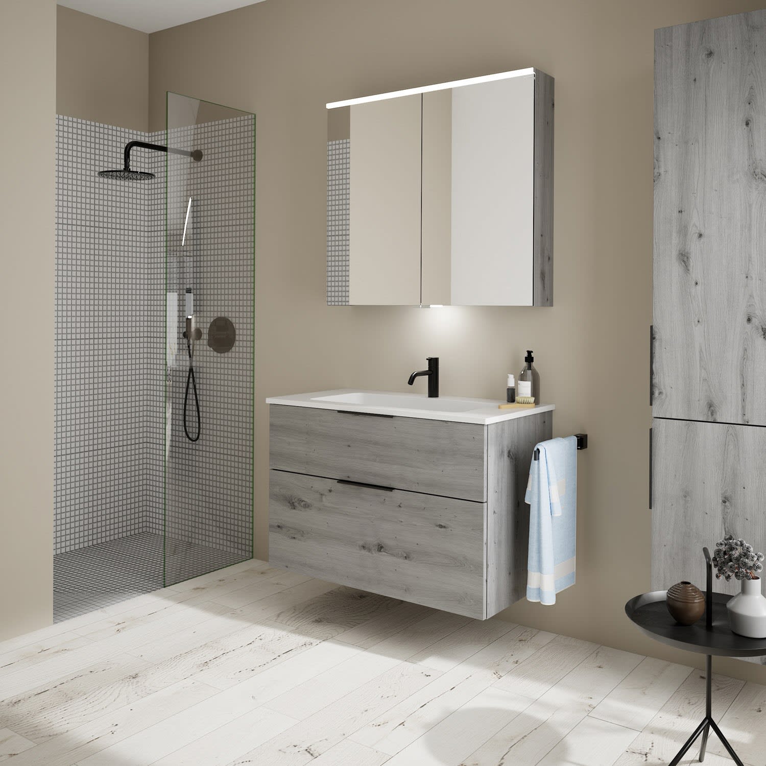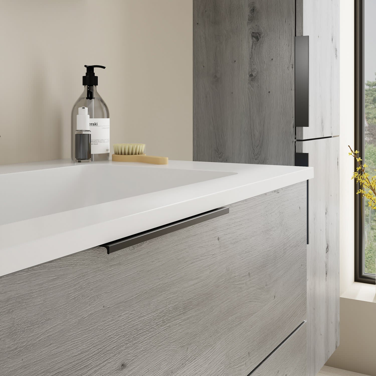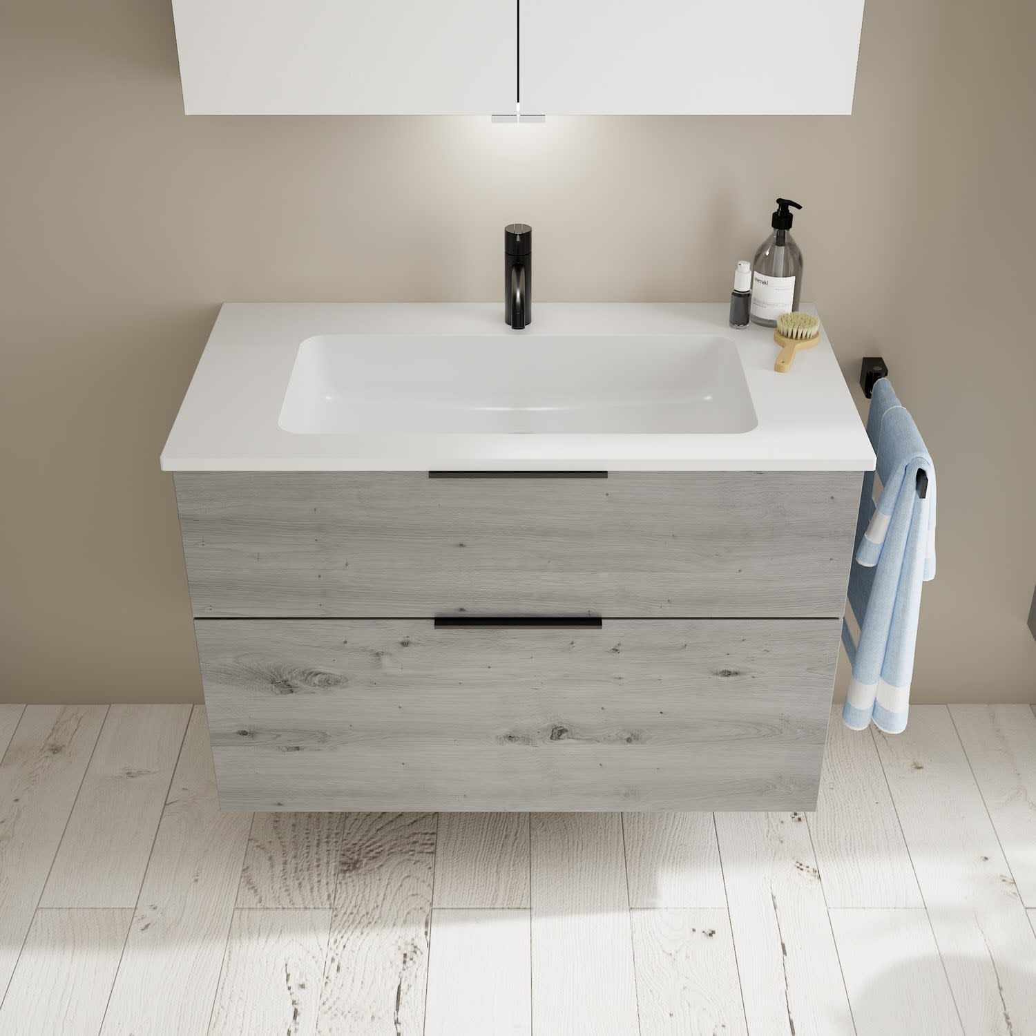 burgbad Eqio Waschtischkombination mit Mineralguss-Waschtisch, 92 cm, mit Griff G0200