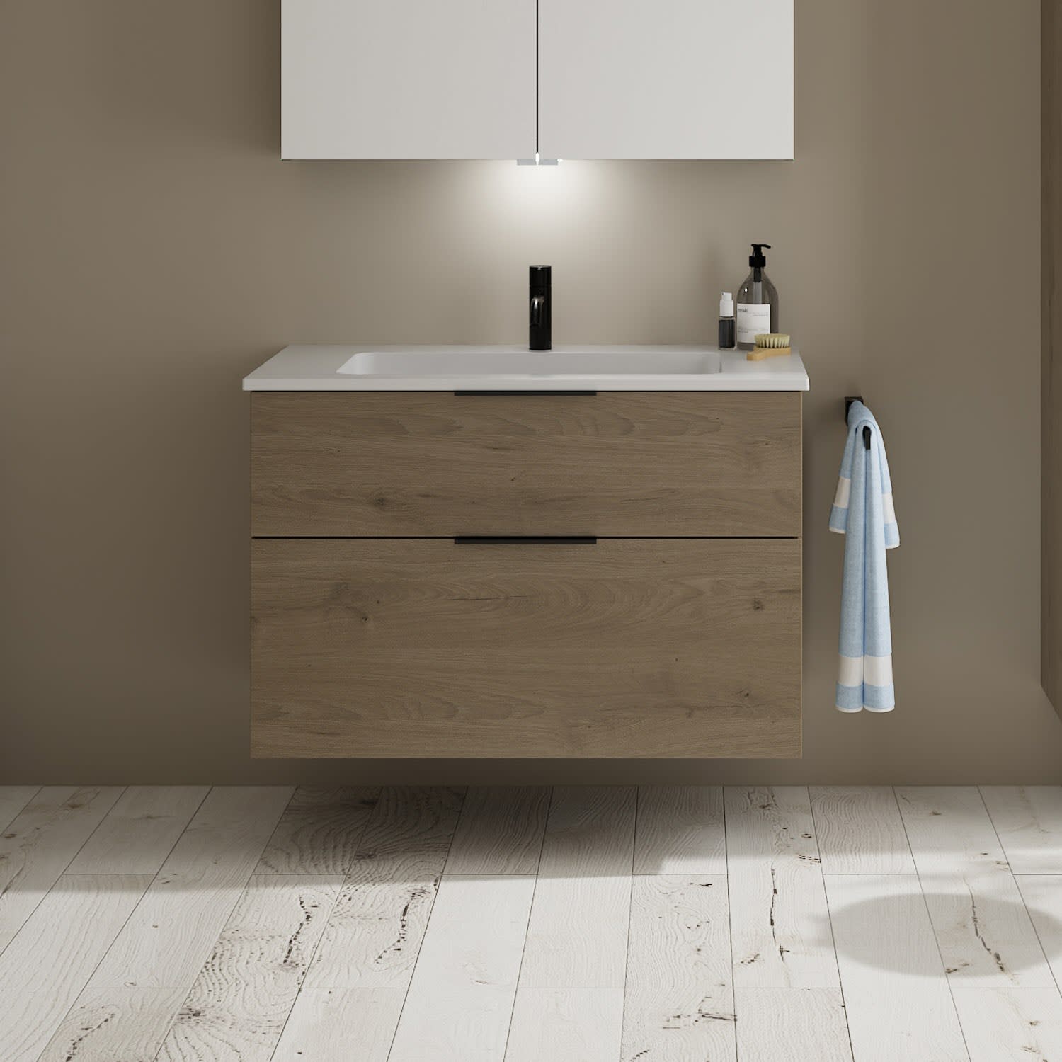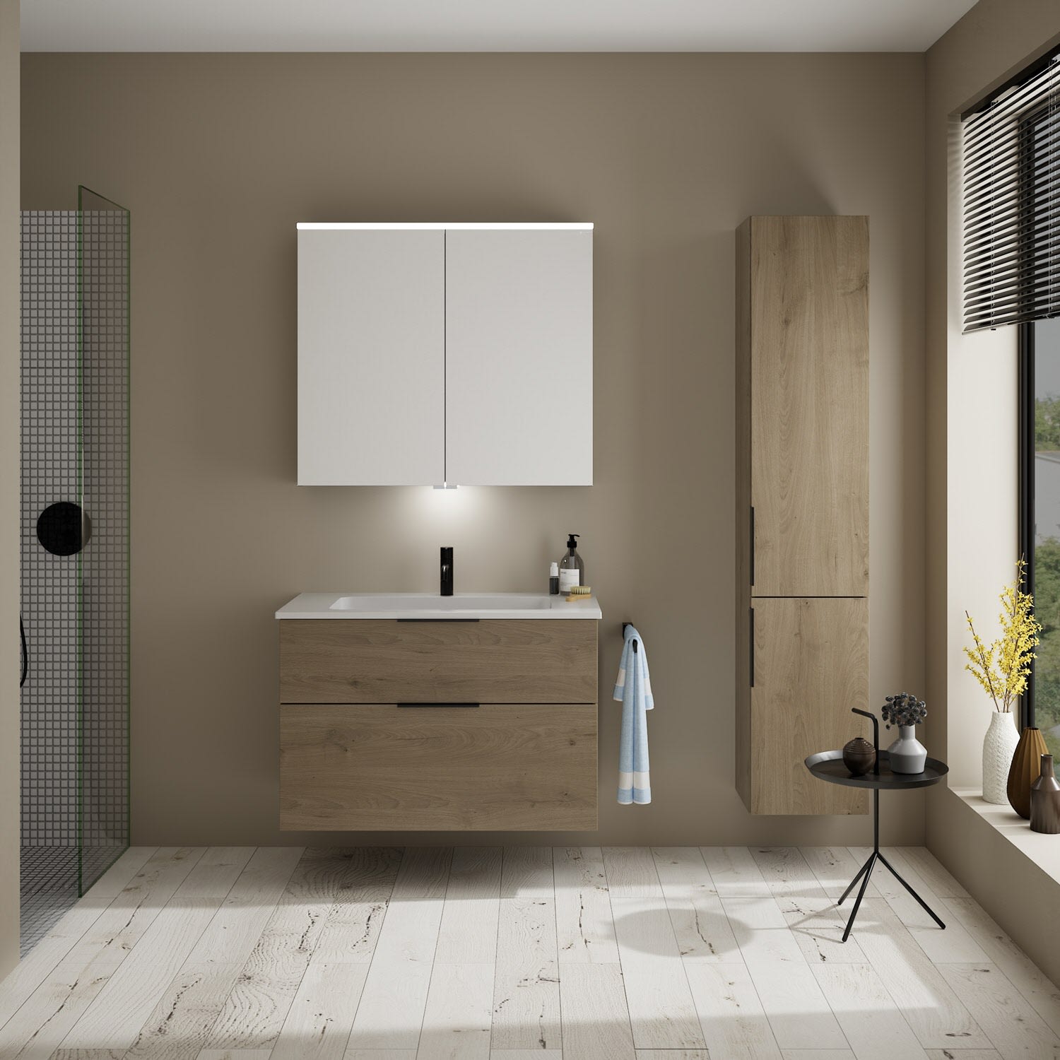 burgbad Eqio Waschtischkombination mit Mineralguss-Waschtisch, 92 cm, mit Griff G0200
