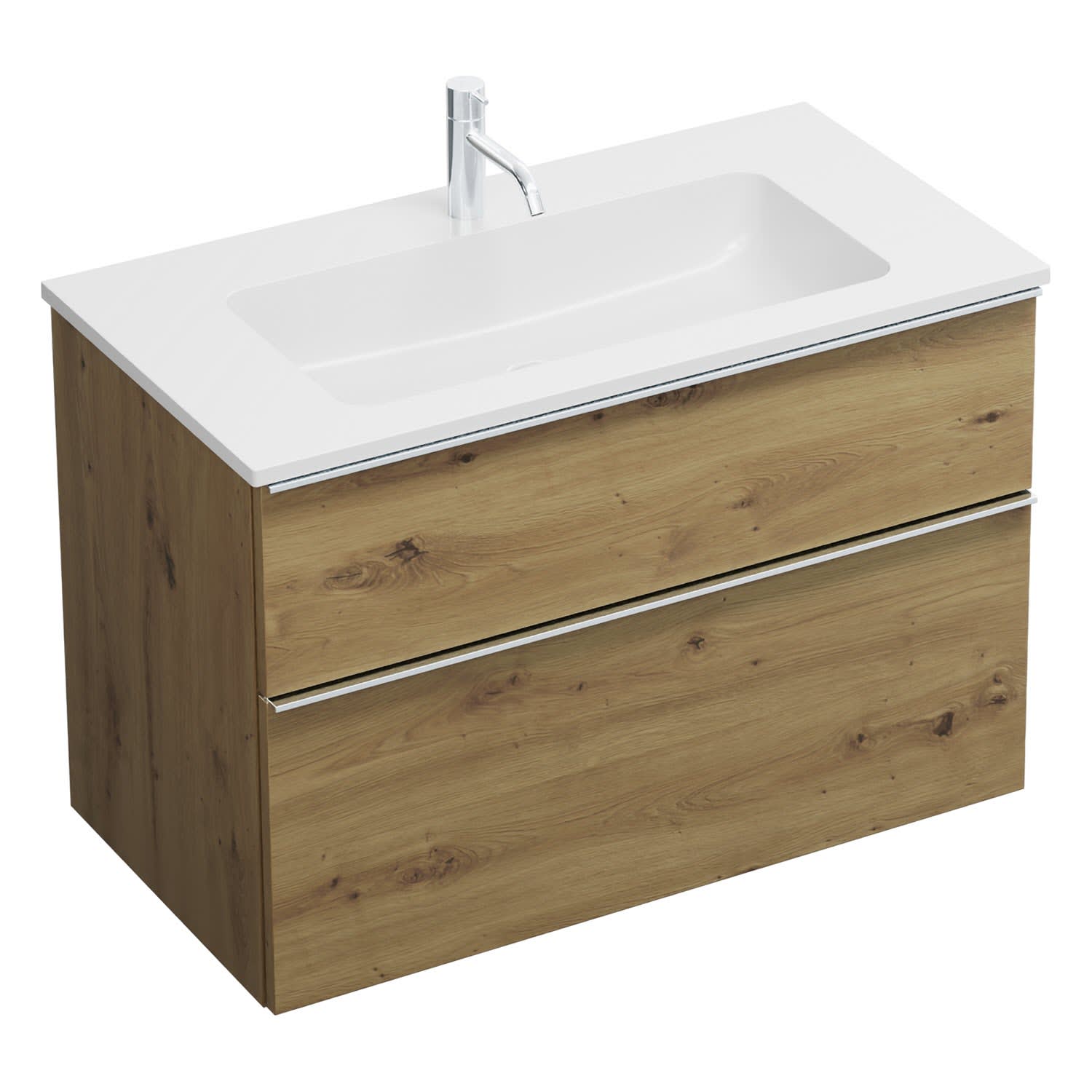 burgbad Eqio Waschtischkombination mit Mineralguss-Waschtisch, 92 cm, mit Griffleiste G0251