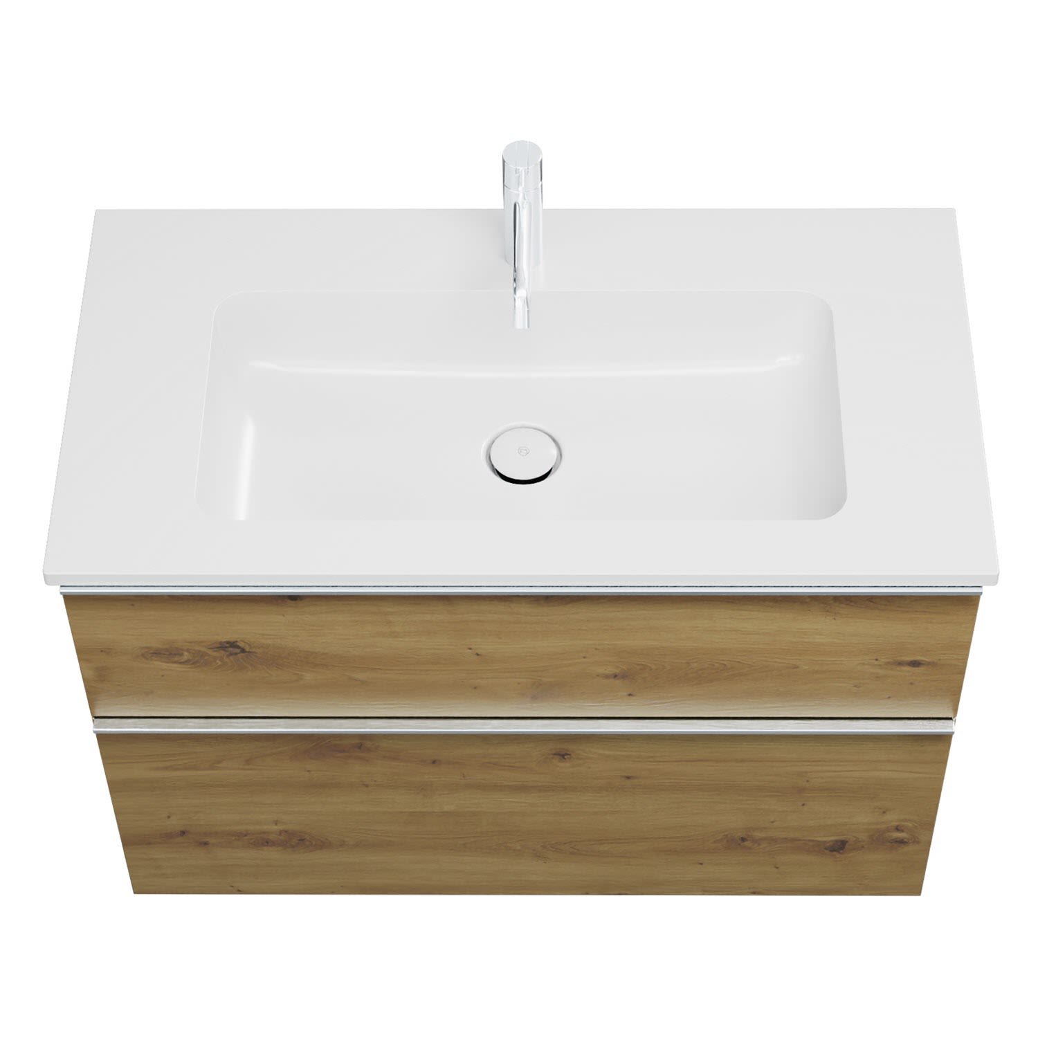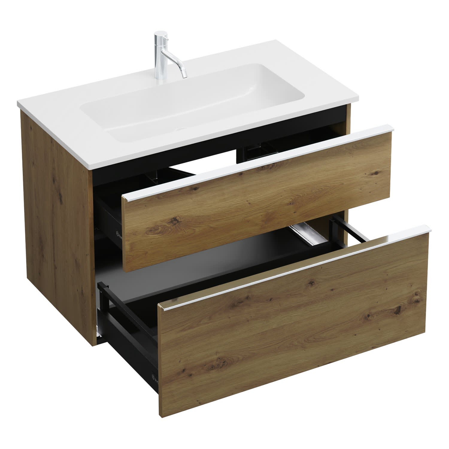 - 1 Schublade oben, 35 cm tief, mit Siphonausschnitt und Inneneinteilung