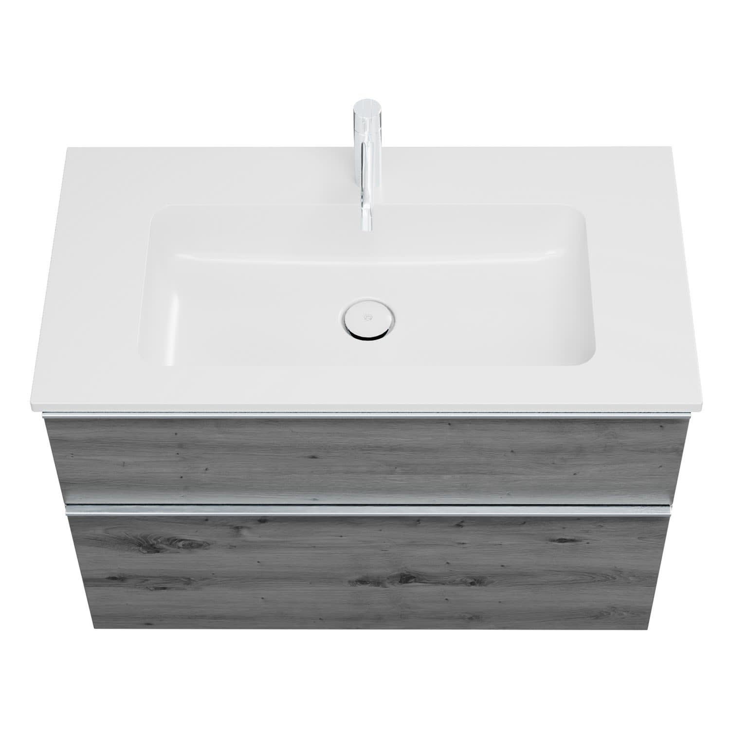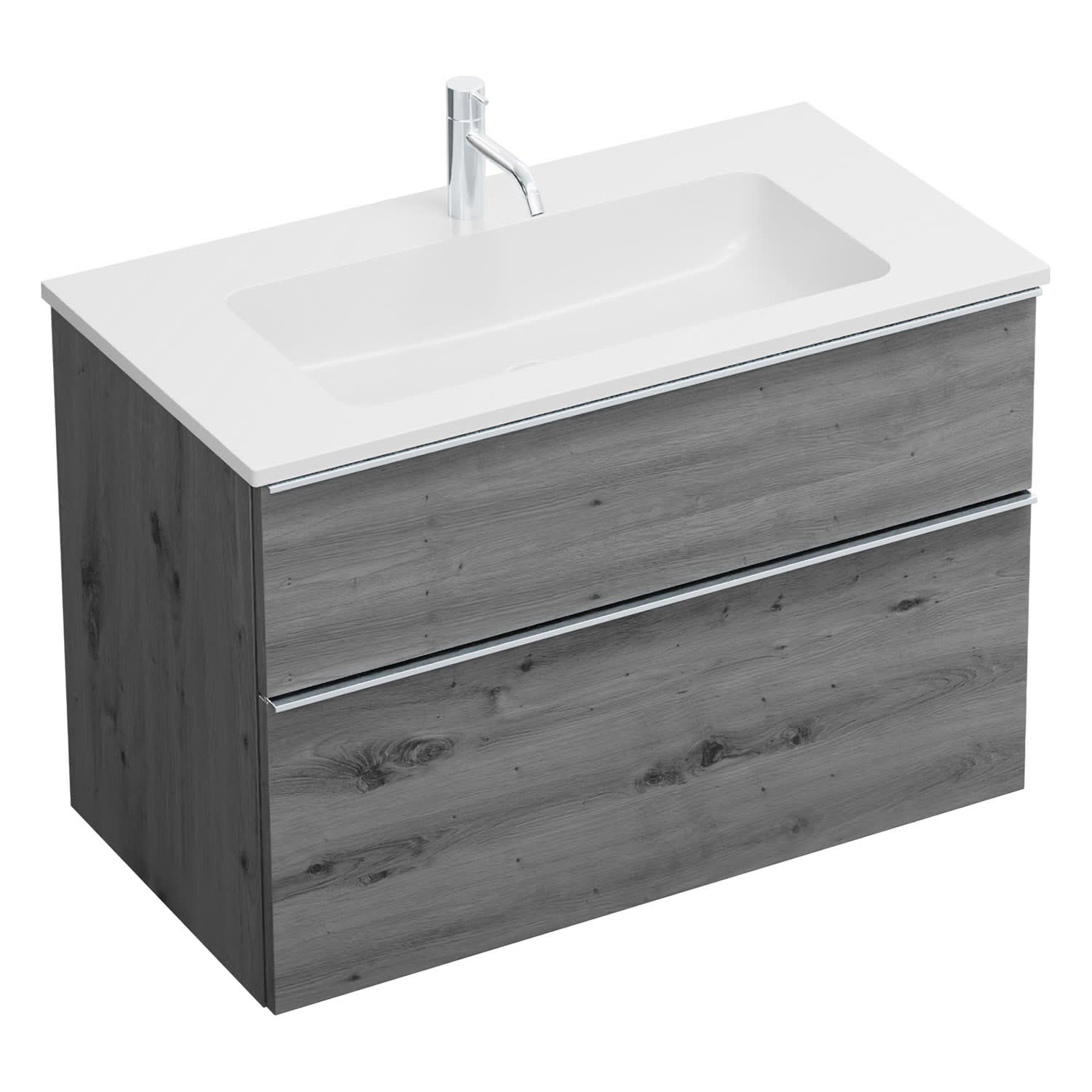 burgbad Eqio Waschtischkombination mit Mineralguss-Waschtisch, 92 cm, mit Griffleiste G0251